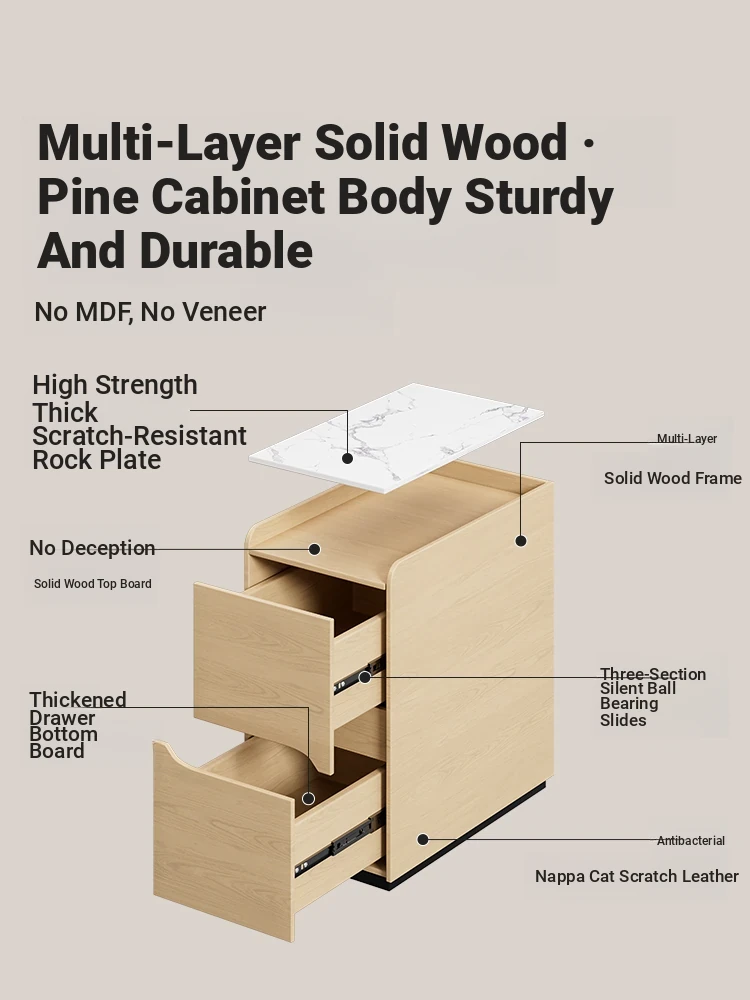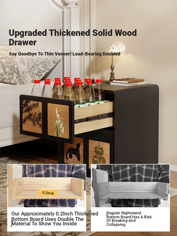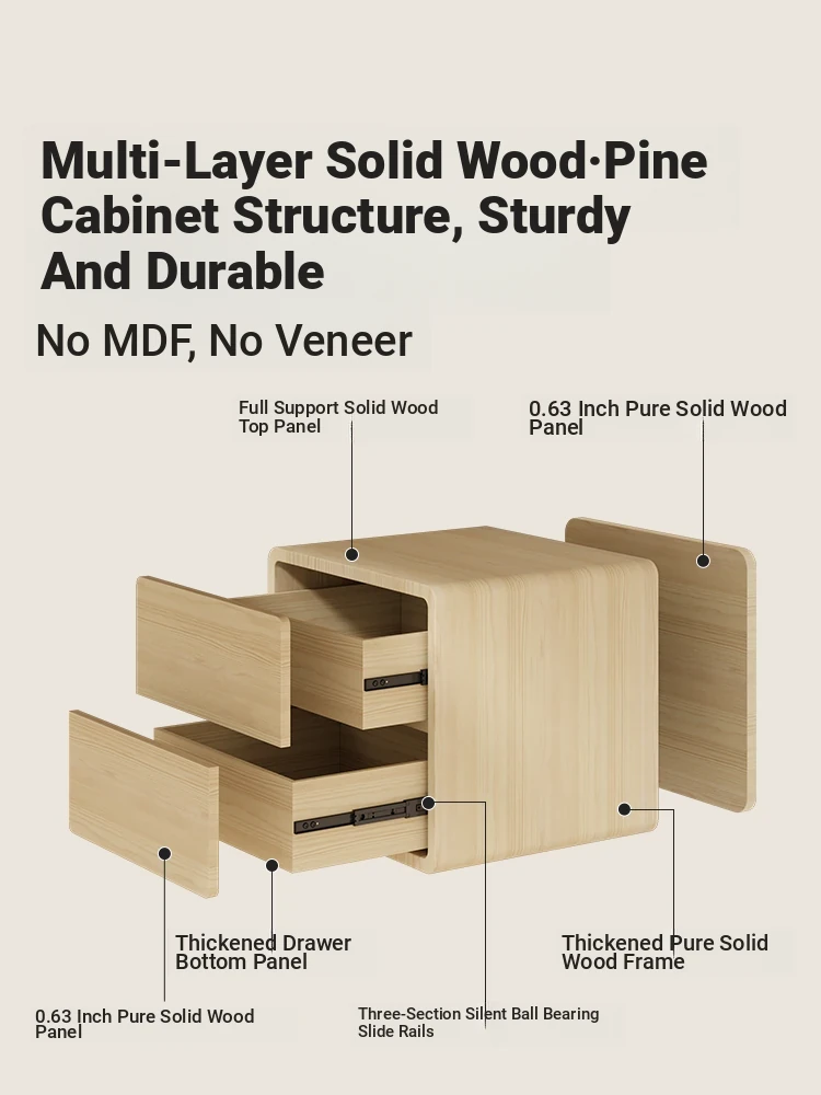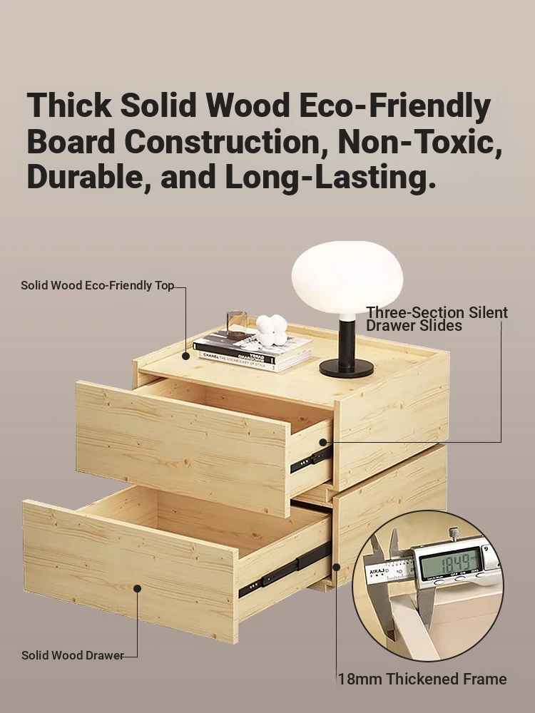 Modern Minimalist Solid Wood Nightstand - 2025 New Luxury Design for Home Bedrooms, Stylish and Compact Bedside Storage Cabinet