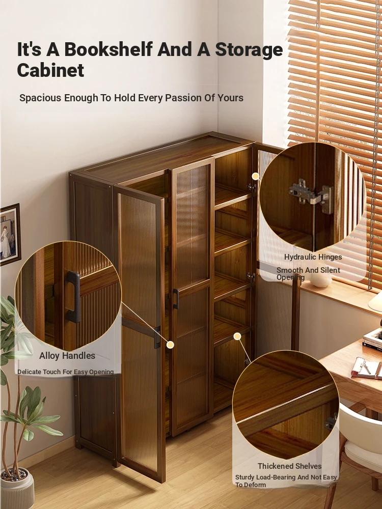 Multi-Layer Wall-Mounted Bookshelf with Doors - Simple and Stylish Floor Storage Rack for Home, Perfect for Kids and Students, Ideal for Organizing and Displaying Books and Treasures
