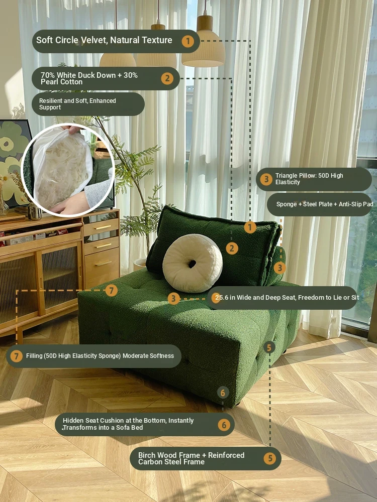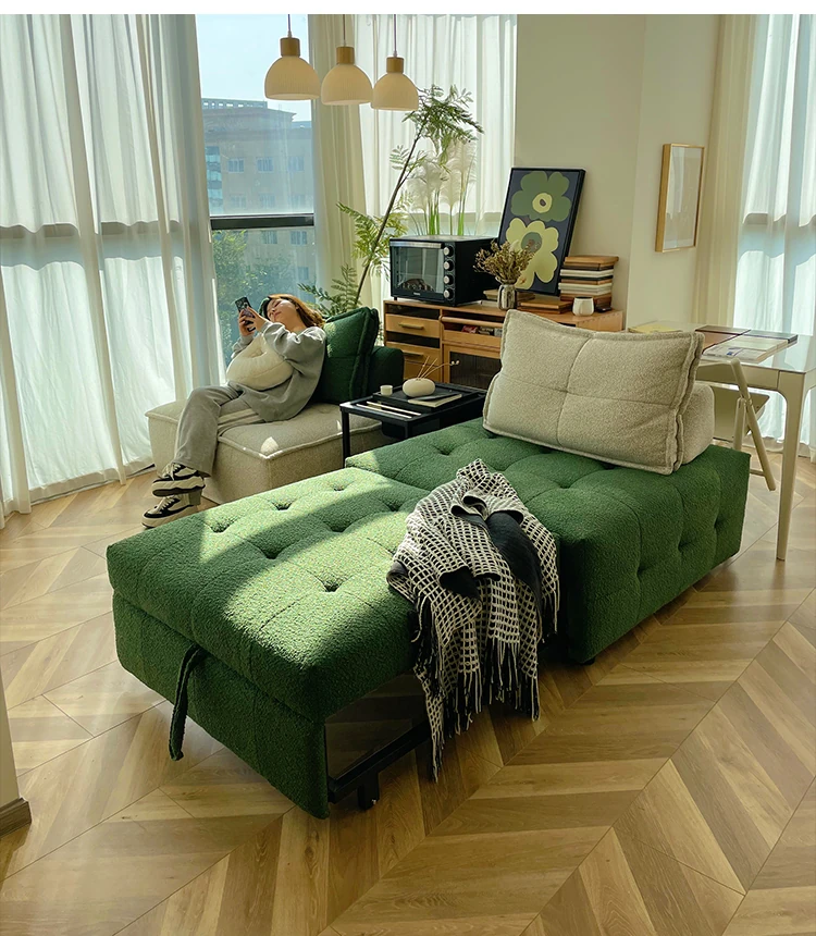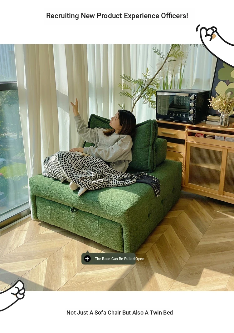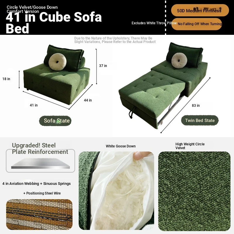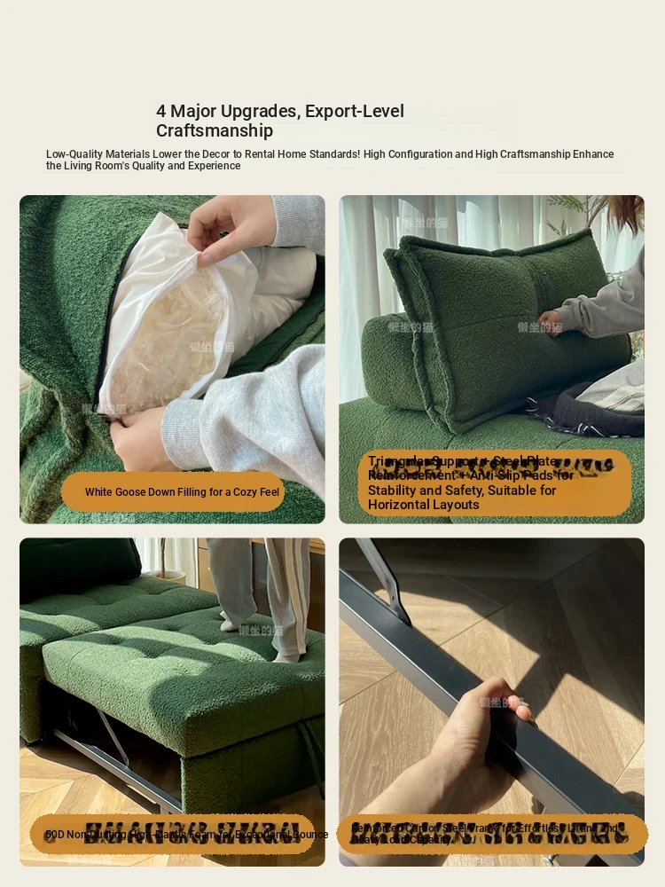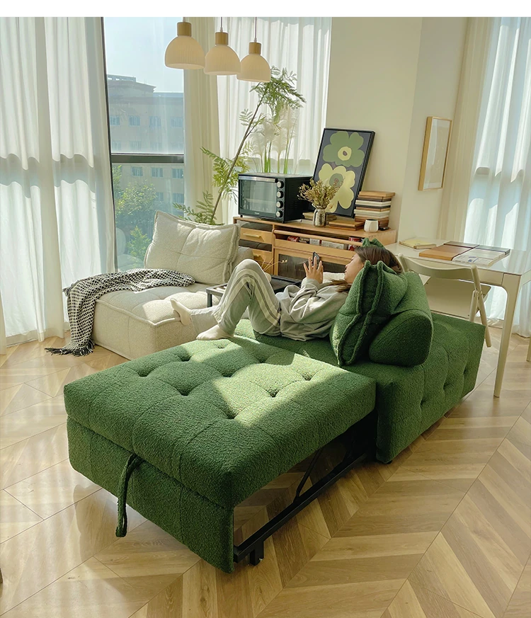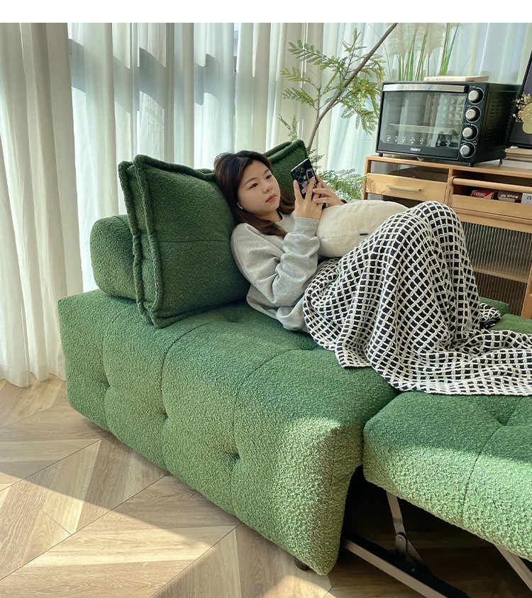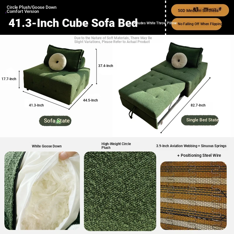 2024 New Style 1.5m Foldable Fabric Sofa Bed - Versatile Tofu Block Design for Small Apartments, Ideal for Living Rooms and Single Use