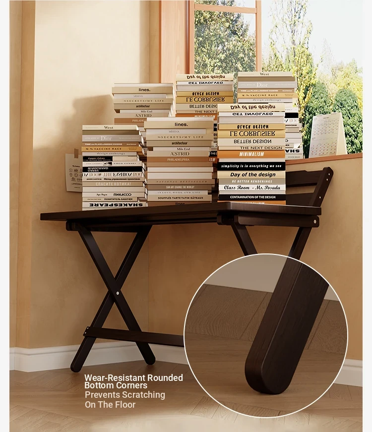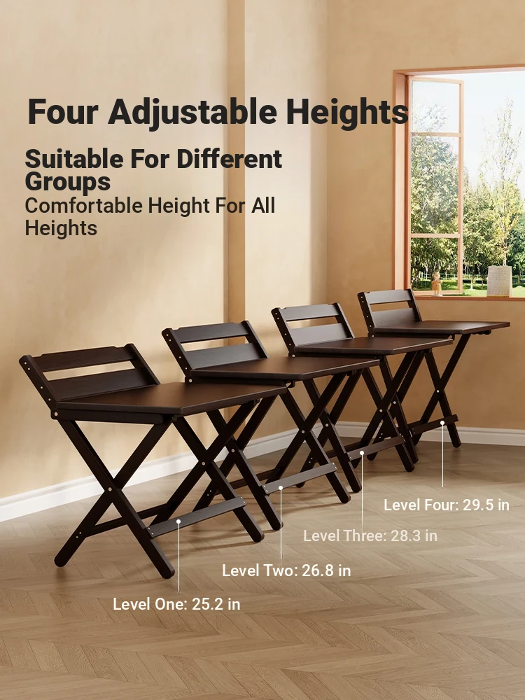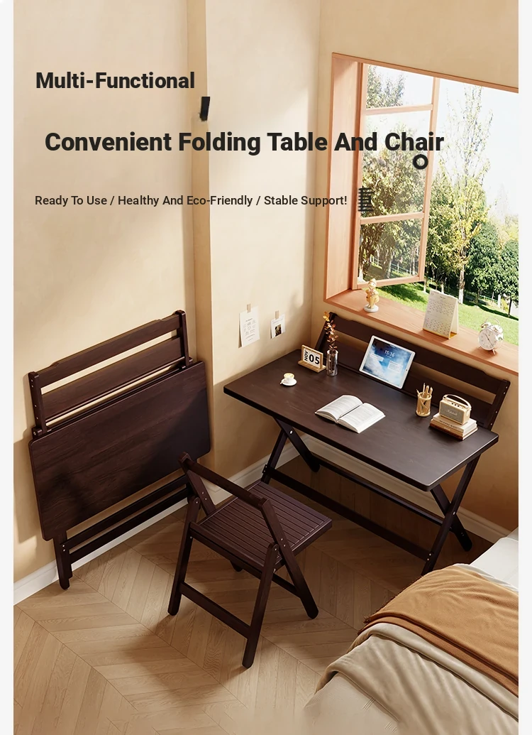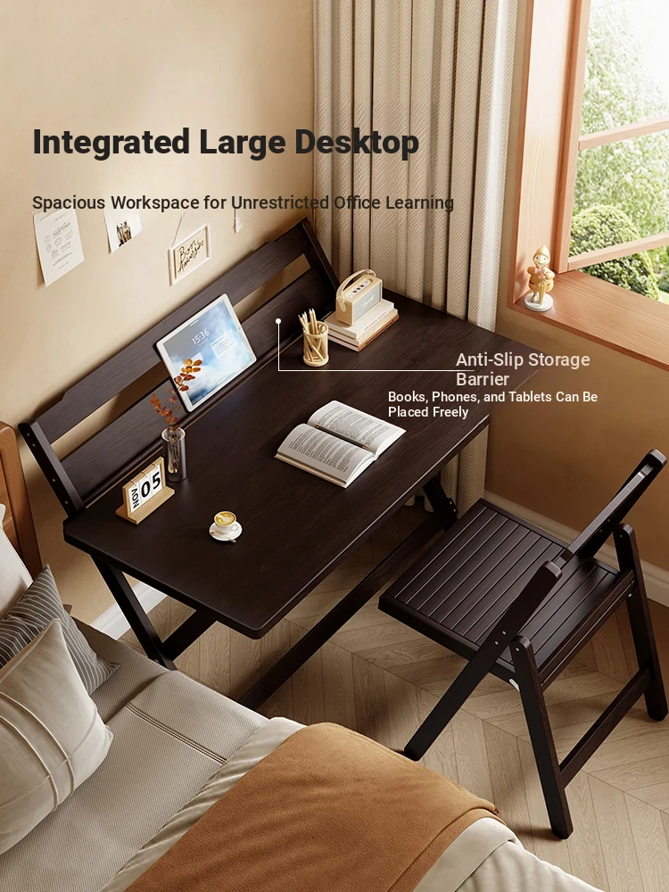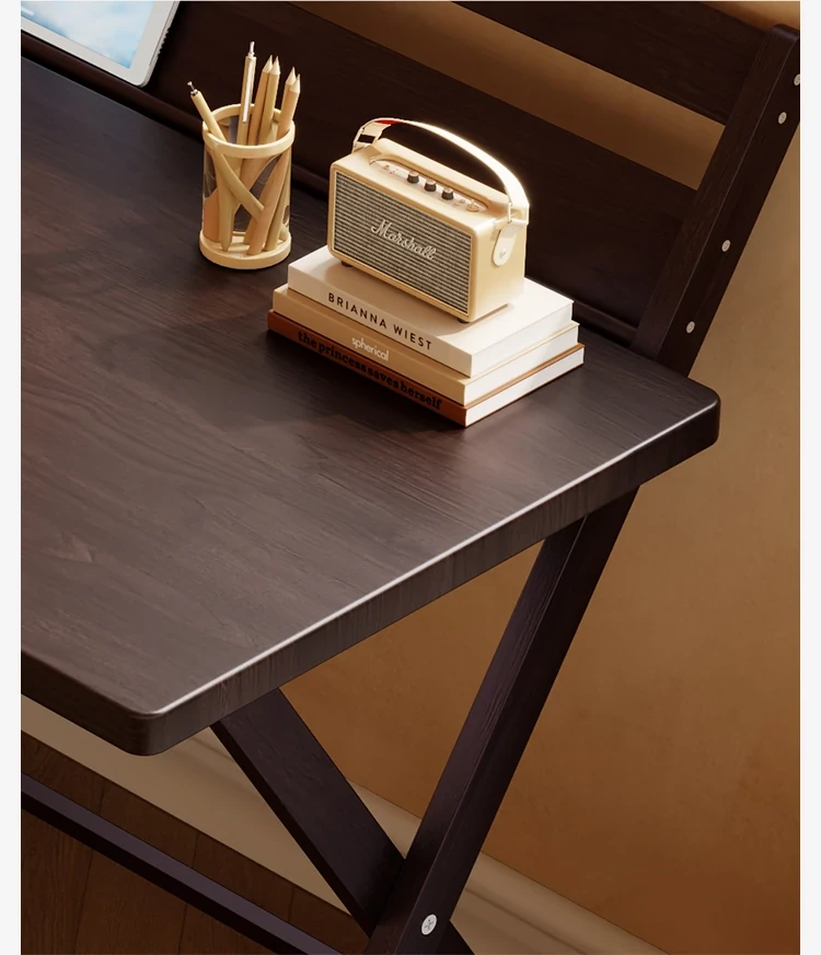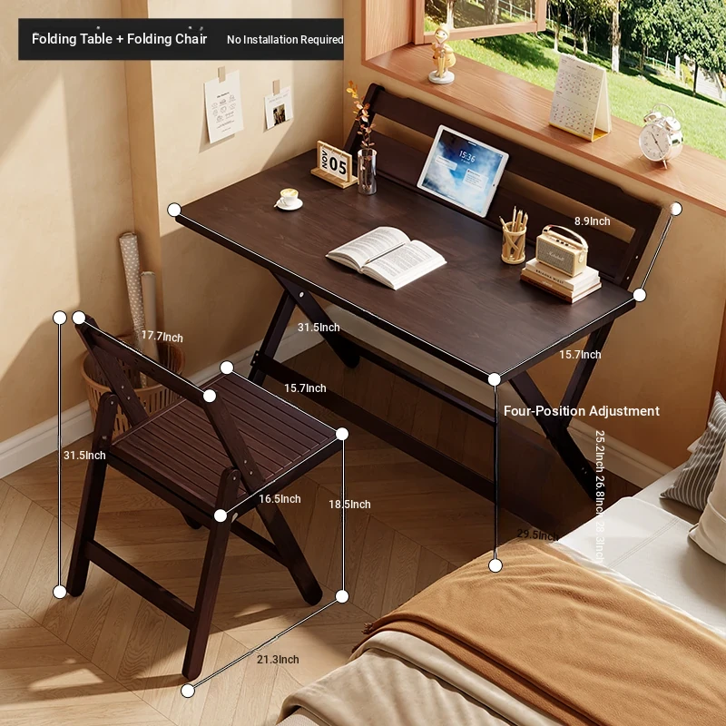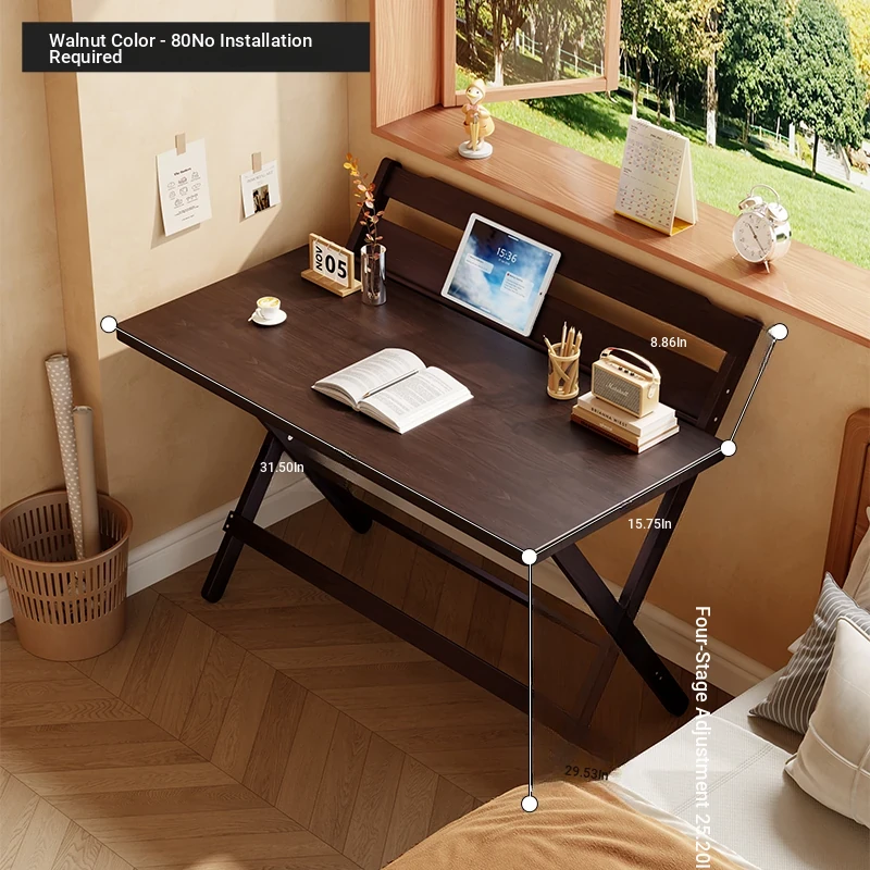 [Free installation] black walnut color-folding table 80*40 + large Foldable learning chair [four height adjustment]]