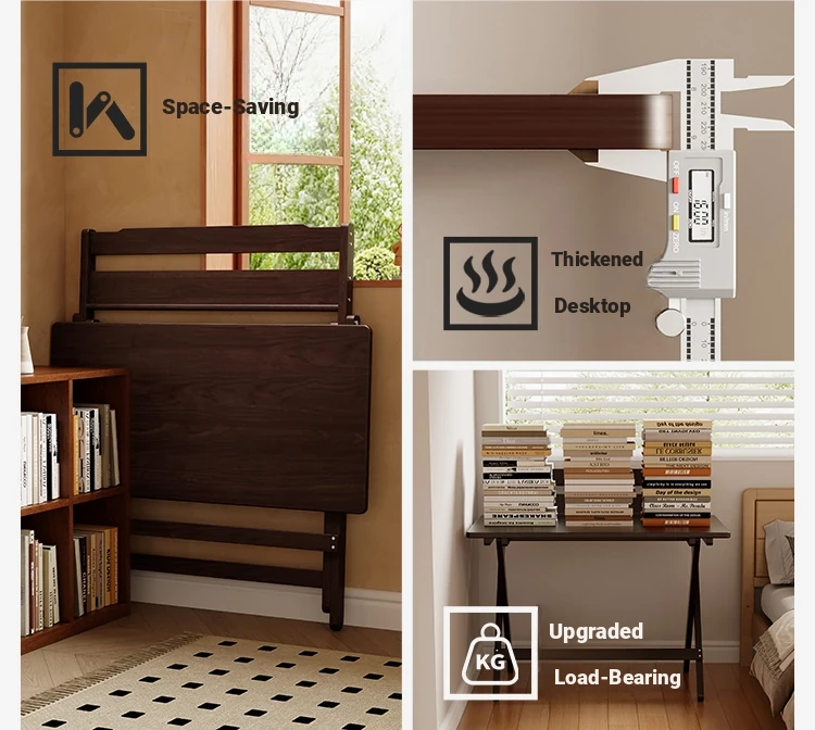 [Free Installation] Black Walnut Color-Folding Table 80*40 [Bold Legs] [Four-gear Height Adjustment]]
