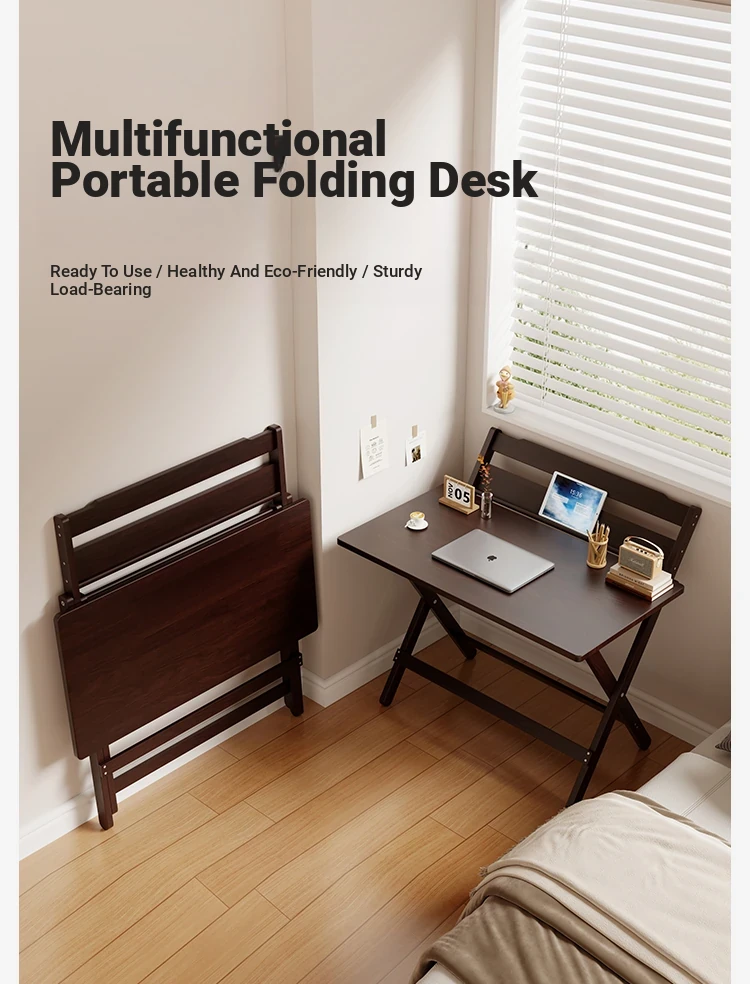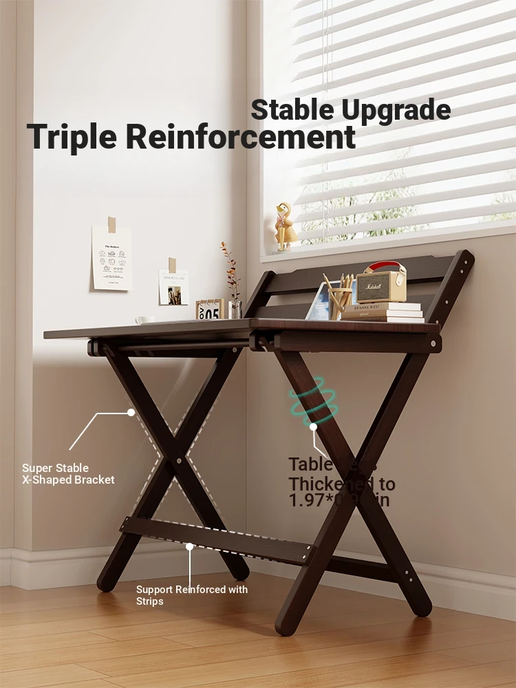 [Free Installation] Black Walnut Color-Folding Table 80*40 [Bold Legs] [Four-gear Height Adjustment]]