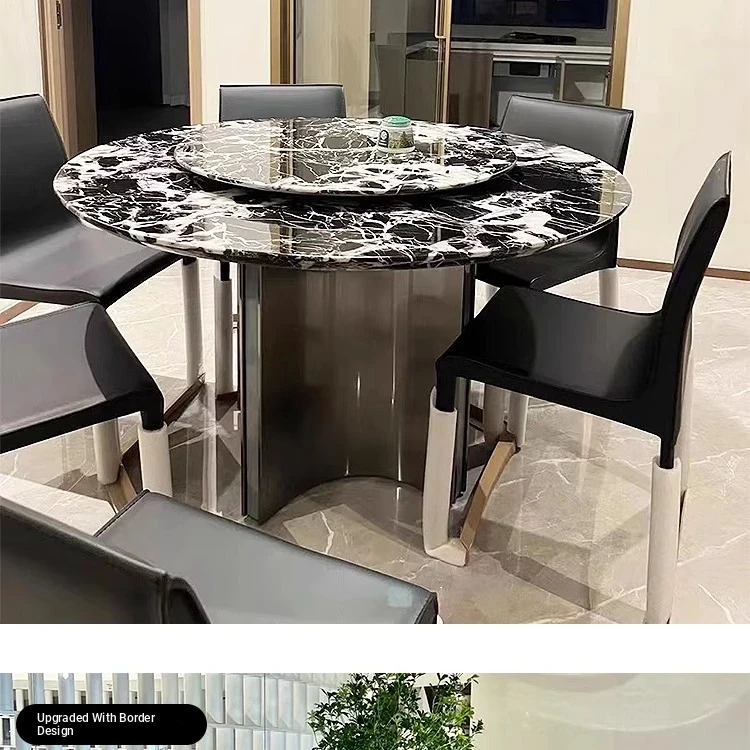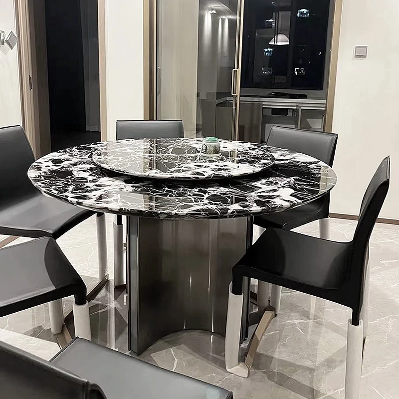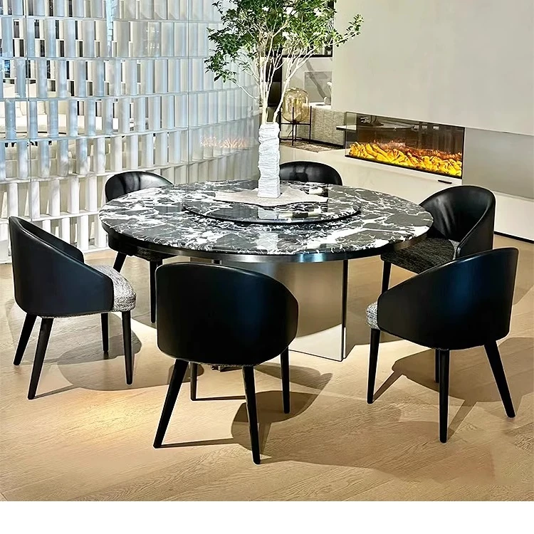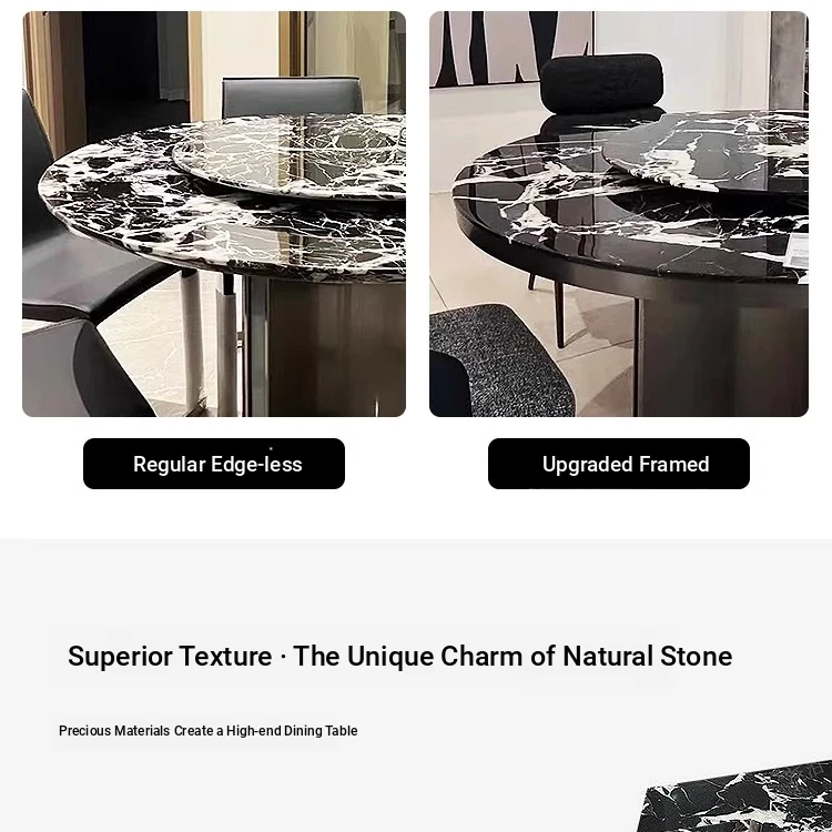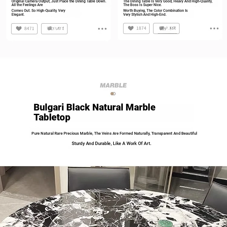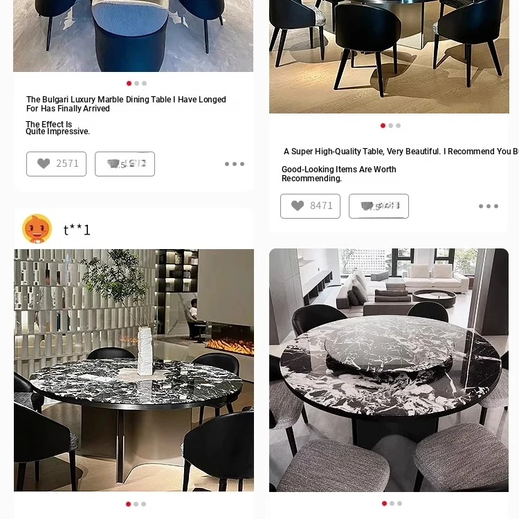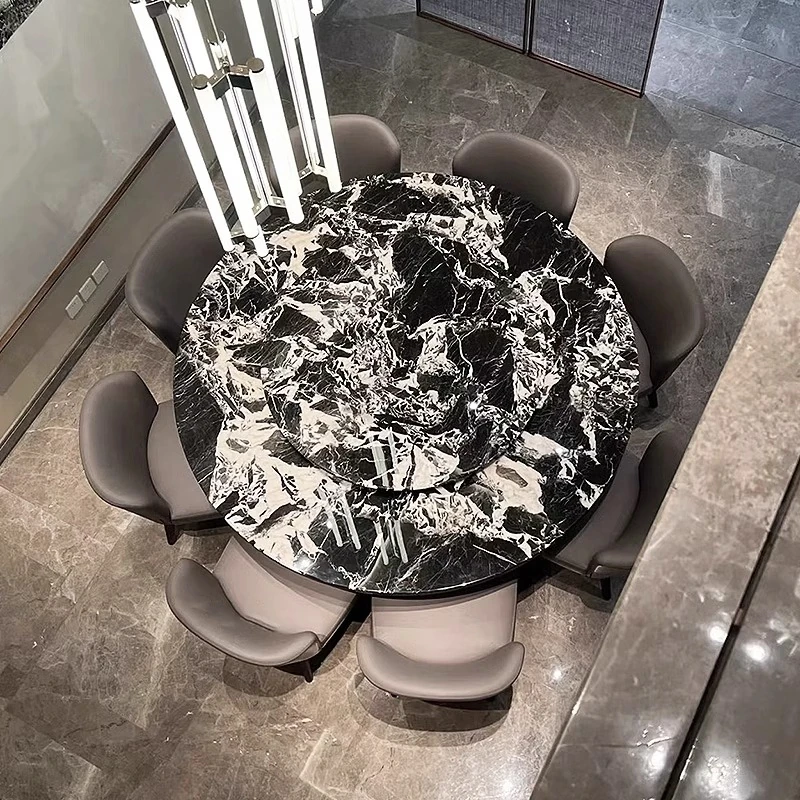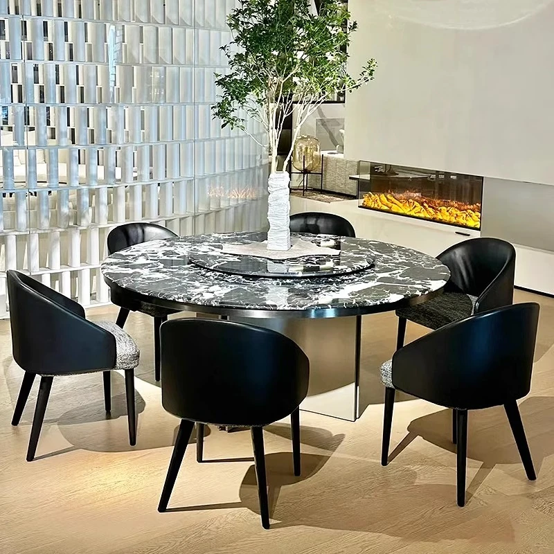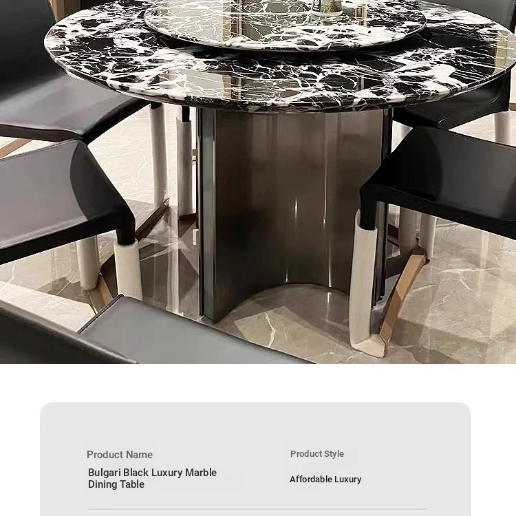 2025 New Luxury Round Natural Marble Dining Table Set for Living Room - Elegant and Chic Bulgari-Inspired Design, Perfect for Home Décor