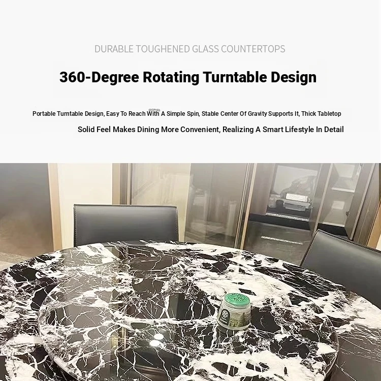 Upgraded Bordered Bulgari Black Dining Table 59.06 inega Turntable