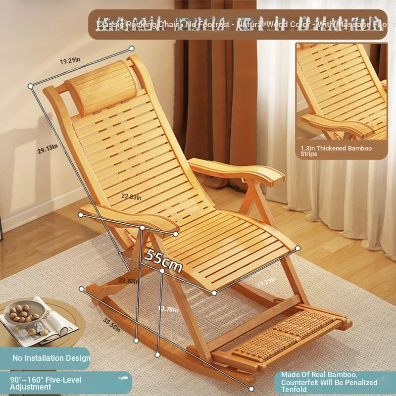 Primary Color Long Rocking Chair-Flagship Full Board [Massage Hainer/Upgrade Reinforcement]]