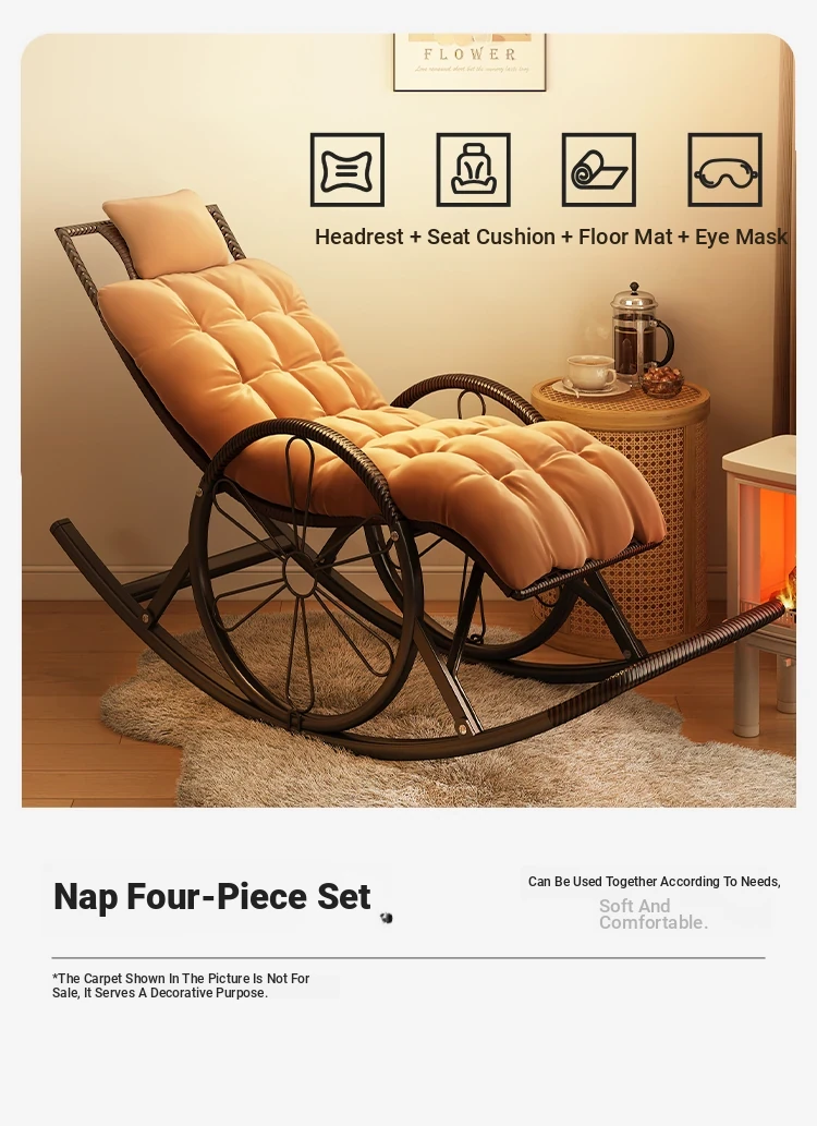 Upgraded wide rattan double-layer thickened-champagne gold + cushion + floor cushion + headrest + eye mask [quality assurance compensation for bad lying]]
