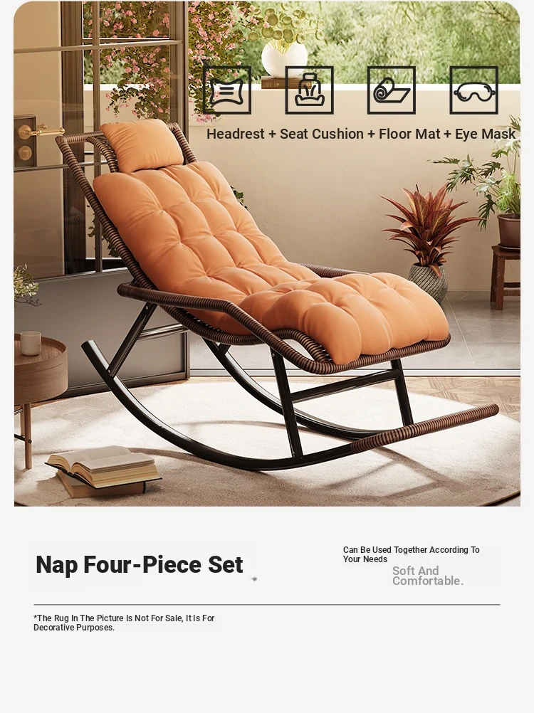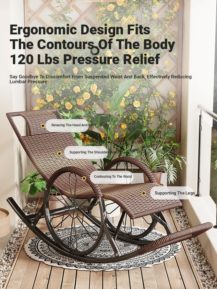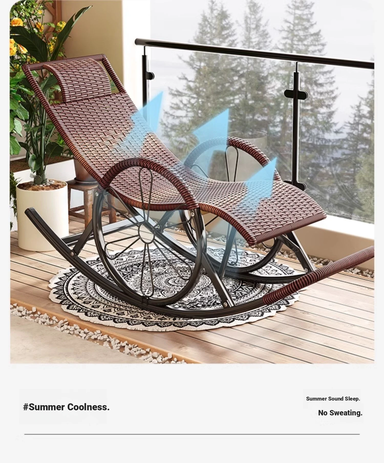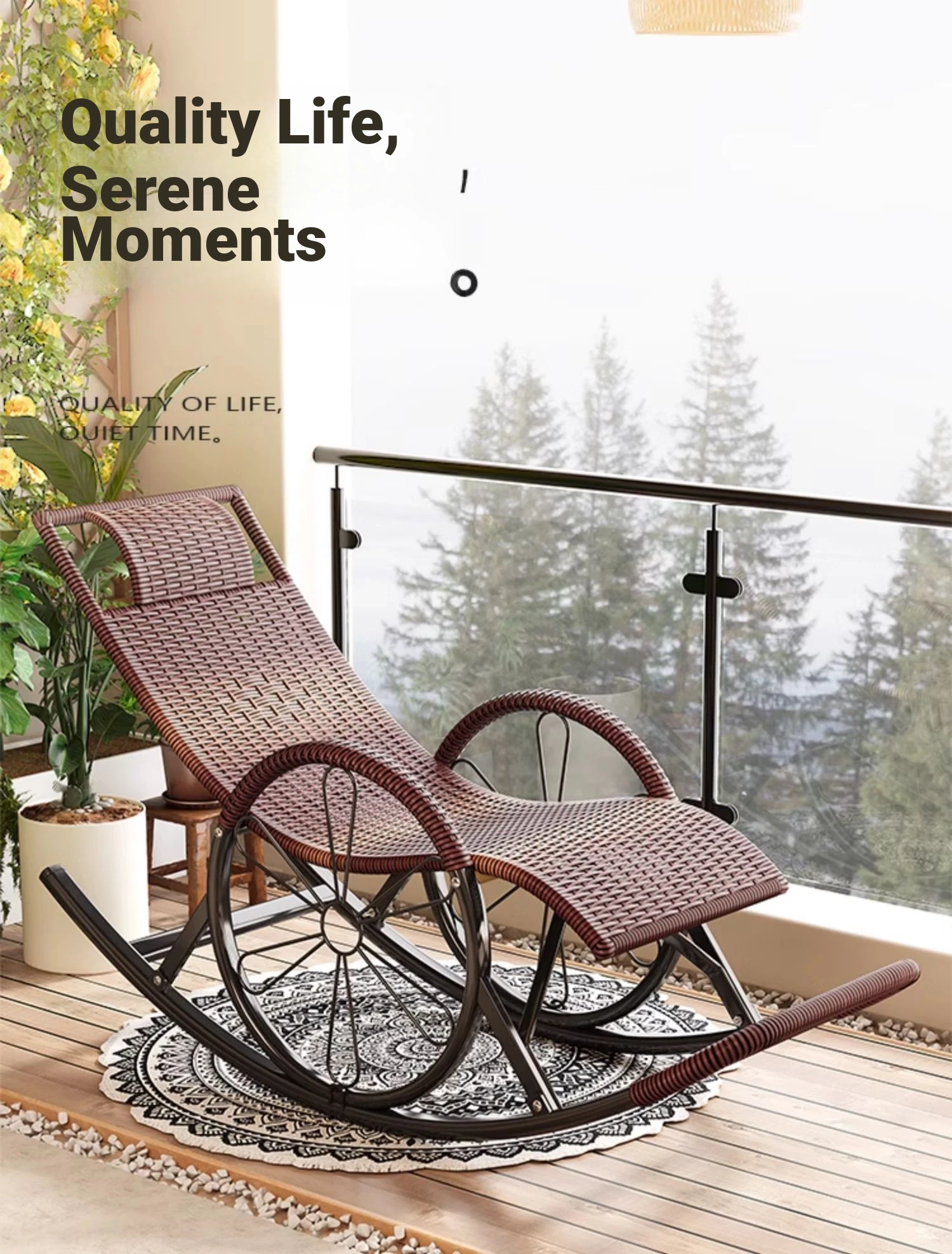 2025 New Rattan Rocking Chair for Balcony - Comfortable Lounge Chair for Adults and Seniors, Perfect for Sunbathing and Napping