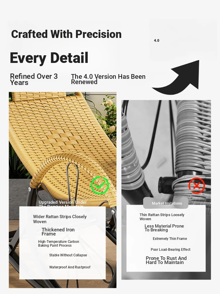 Upgraded wide rattan double-layer thickened-gold + cushion + headrest [quality assurance compensation for bad lying]]