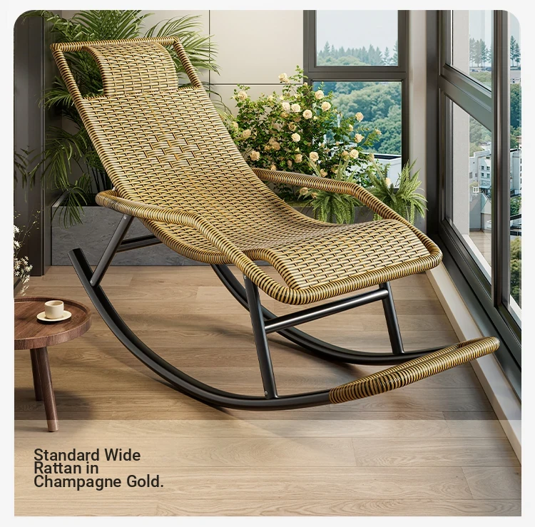 Upgraded wide rattan double-layer thickened-champagne gold + cushion + floor cushion + headrest + eye mask [quality assurance compensation for bad lying]]