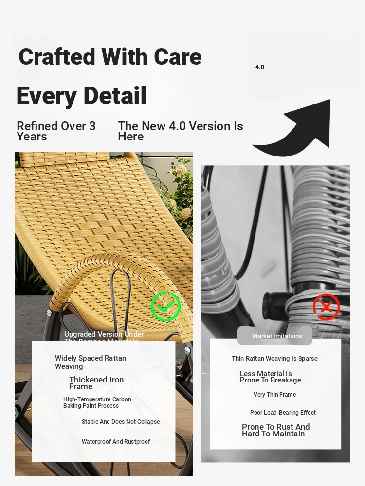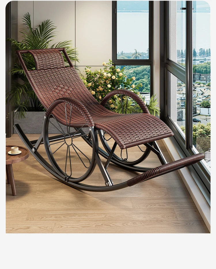 2025 New Stylish Rocking Chair for Home - Comfortable Recliner for Balcony, Perfect for Napping and Relaxation, Ideal for Seniors and Lazy Days, Made of Durable Rattan.