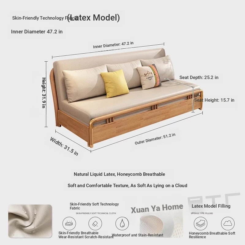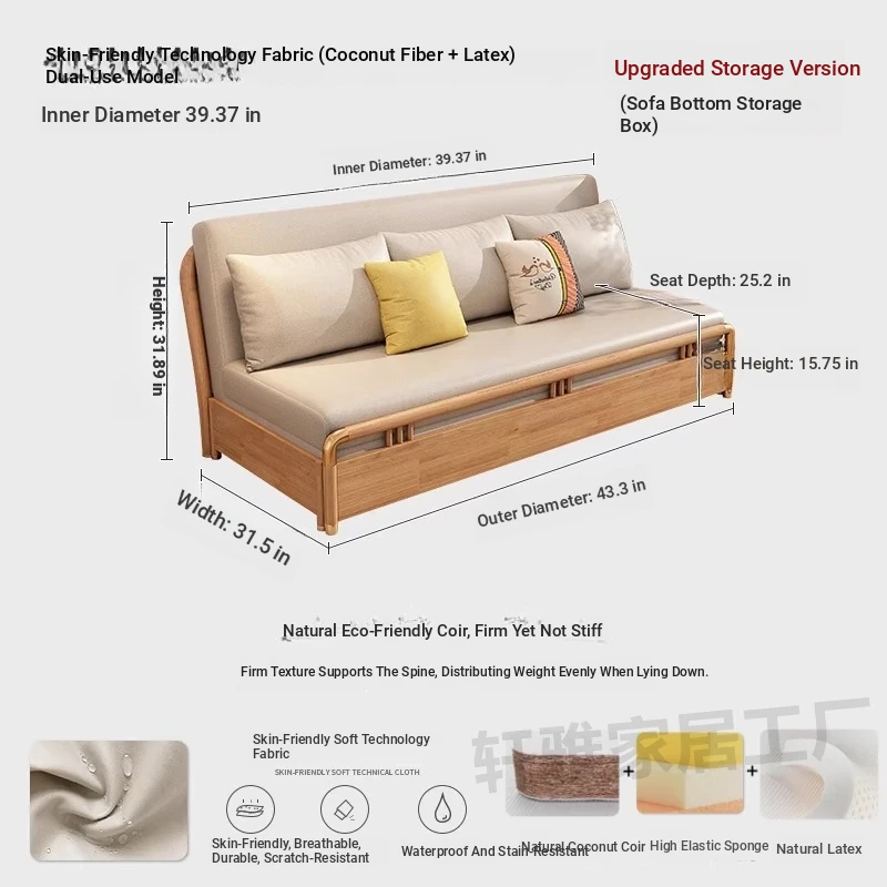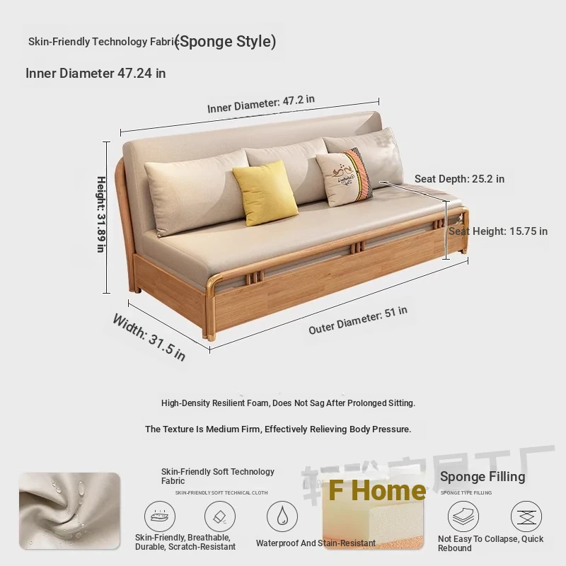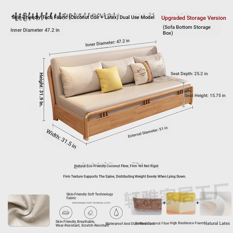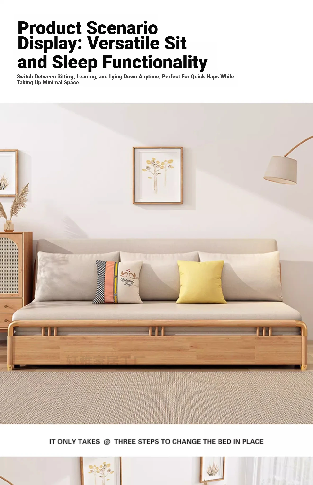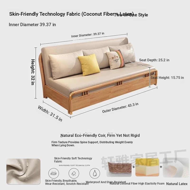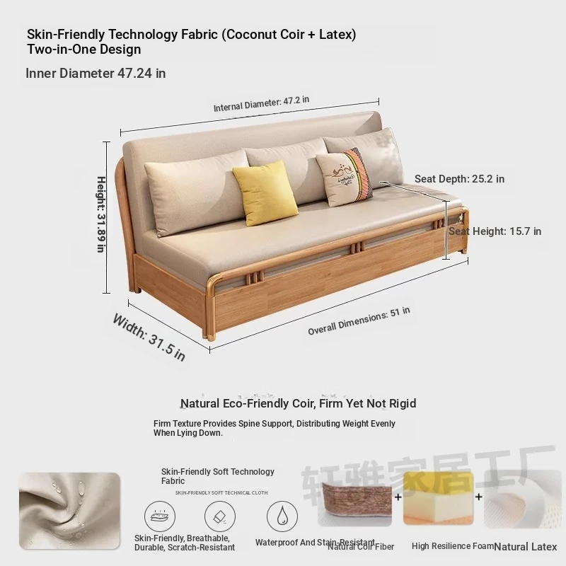 2025 New Versatile Solid Wood Sofa Bed - Foldable 2-in-1 Design for Small Spaces & Home Offices, Perfect for Cozy Living!