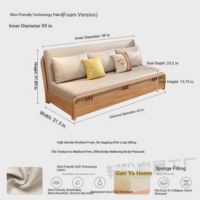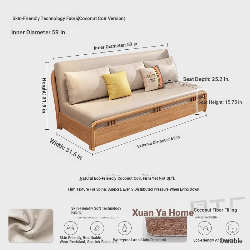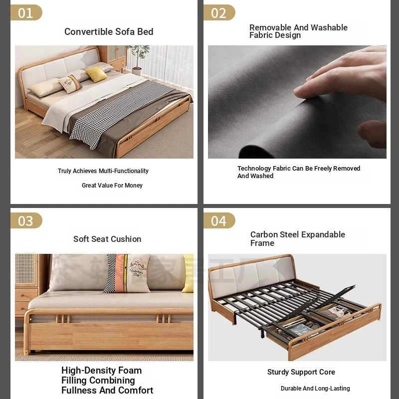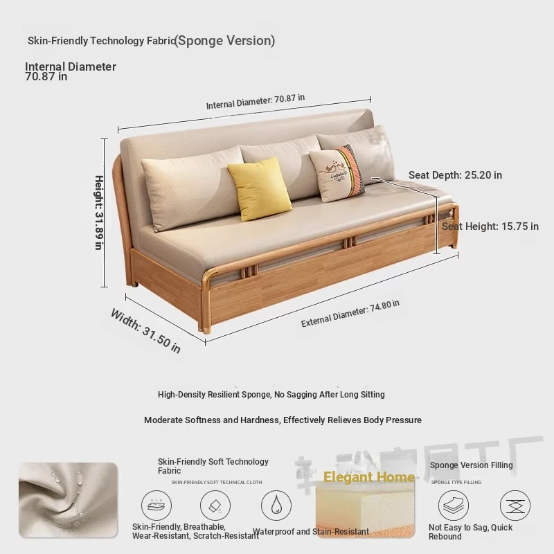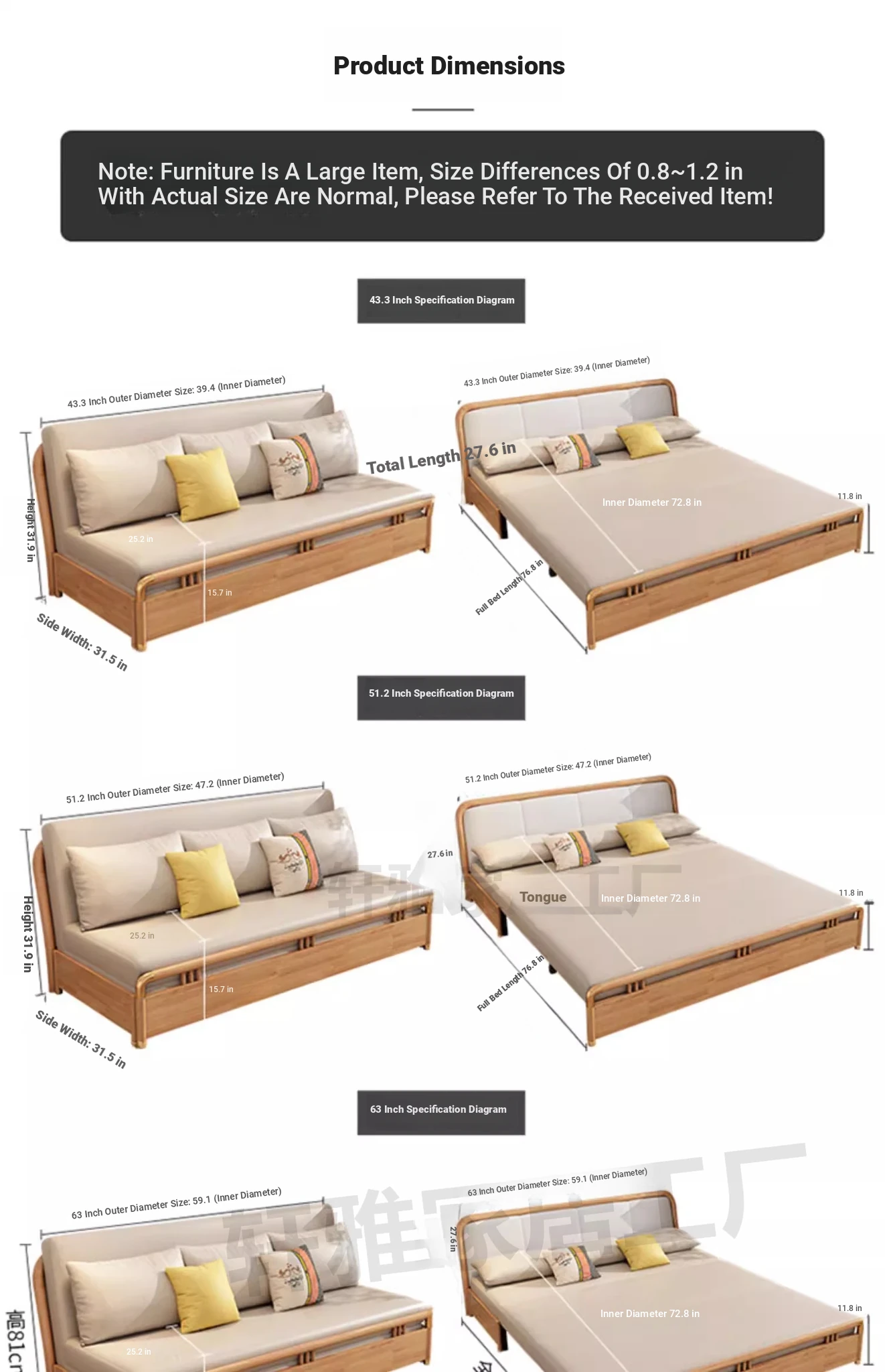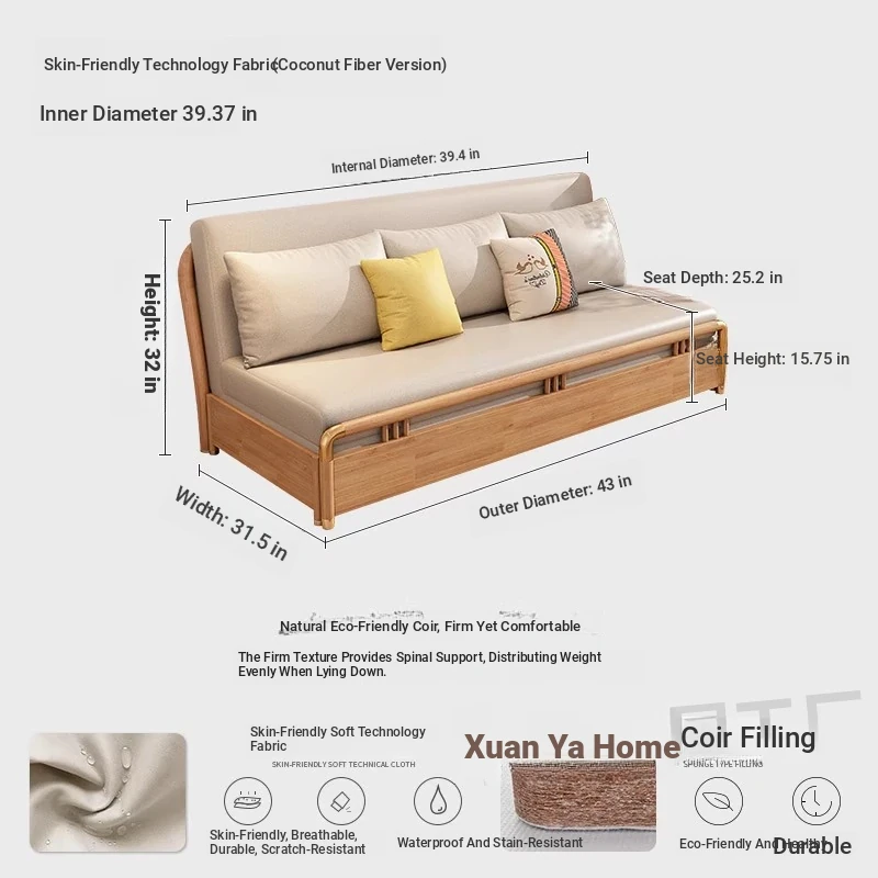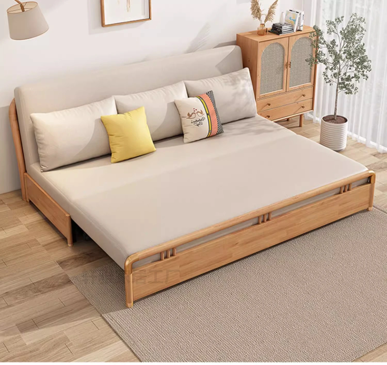 2025 New Versatile Solid Wood Sofa Bed - Foldable 2-in-1 Design for Small Spaces & Home Offices, Perfect for Cozy Living!