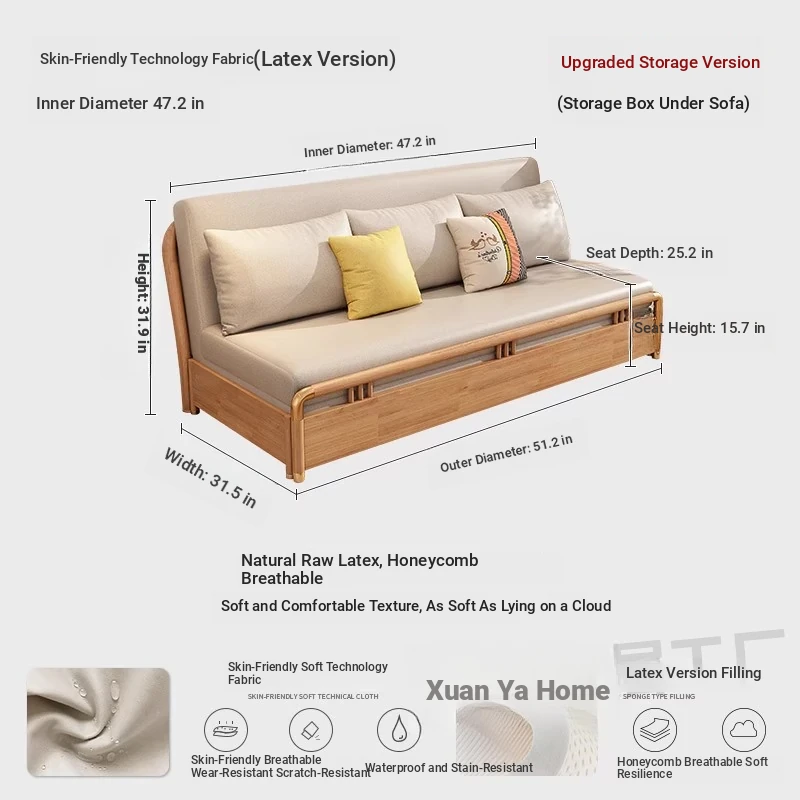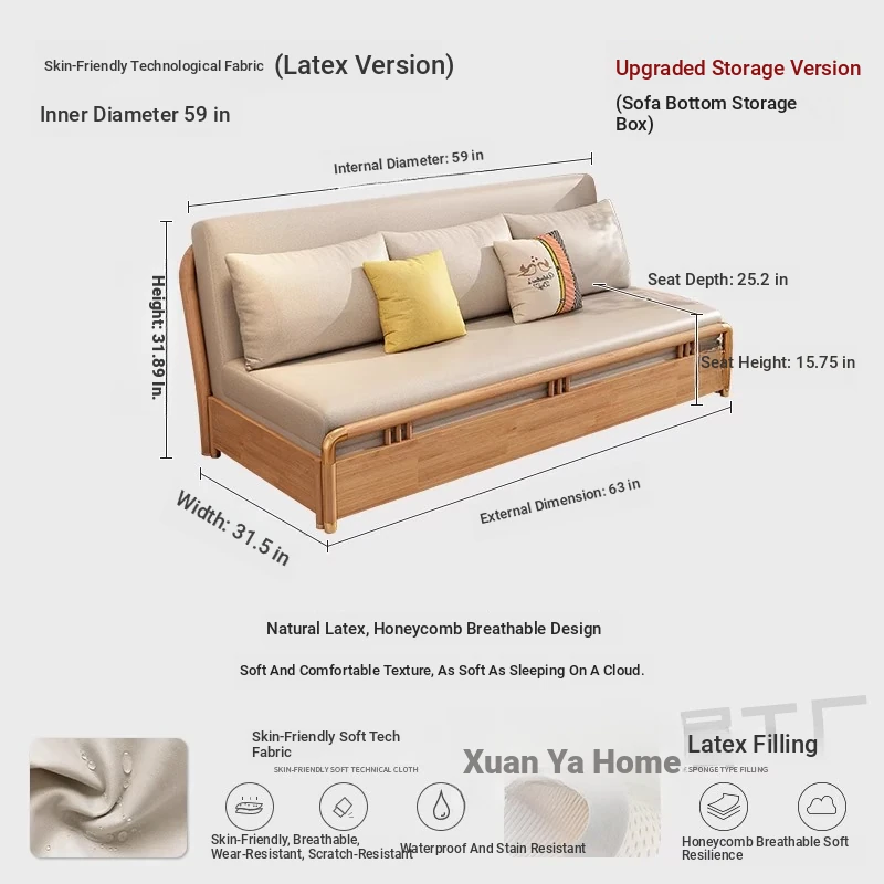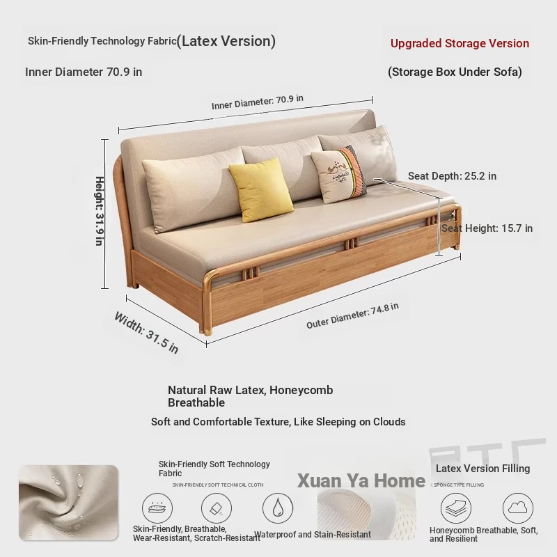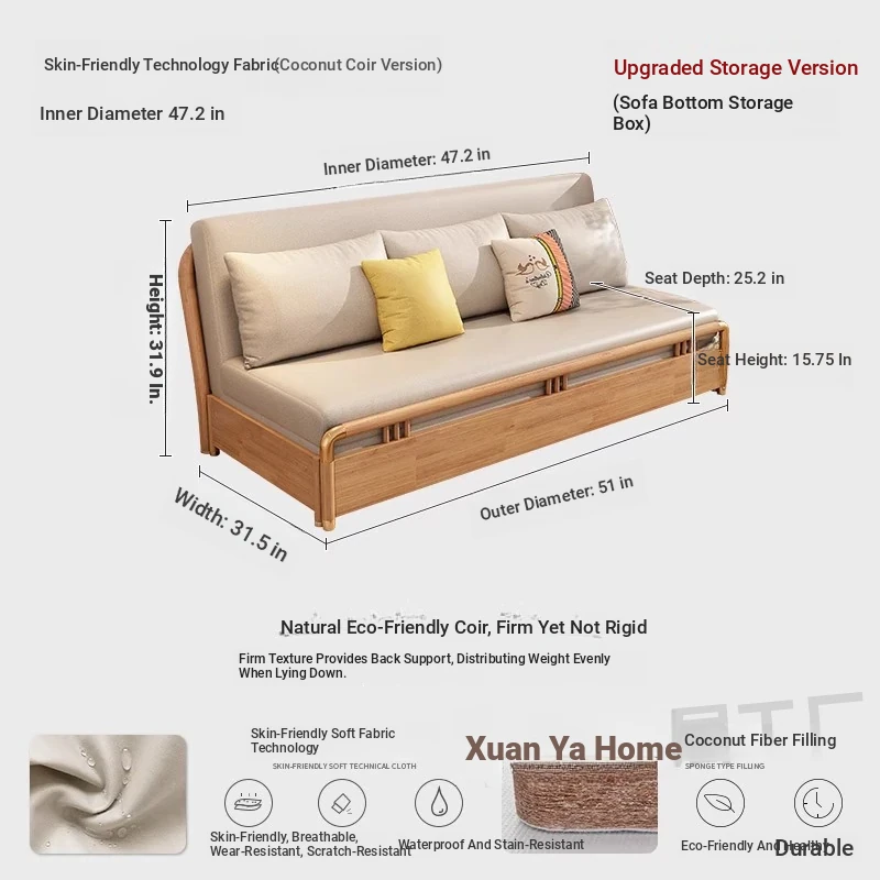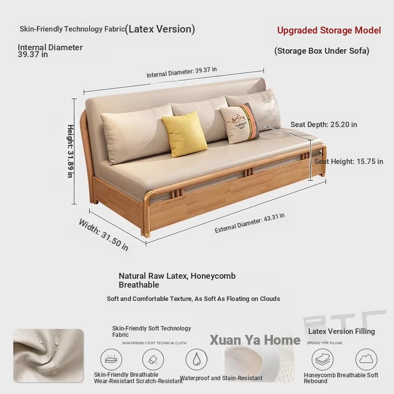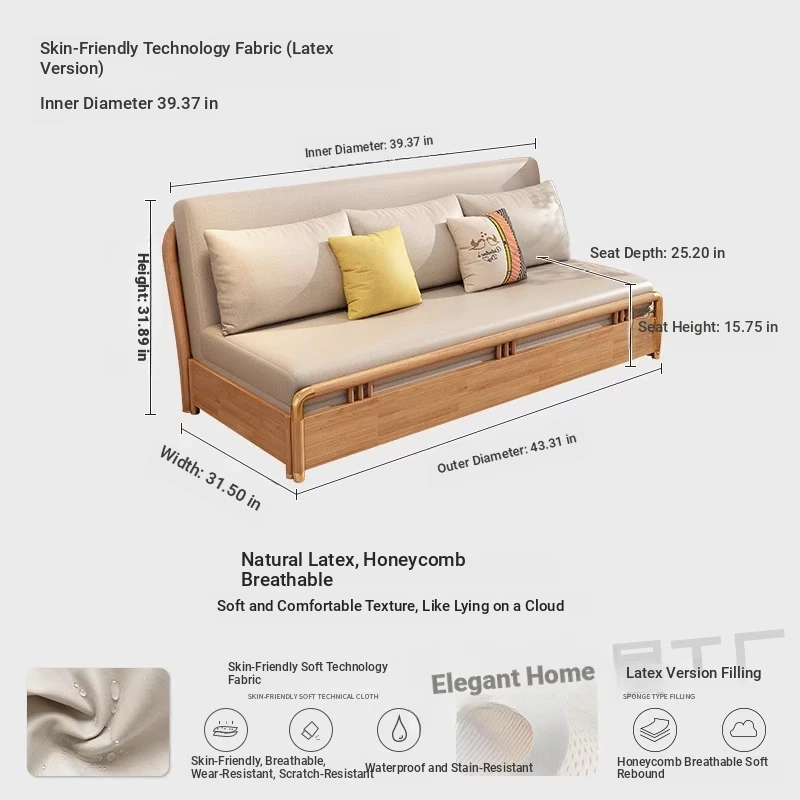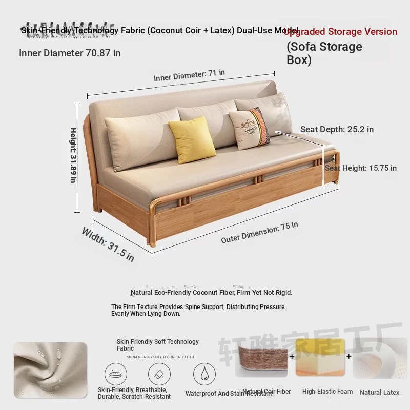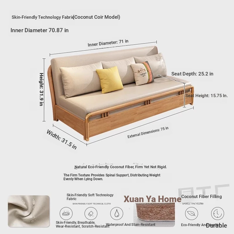 2025 New Versatile Solid Wood Sofa Bed - Foldable 2-in-1 Design for Small Spaces & Home Offices, Perfect for Cozy Living!