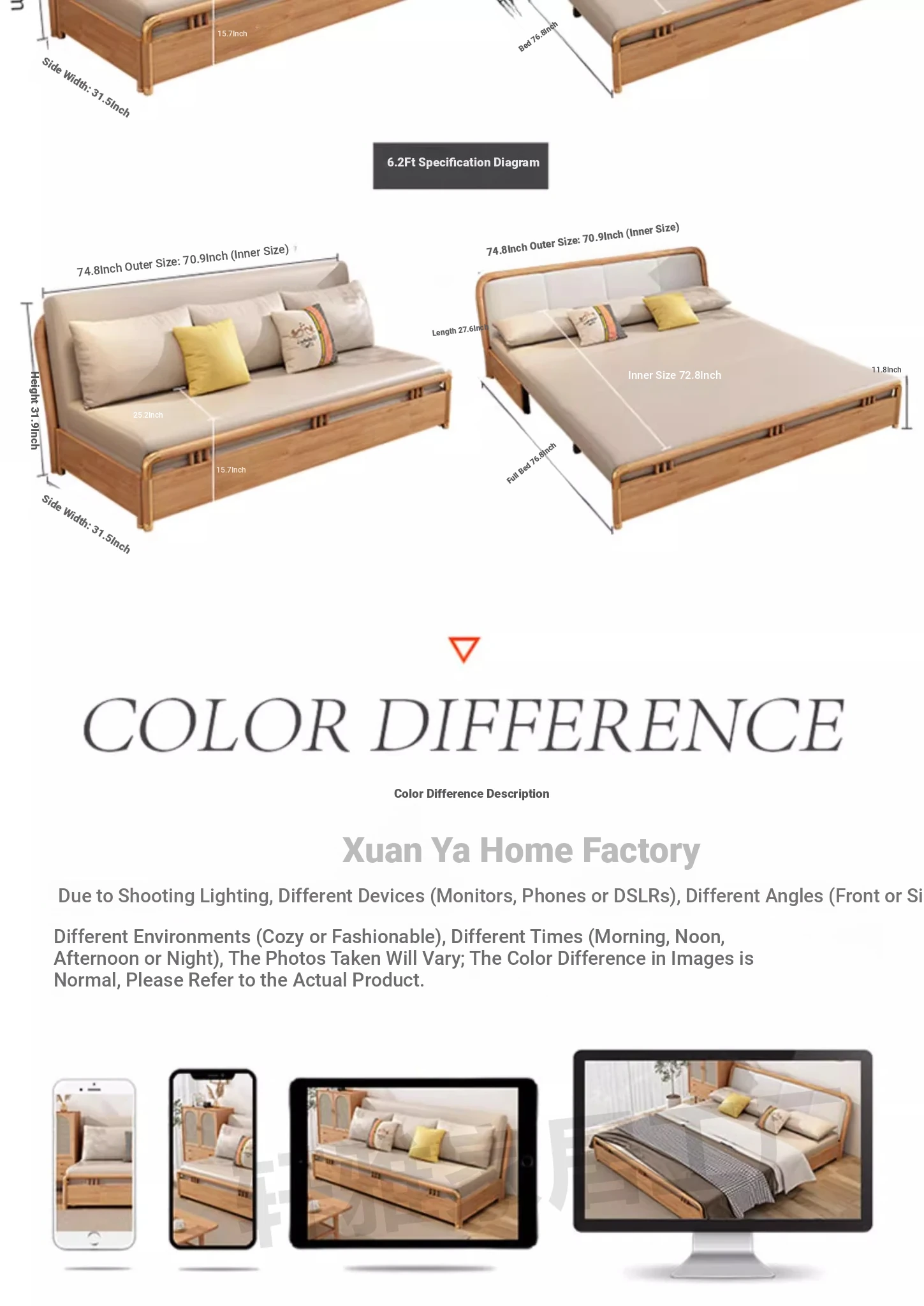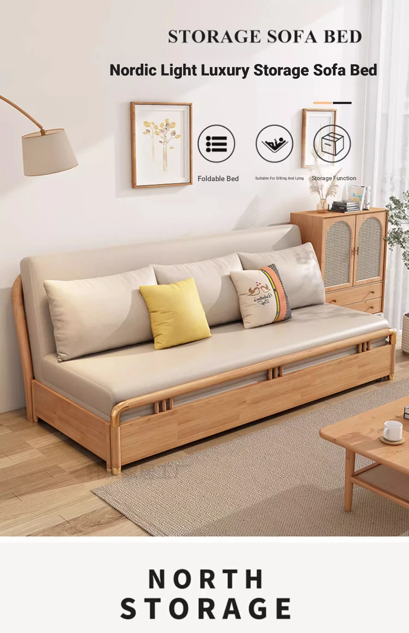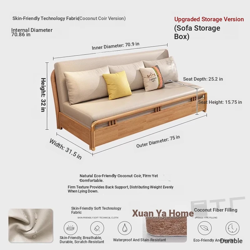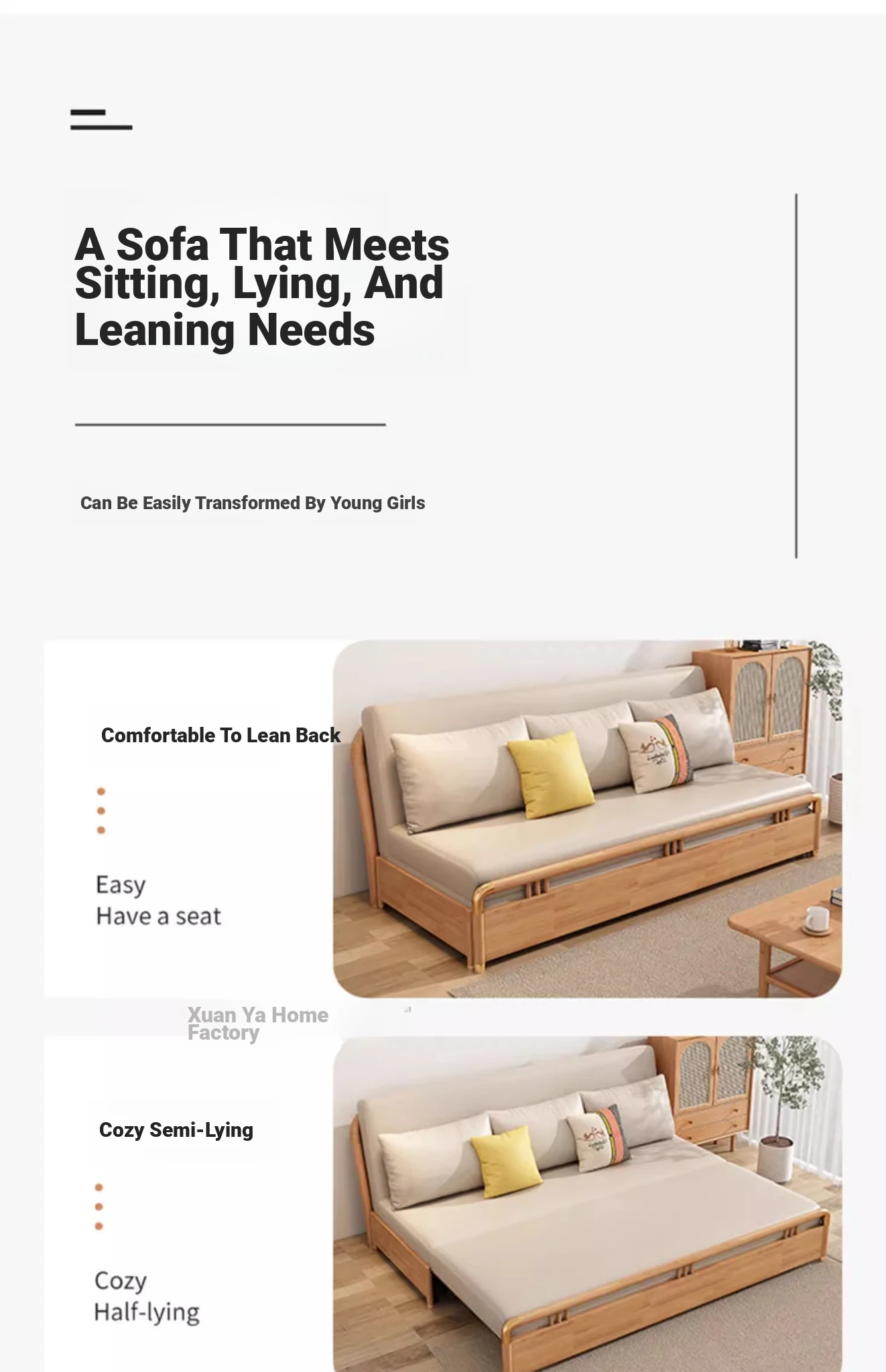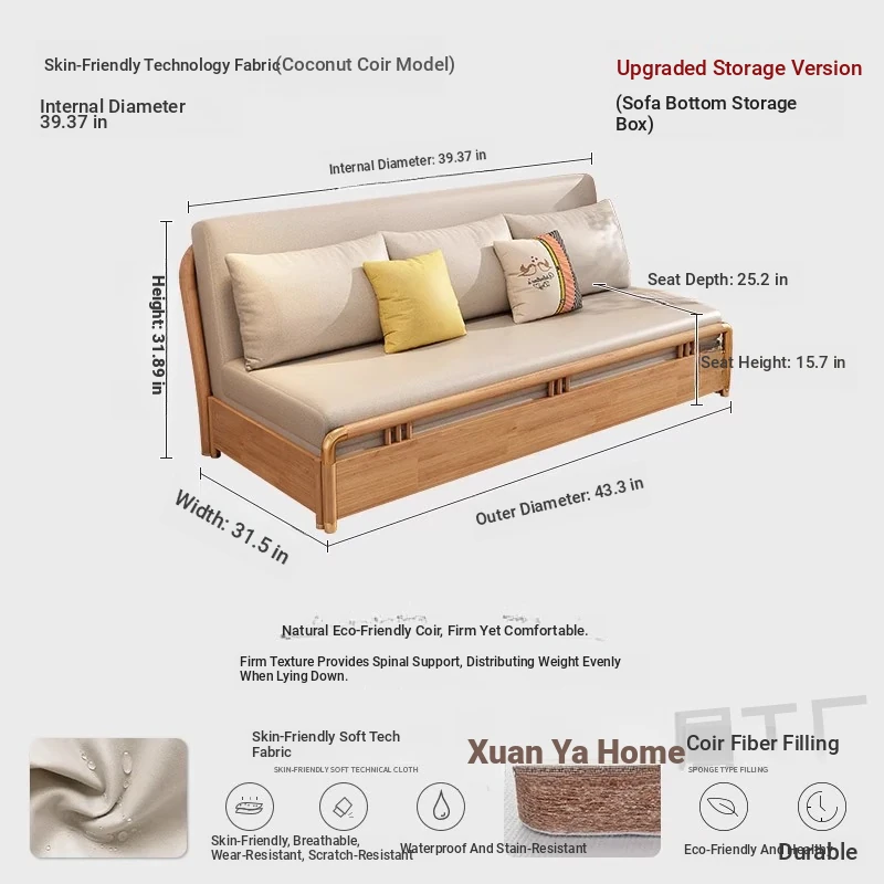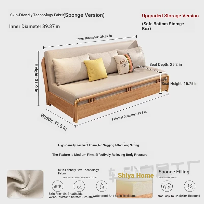 2025 New Versatile Solid Wood Sofa Bed - Foldable 2-in-1 Design for Small Spaces & Home Offices, Perfect for Cozy Living!