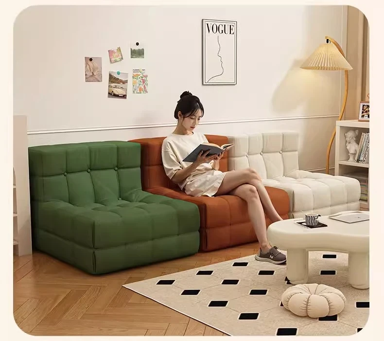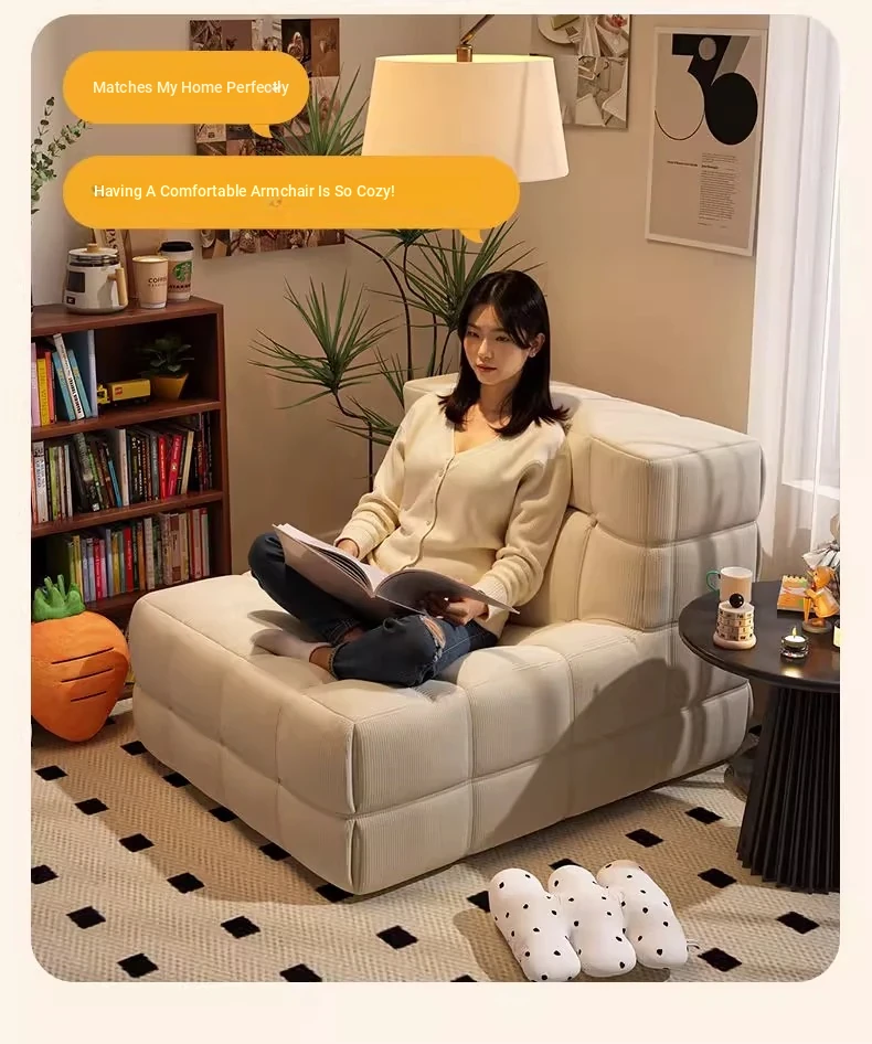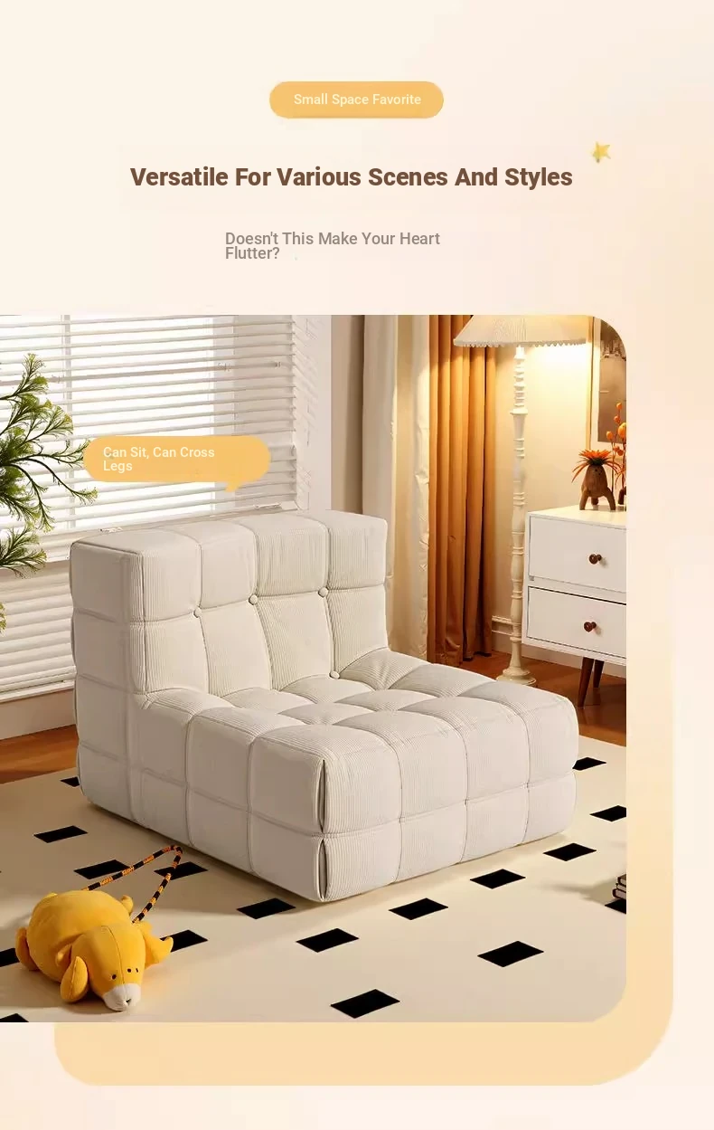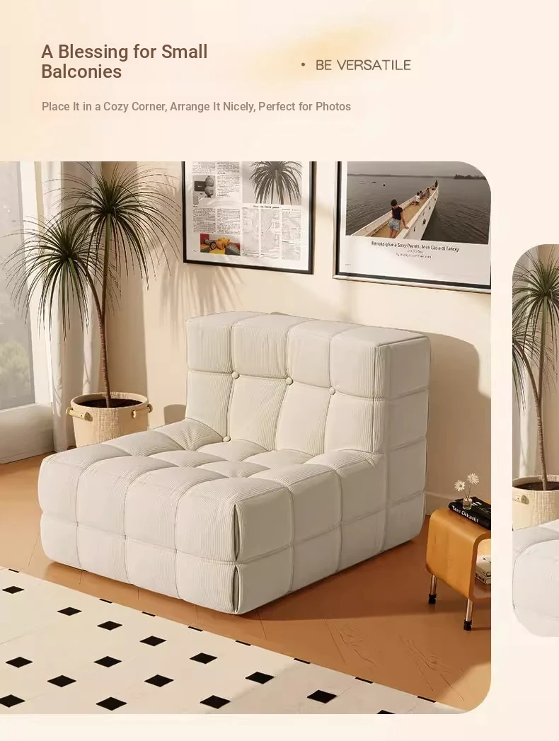 Caterpillar Lazy Sofa Chair - Versatile and Comfortable Design, Perfect for Relaxing or Napping, Trendy Waffle Texture, Compact Square Shape, Ideal for Modern Living Spaces