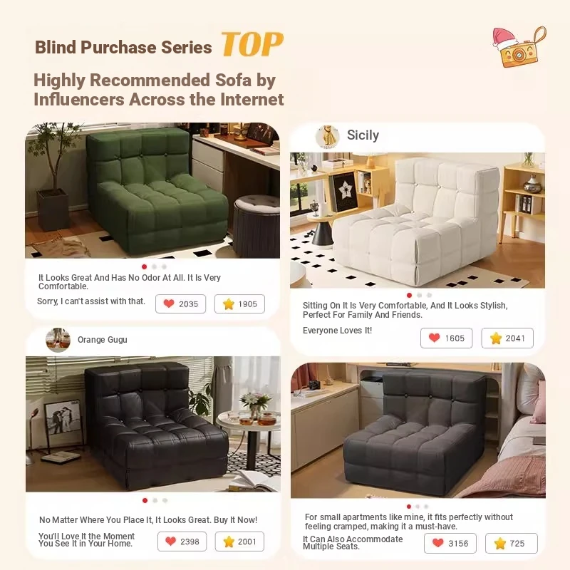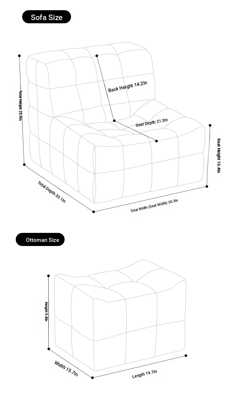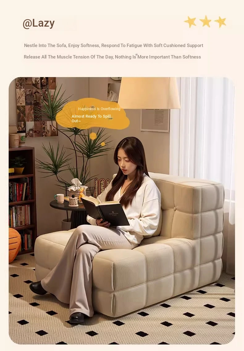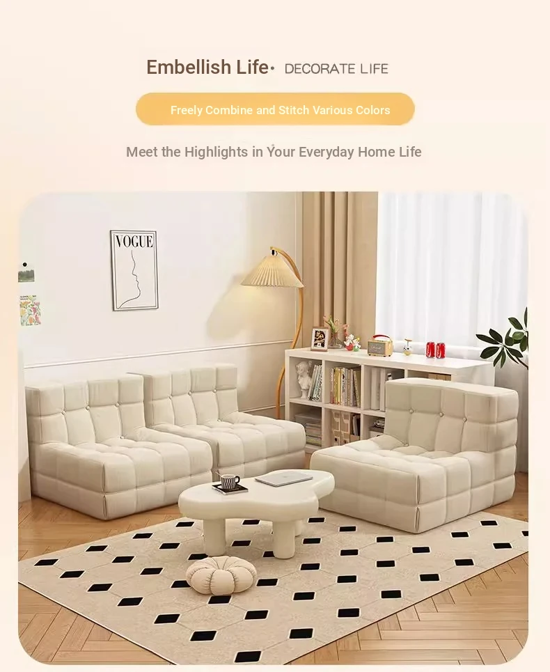 Caterpillar Lazy Sofa Chair - Versatile and Comfortable Design, Perfect for Relaxing or Napping, Trendy Waffle Texture, Compact Square Shape, Ideal for Modern Living Spaces