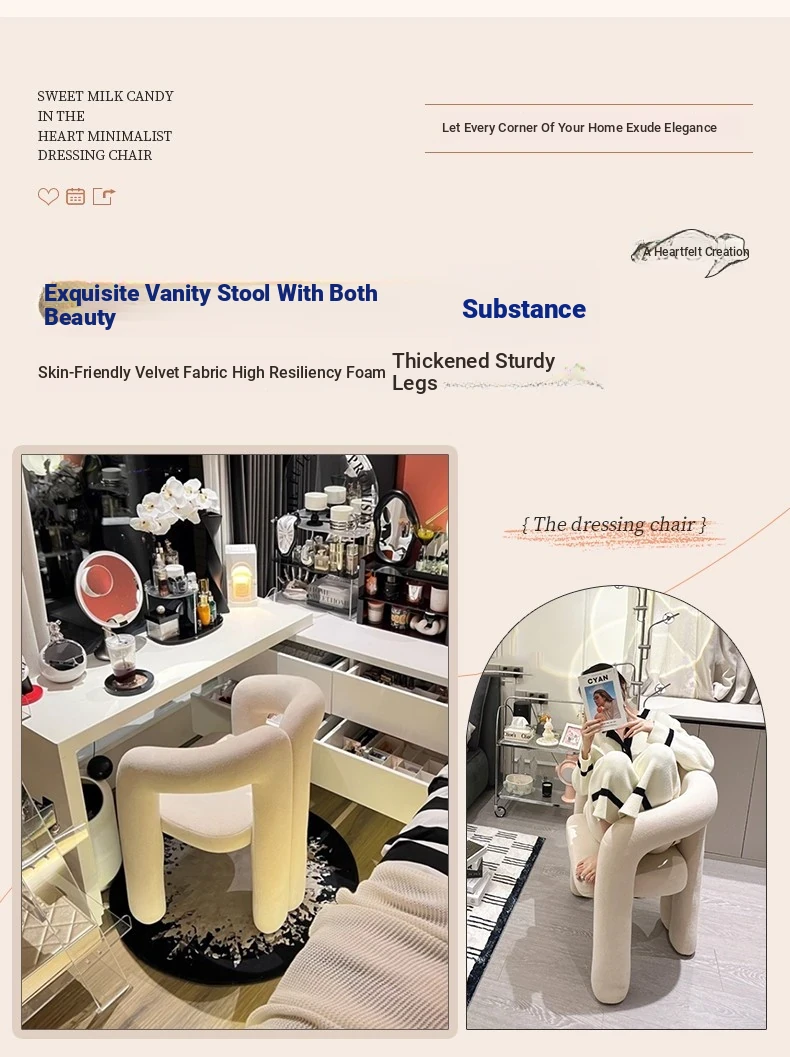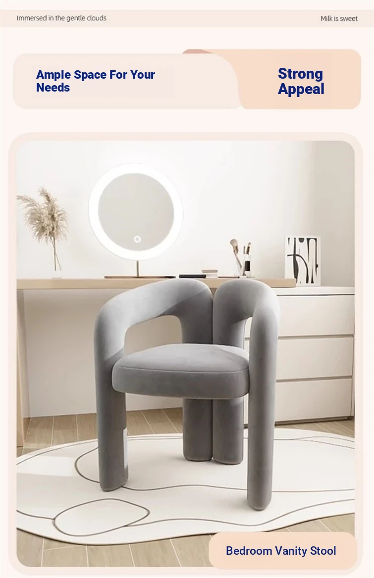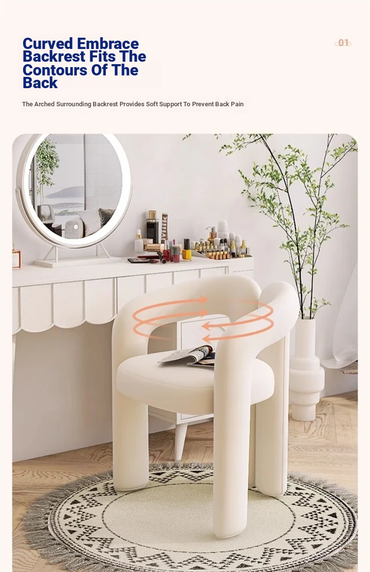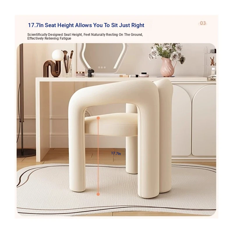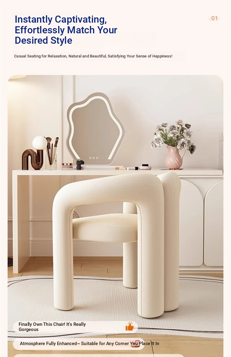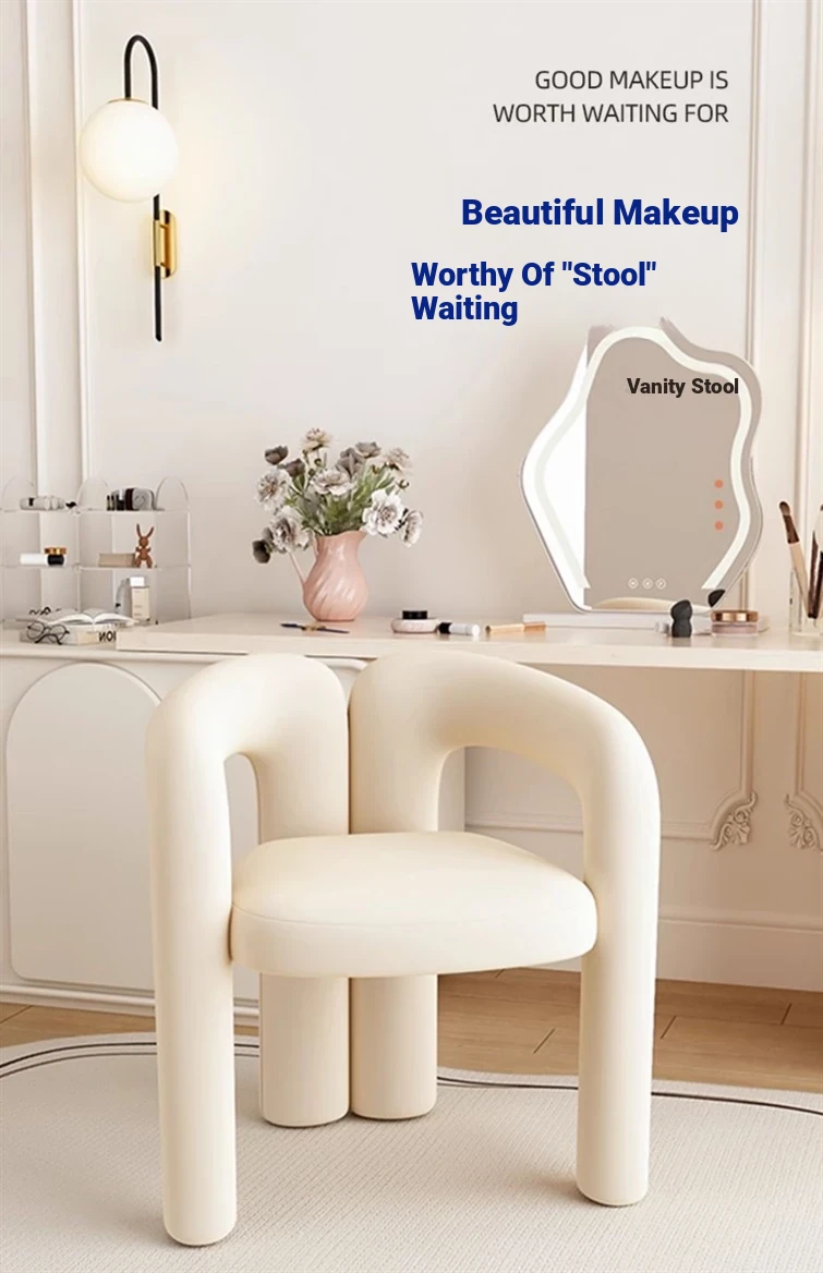 Chic Makeup Stool for Girls - Elegant Vanity Chair with Backrest for Bedroom and Dressing Room, Perfect for Makeup and Nail Art - Stylish Designer Minimalist Design
