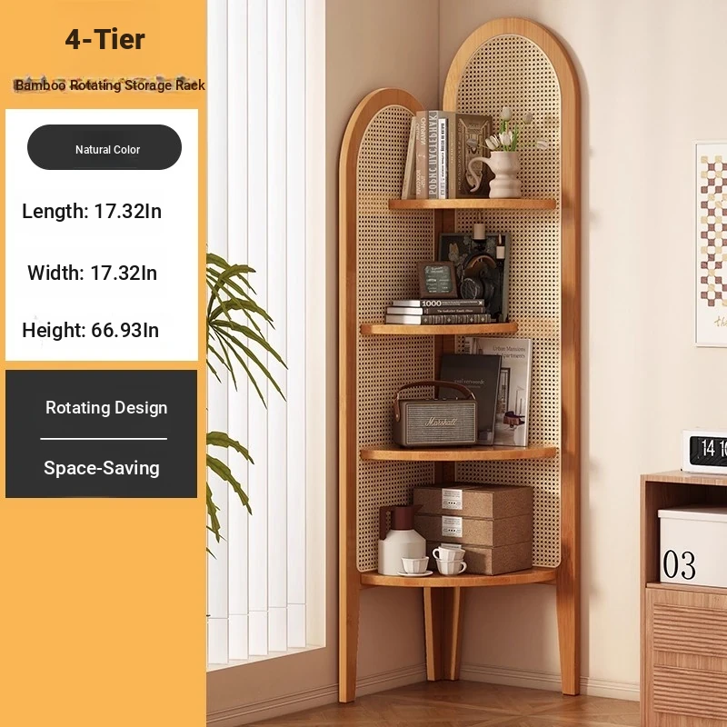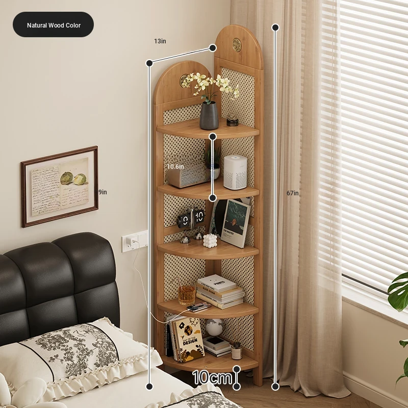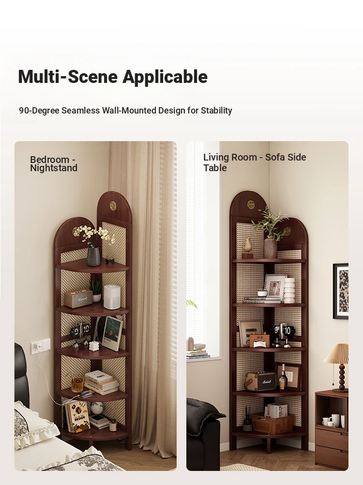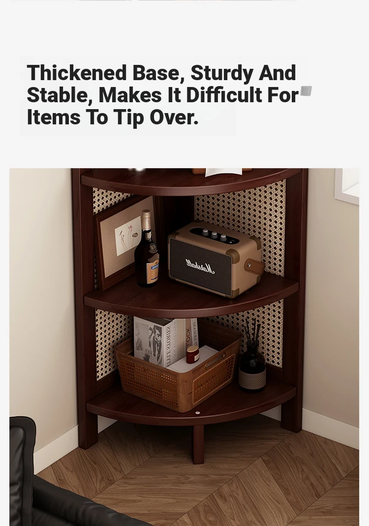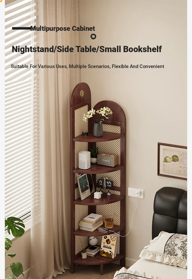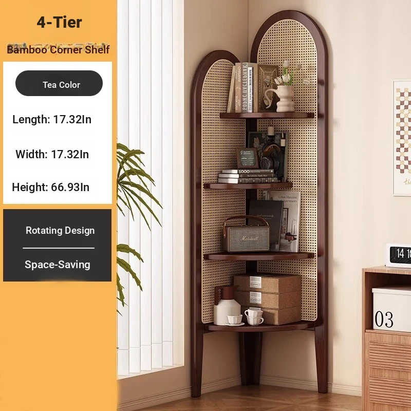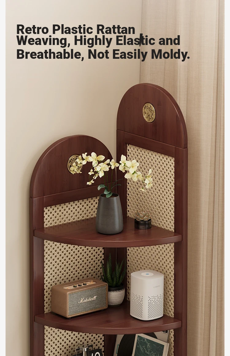 Chinese-style Rattan Corner Shelf Storage Unit - Space-saving Wall-mounted Nightstand and Bookshelf for Bedroom, Perfect for Corner Triangular Spaces
