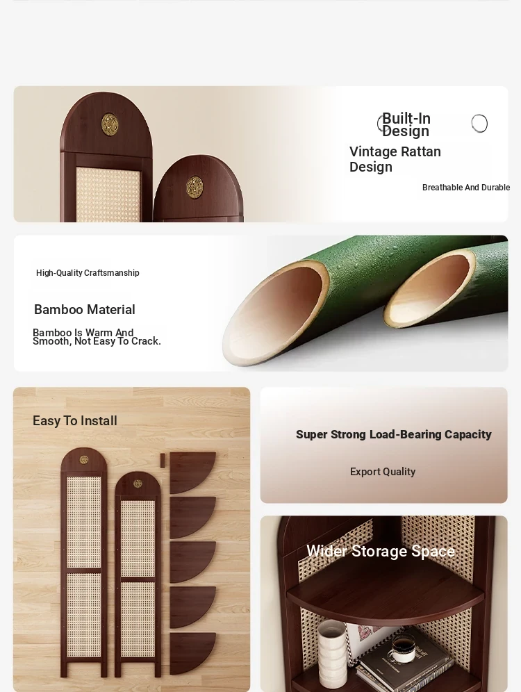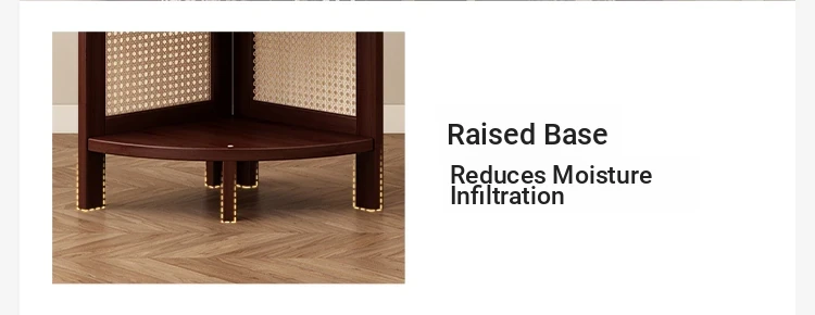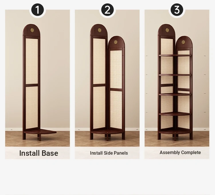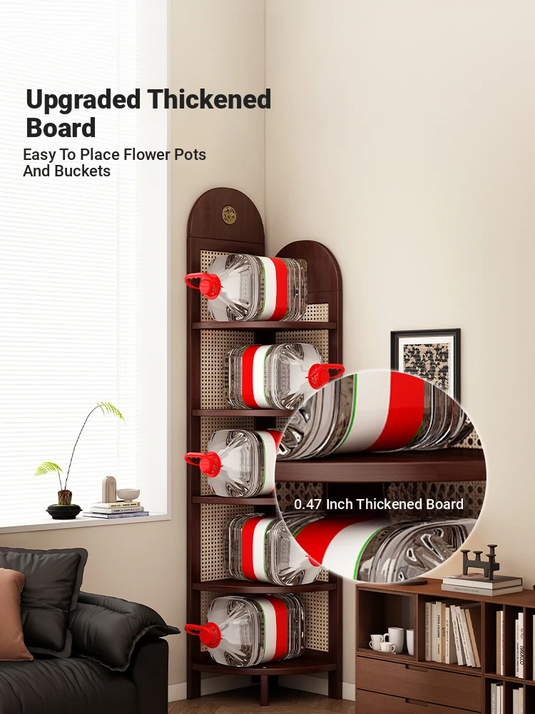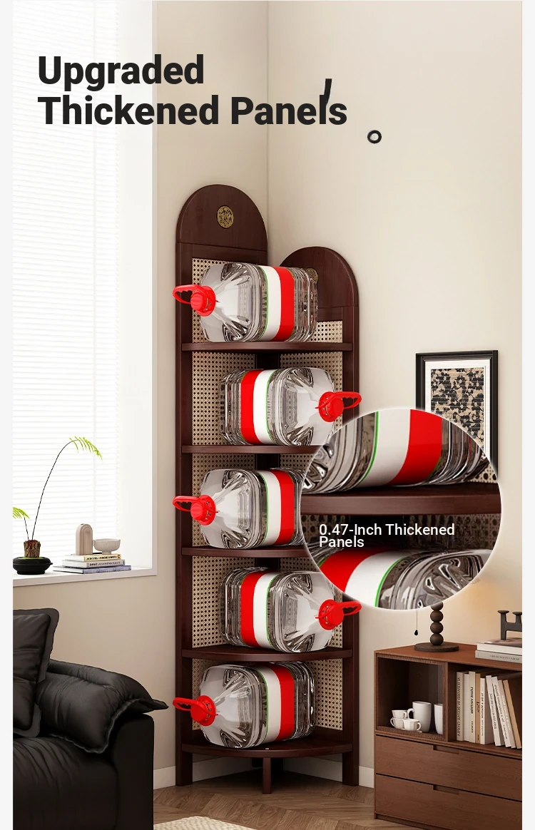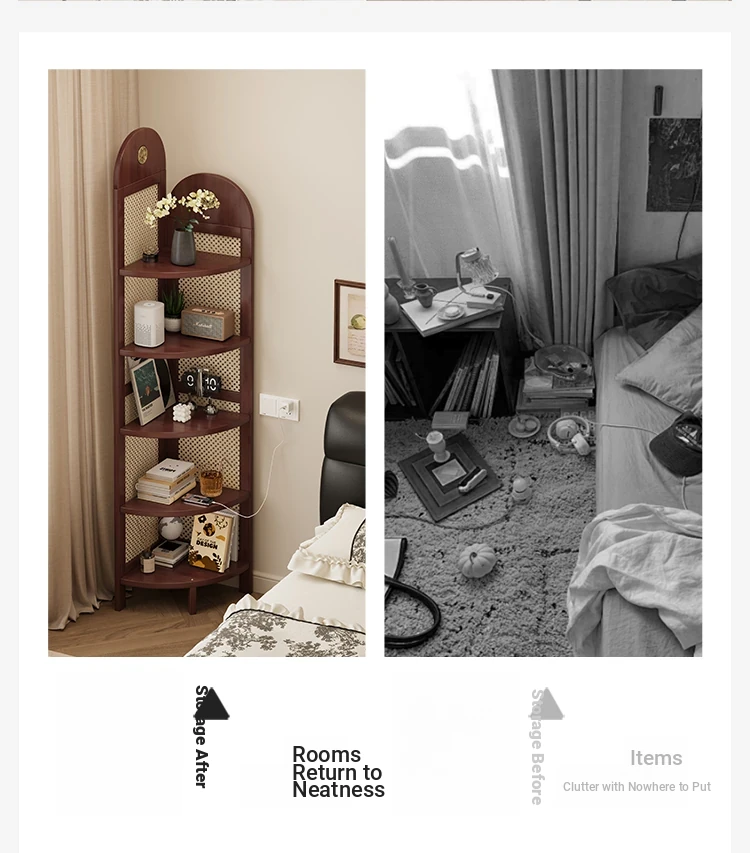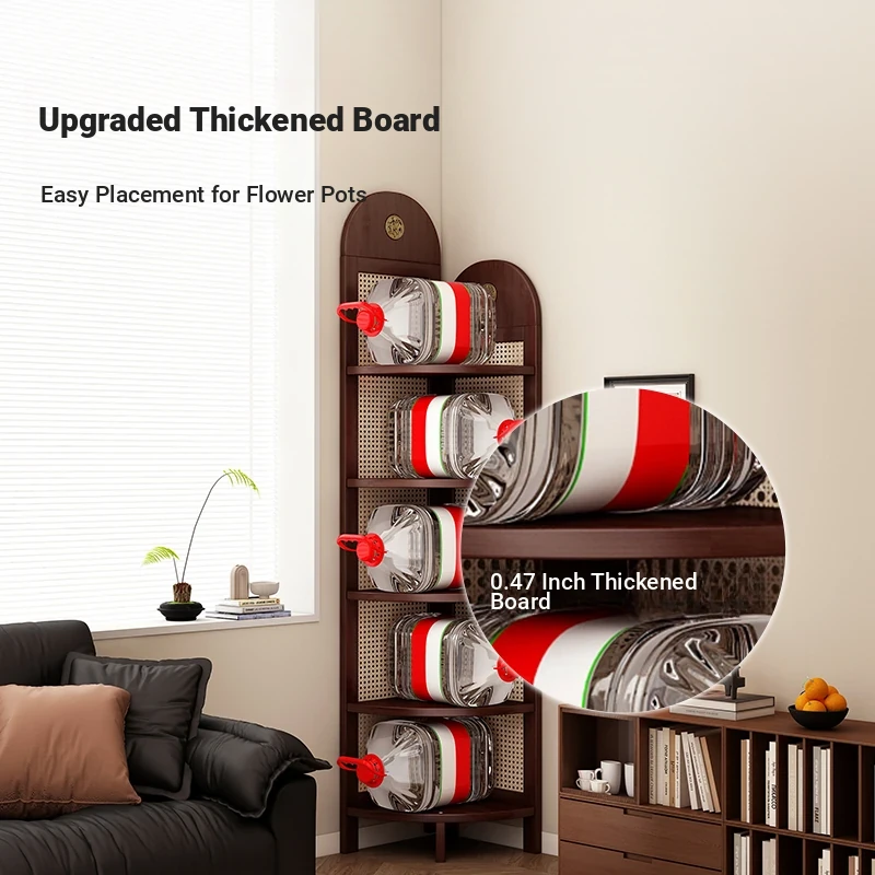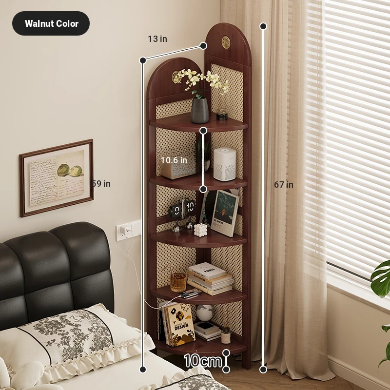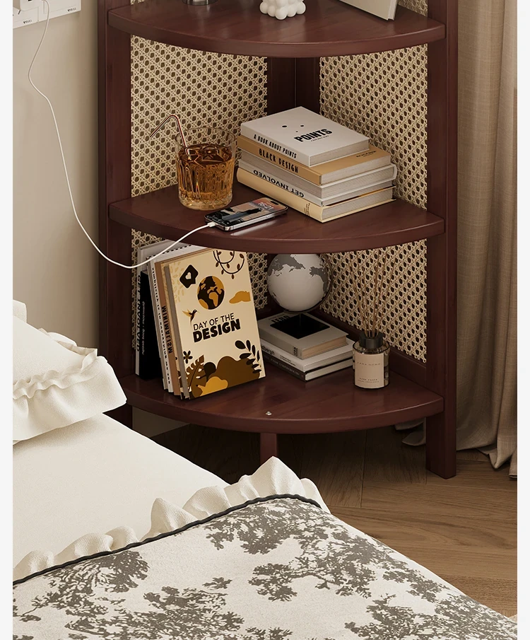 Chinese-style Rattan Corner Shelf Storage Unit - Space-saving Wall-mounted Nightstand and Bookshelf for Bedroom, Perfect for Corner Triangular Spaces