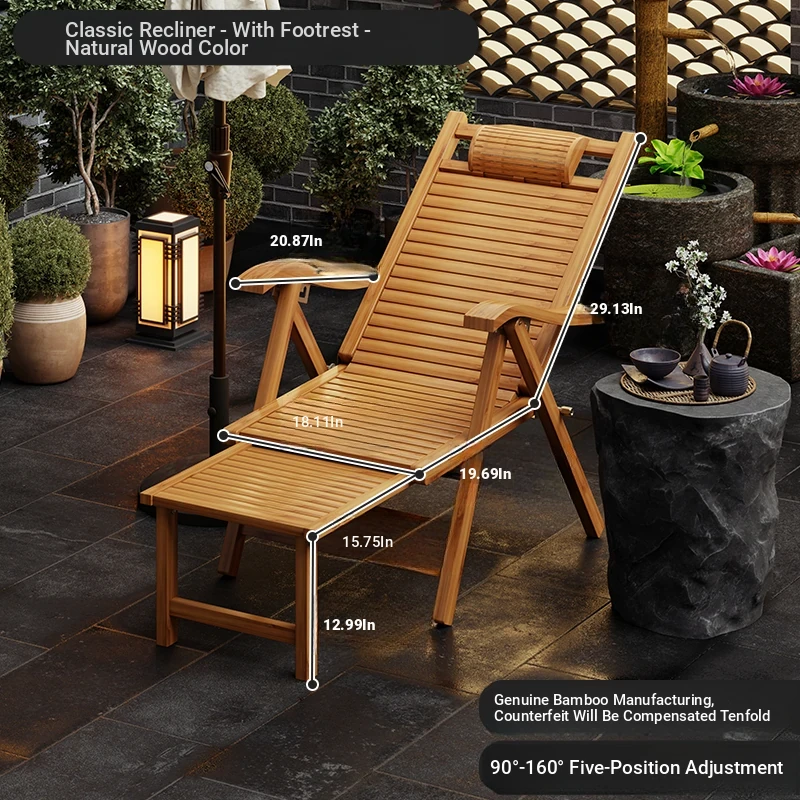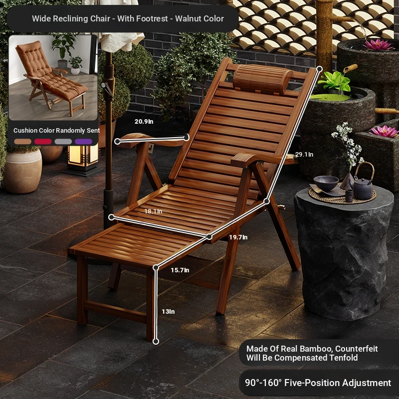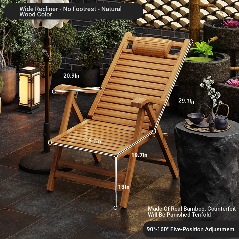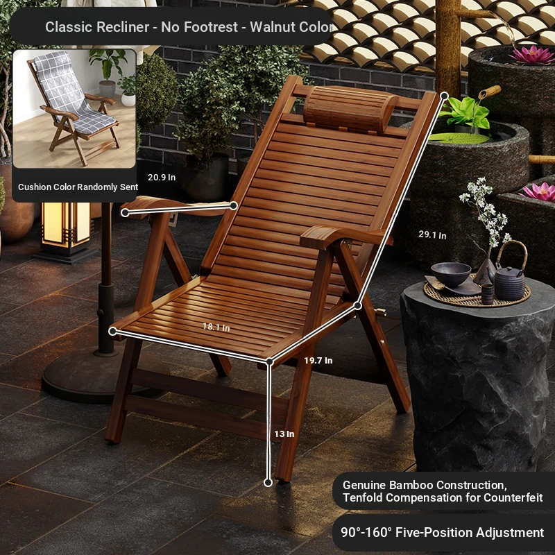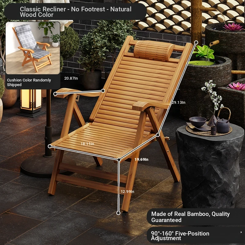 Comfortable Folding Recliner Chair for Home and Balcony - Ideal for Napping and Relaxation, Perfect for Seniors and Lazy Loungers, Made of Bamboo for Long-lasting Use