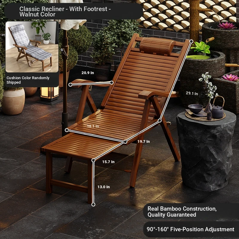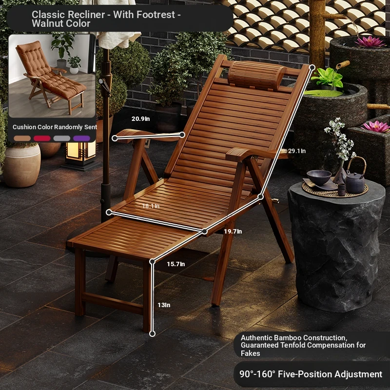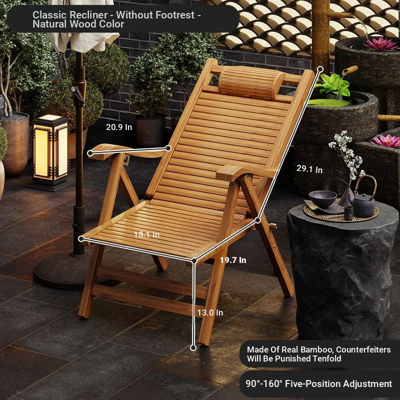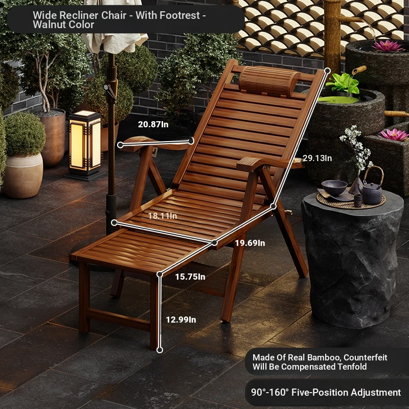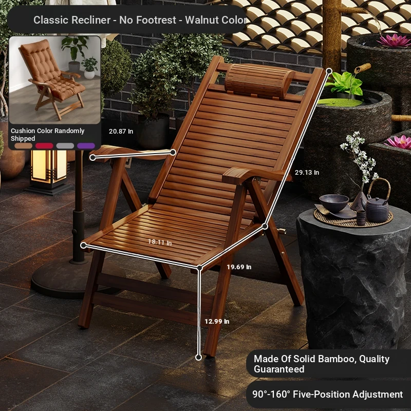 Comfortable Folding Recliner Chair for Home and Balcony - Ideal for Napping and Relaxation, Perfect for Seniors and Lazy Loungers, Made of Bamboo for Long-lasting Use