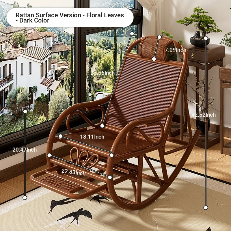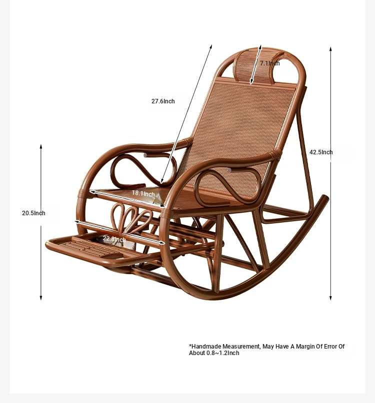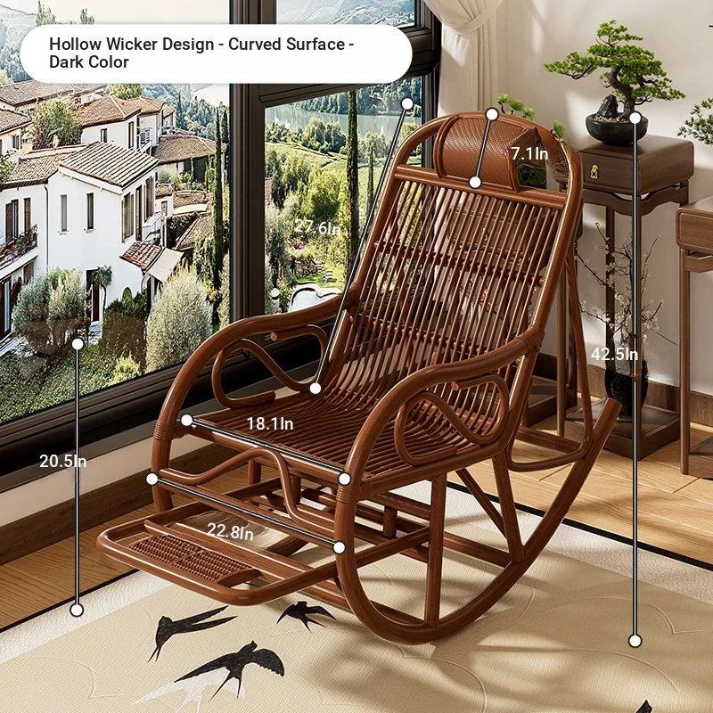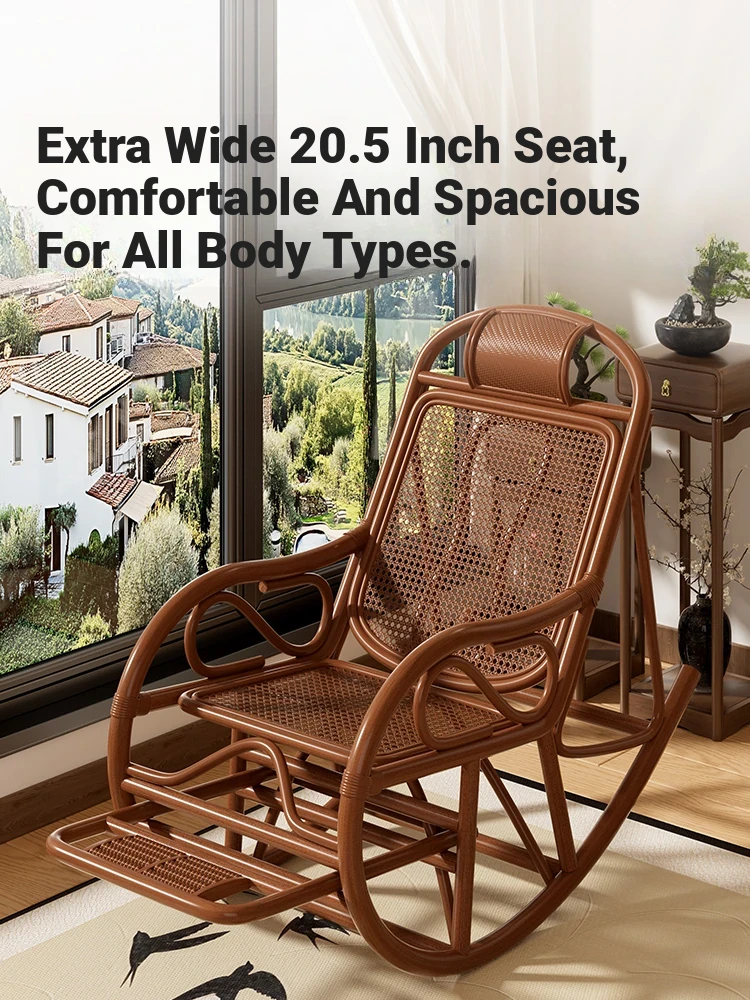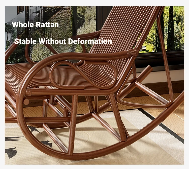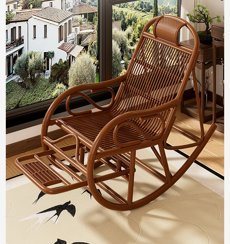 Comfortable Rattan Recliner Chair for Adults - Perfect for Napping on the Balcony, Home, or Garden. Ideal for Seniors, This Genuine Rattan Lounge Chair Enhances Your Living Room or Courtyard Experience.