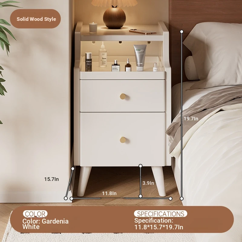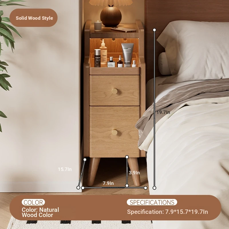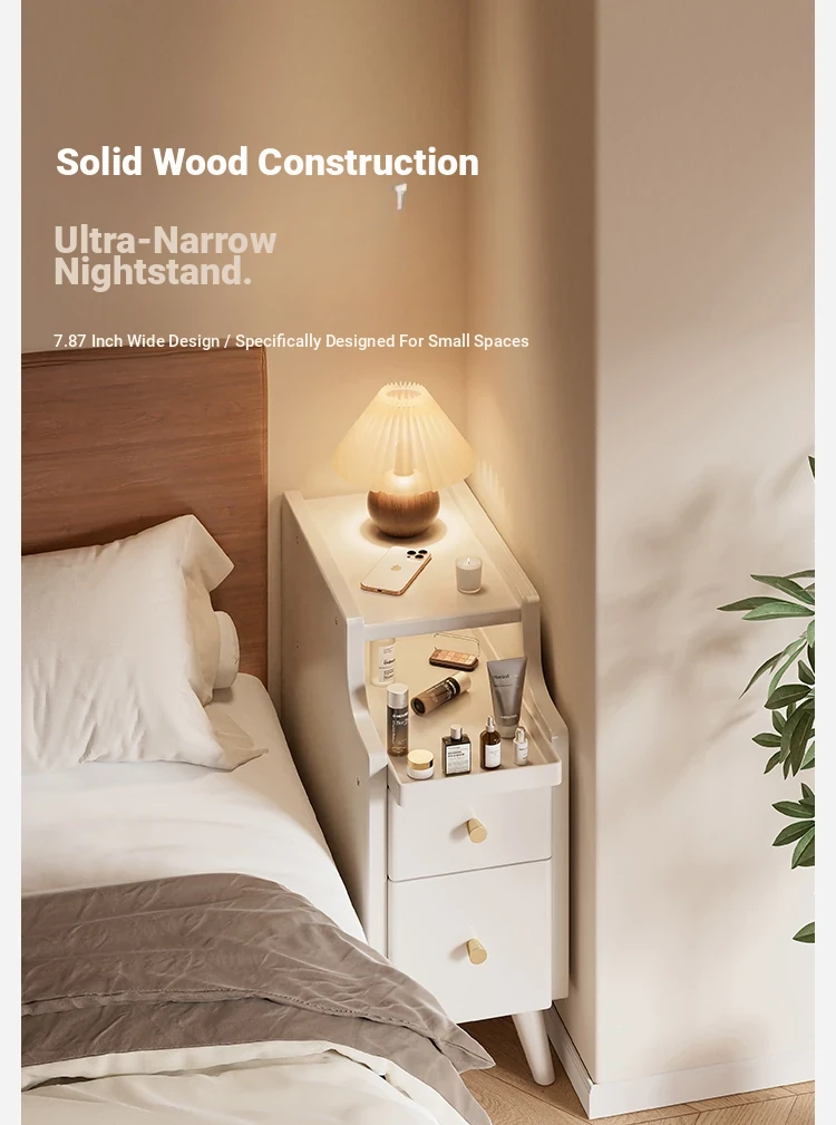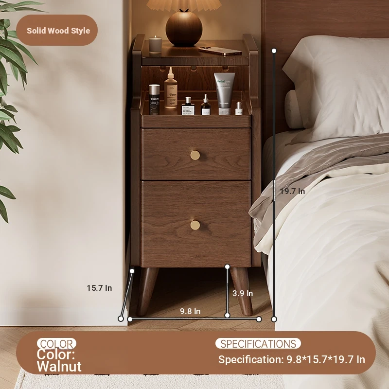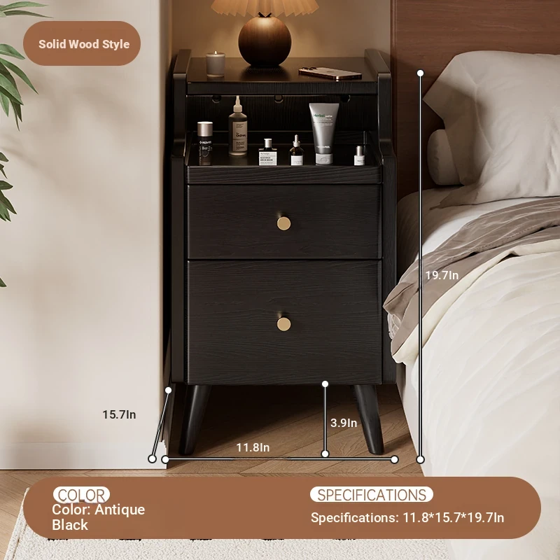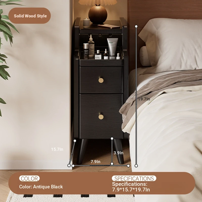 Compact Black Solid Wood Nightstand - Mini Narrow Bedside Storage Cabinet (20cm) for Efficient Space Utilization and Stylish Organization