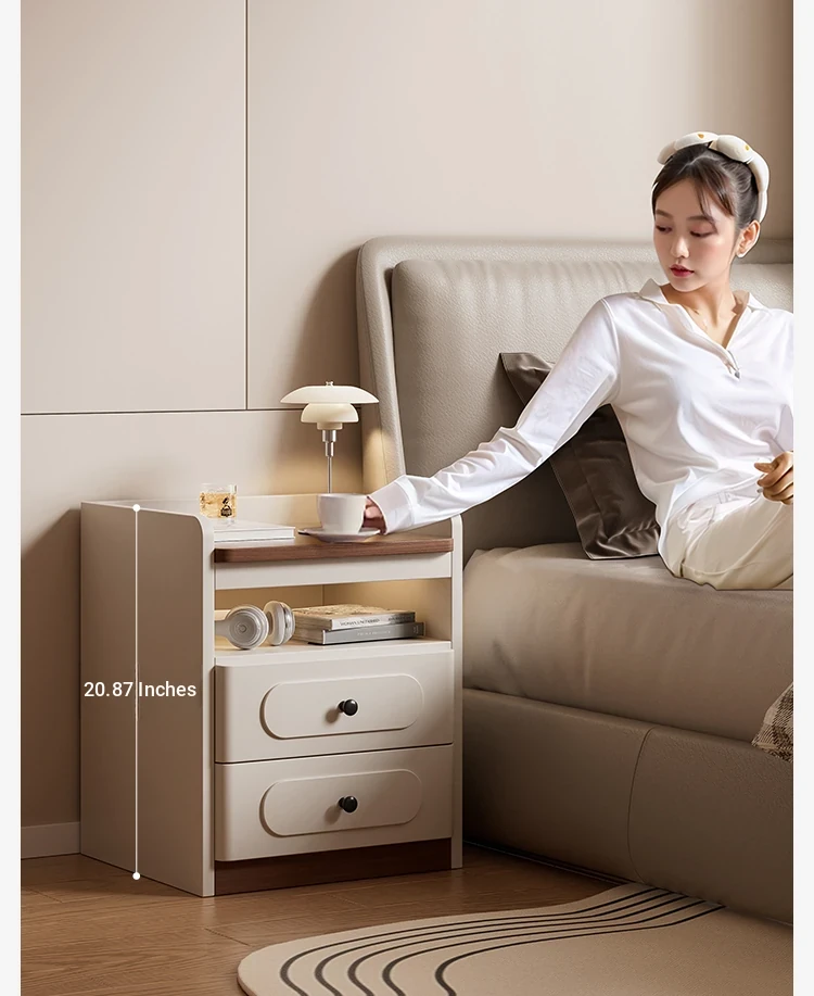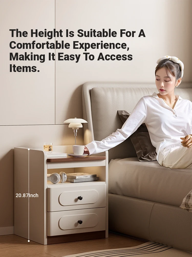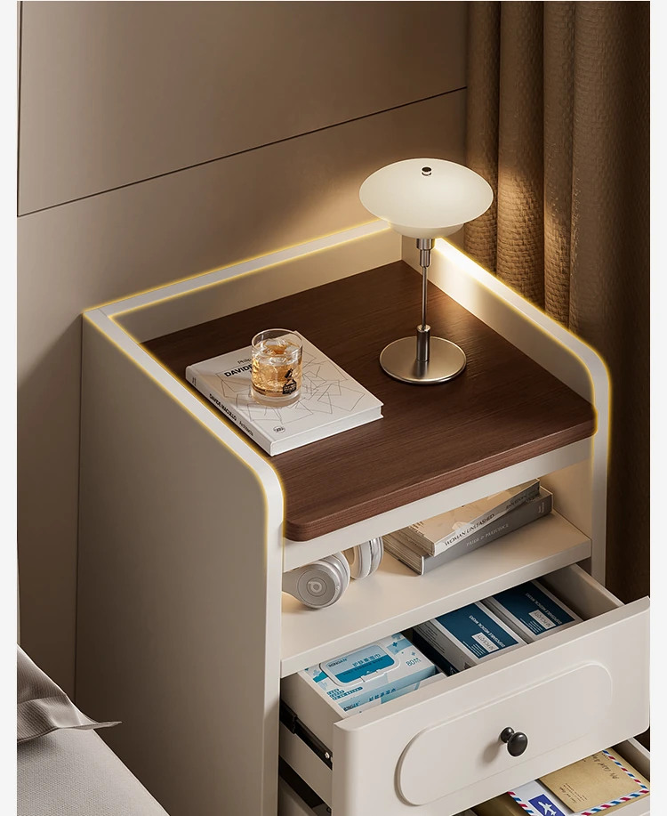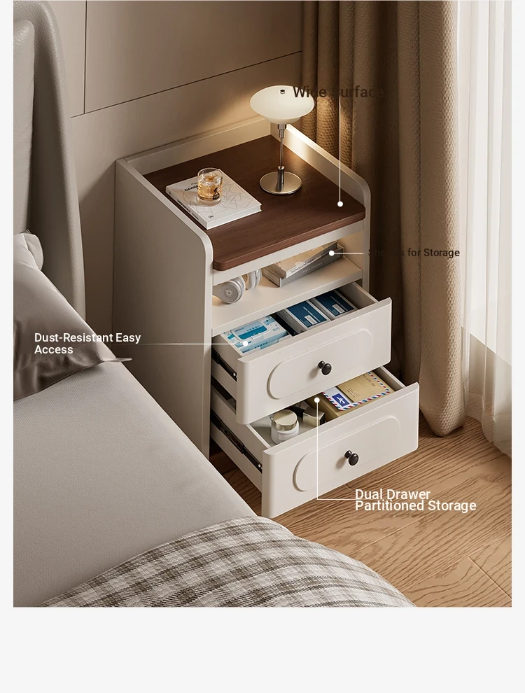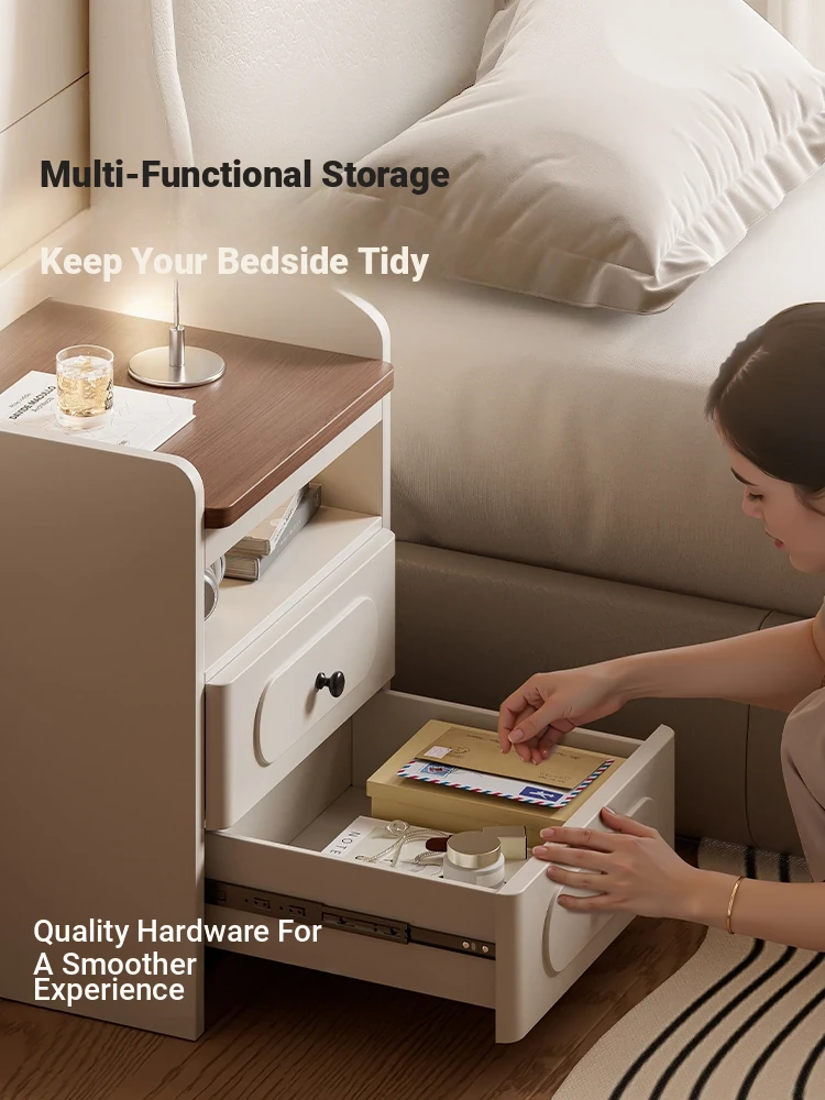 Compact Cream Nightstand for Bedroom - 25cm Ultra-Narrow Solid Wood Storage Cabinet for Small Spaces, Perfect for Bedside Use
