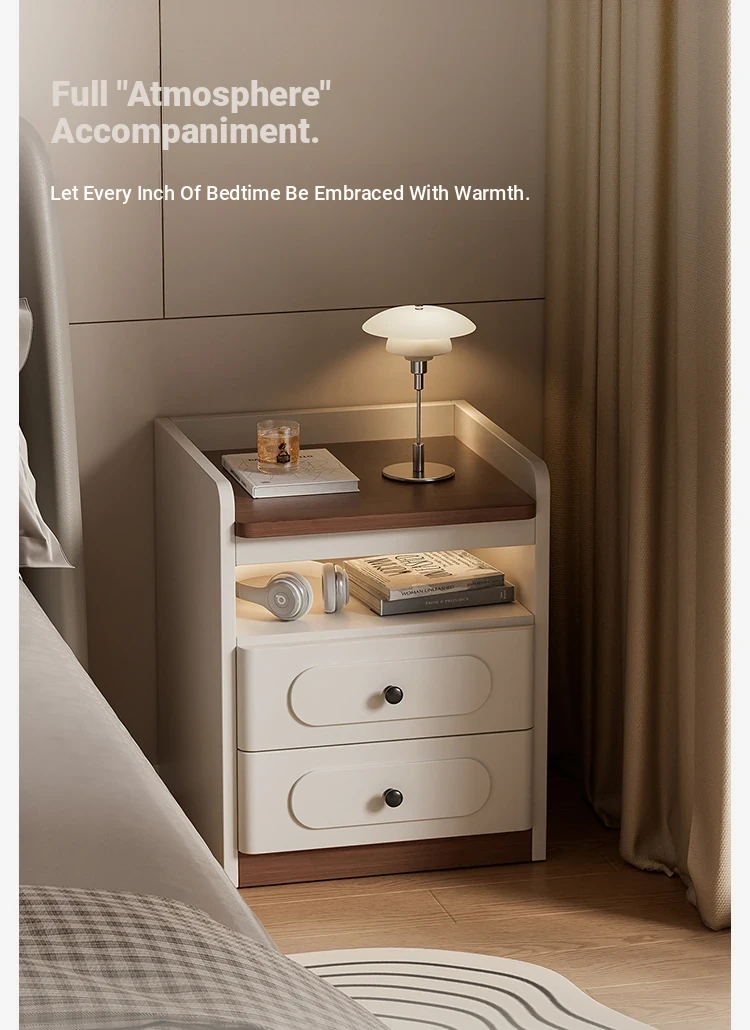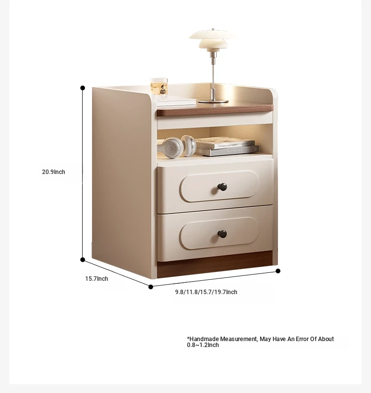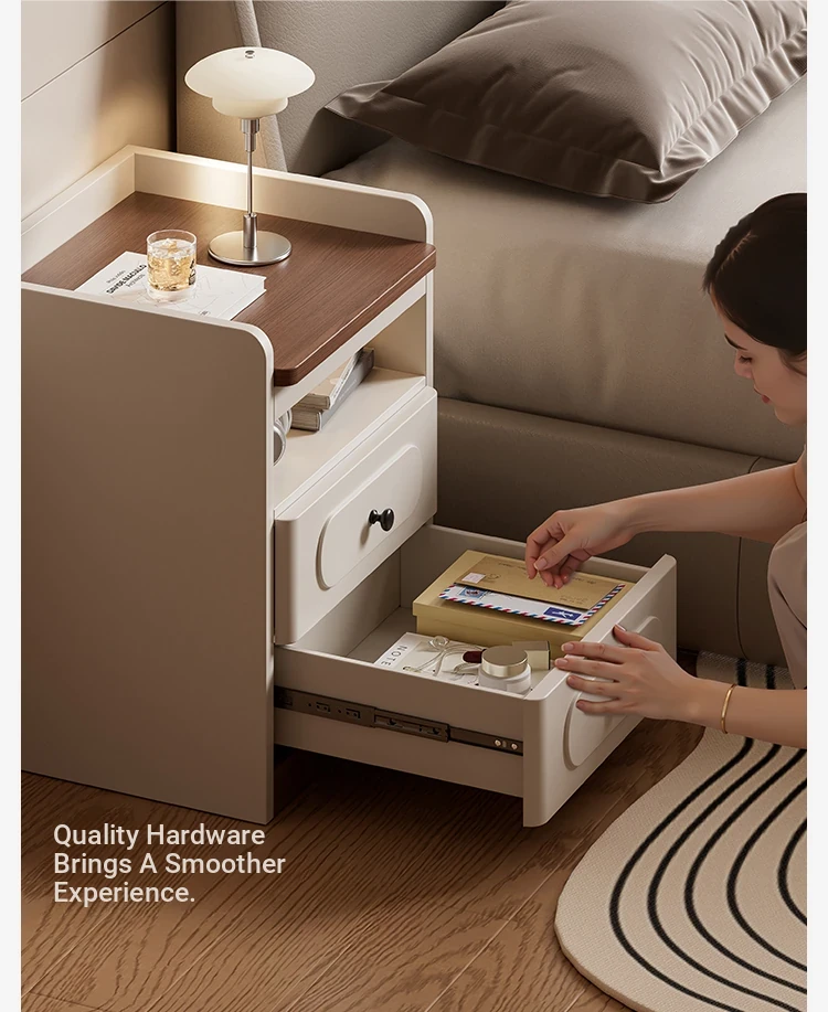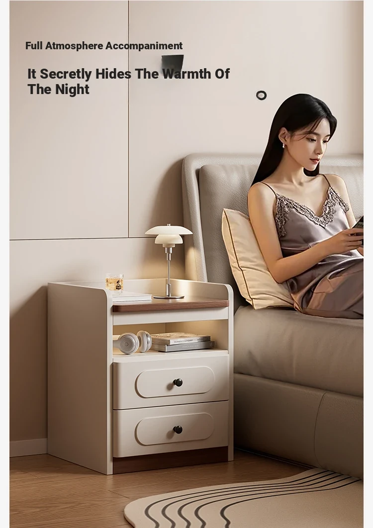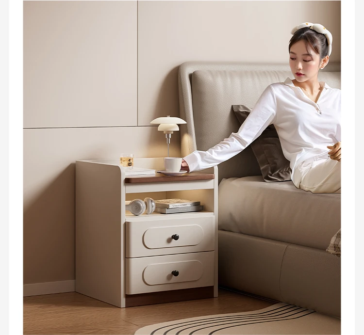 Compact Cream Nightstand for Bedroom - 25cm Ultra-Narrow Solid Wood Storage Cabinet for Small Spaces, Perfect for Bedside Use
