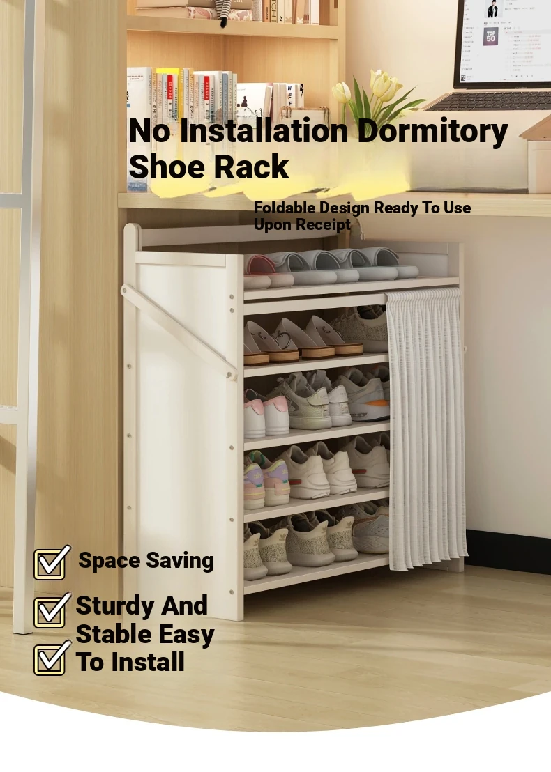 Compact Dustproof Shoe Rack for Student Dorms - Space-Saving, No Installation Required, Multi-Layer Storage Cabinet for Easy Access at Your Doorstep