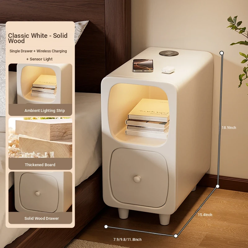 Compact Smart Nightstand for Bedroom 2025 - Trendy Bedside Storage Solution, Perfect for Narrow Spaces, Ideal for Organizing Your Essentials!