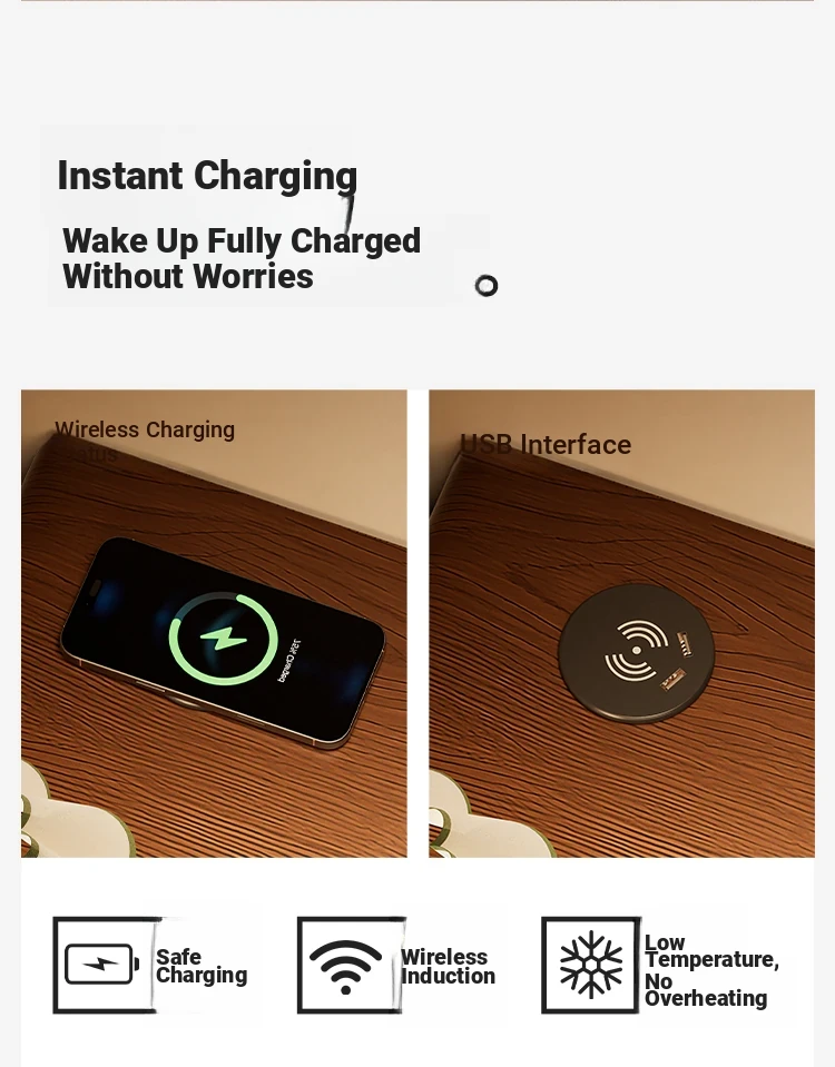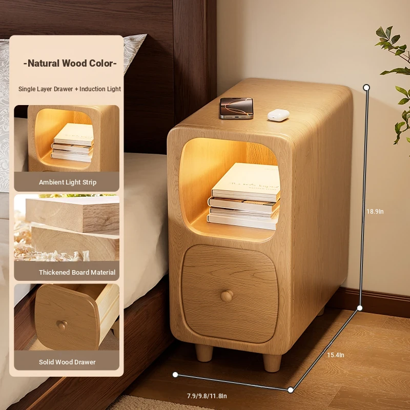 Log color "single-layer drawer + wireless charging + induction lamp 』⭐Solid Wood drawer