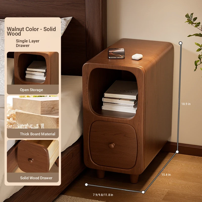 Walnut color "single-layer drawer + wireless charging 』⭐Solid Wood drawer