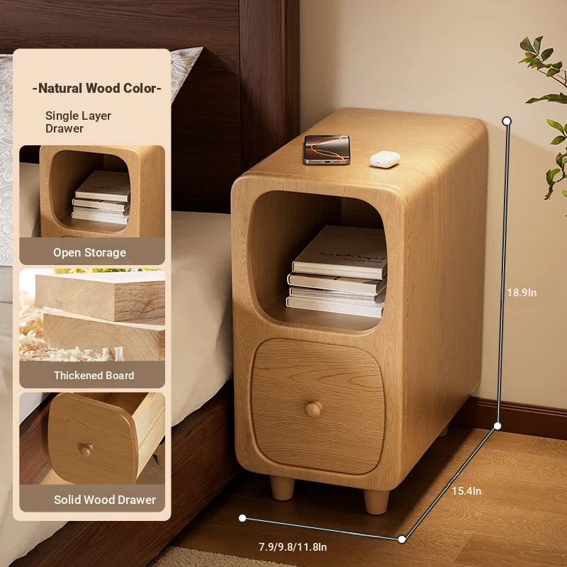 Log color "single drawer + wireless charging 』⭐Solid Wood drawer