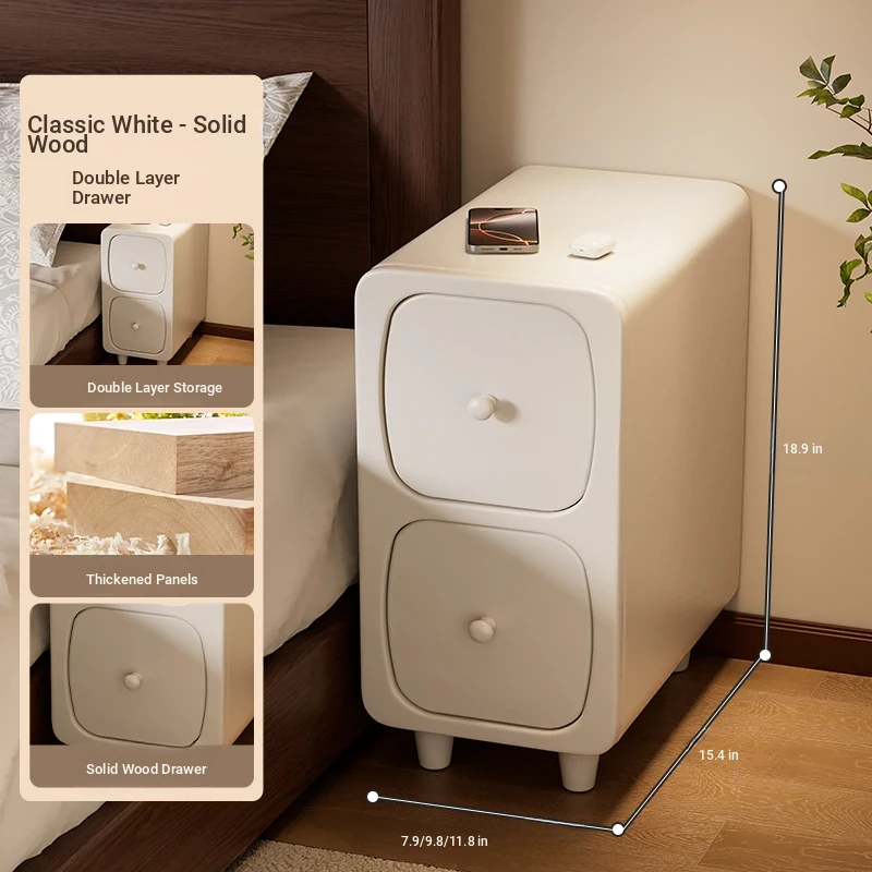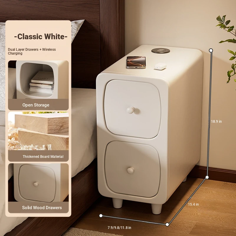 Classic White "double drawer + wireless charging 』⭐Solid Wood drawer