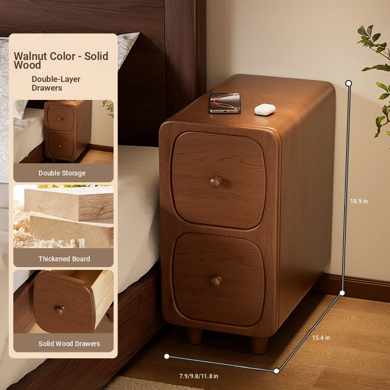 Walnut color "double drawer + wireless charging 』⭐Solid Wood drawer