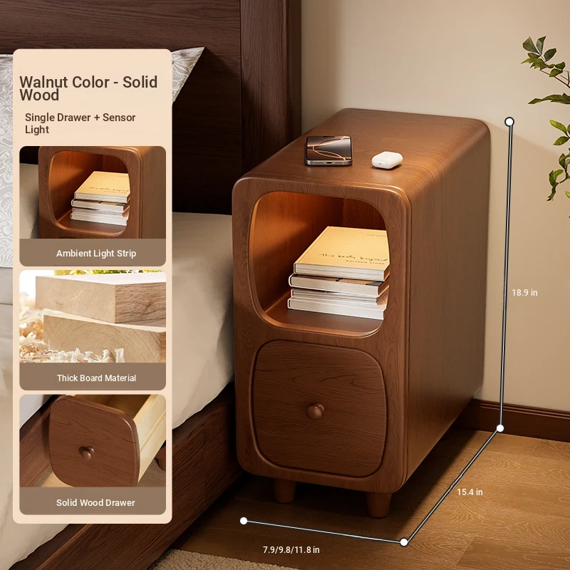 Walnut color "single-layer drawer + induction lamp 』⭐Solid Wood drawer