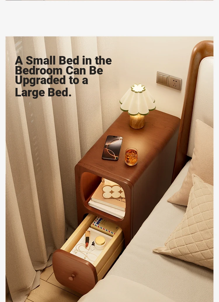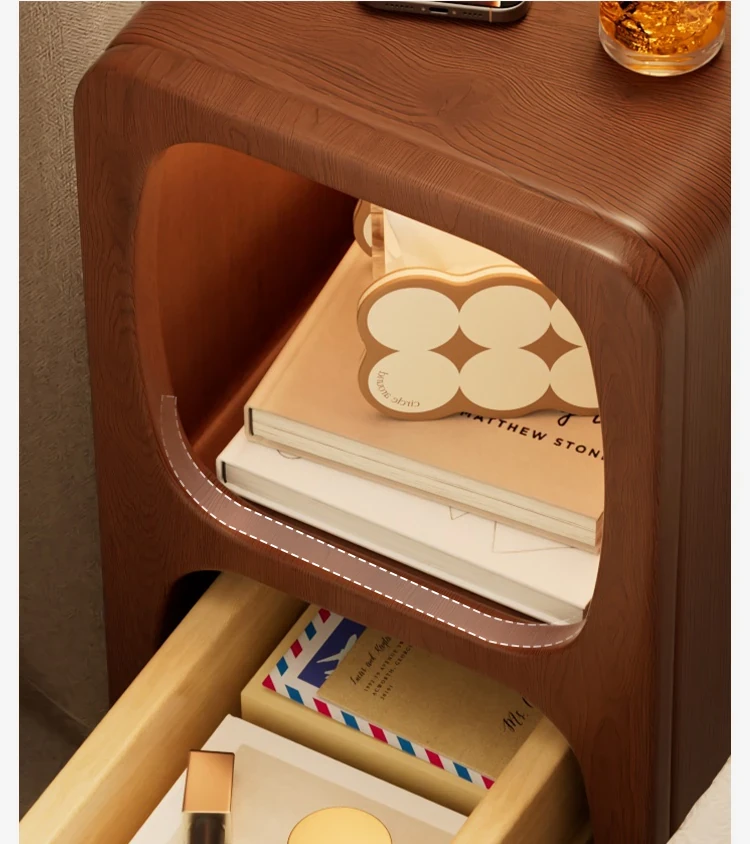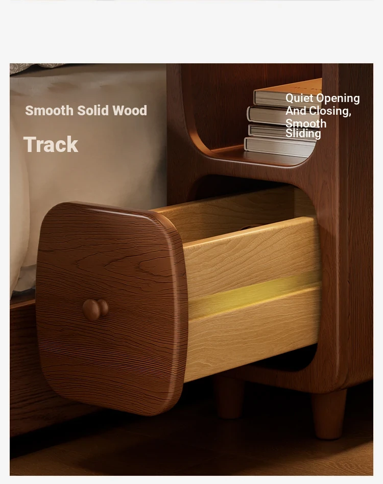 Log color "double drawer + wireless charging 』⭐Solid Wood drawer