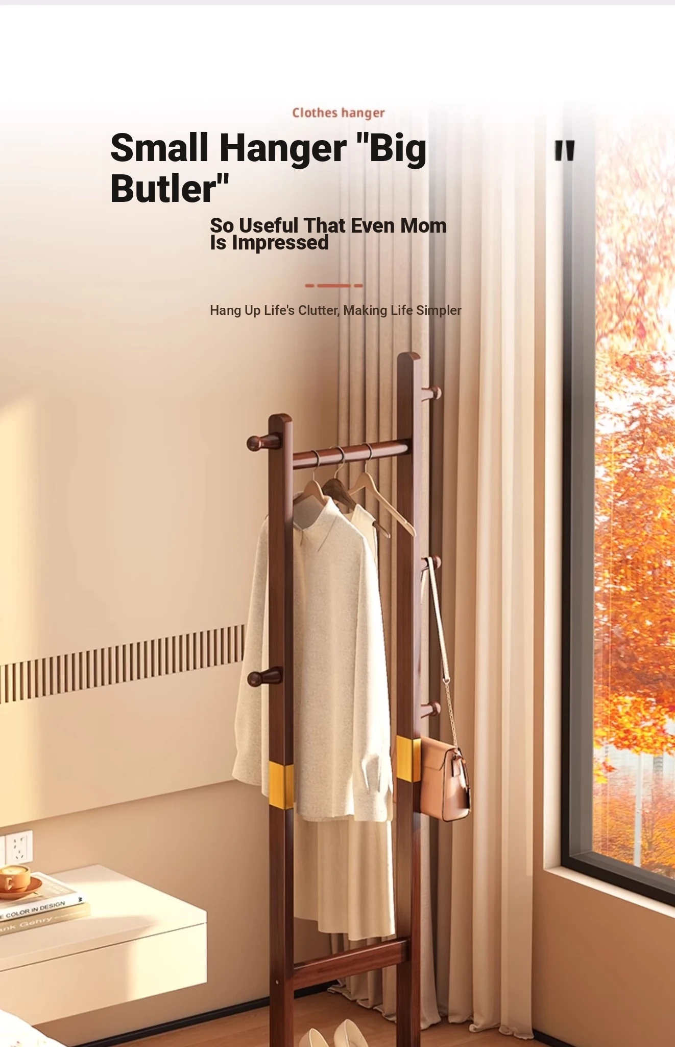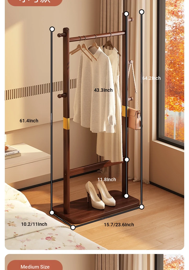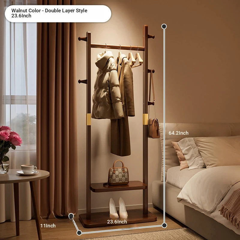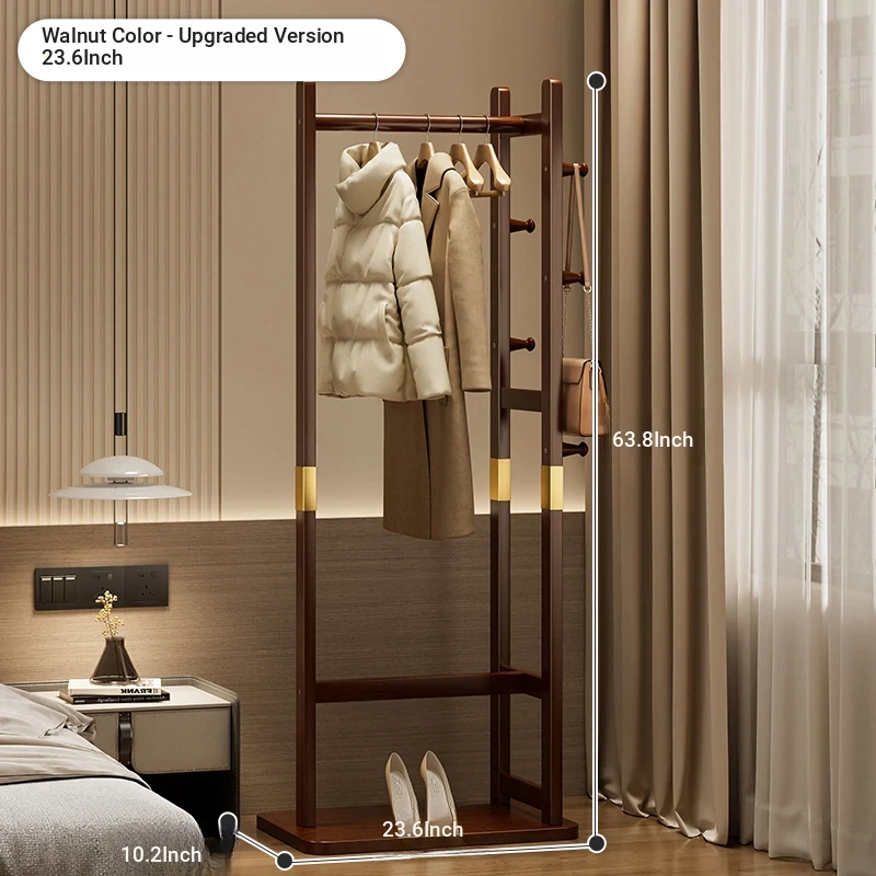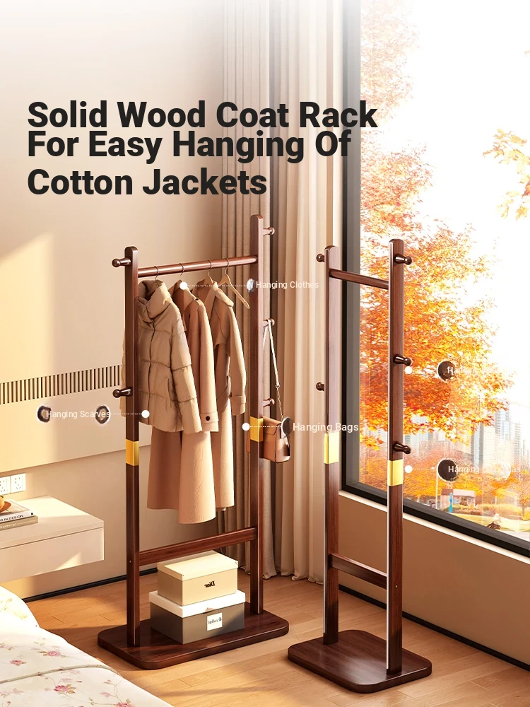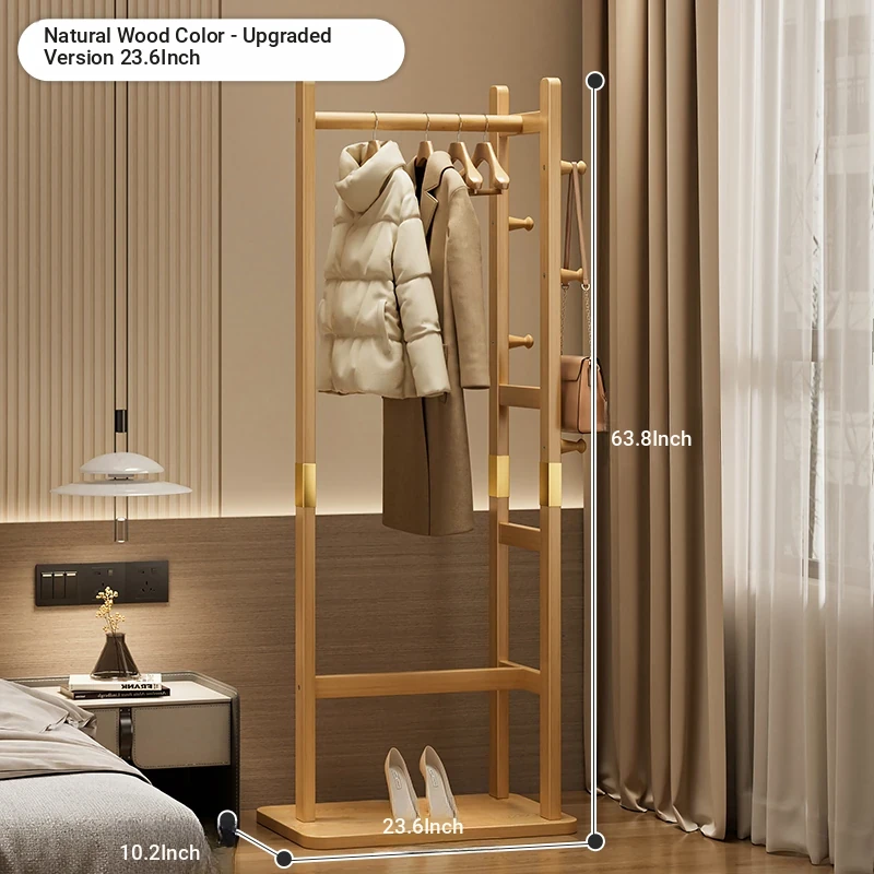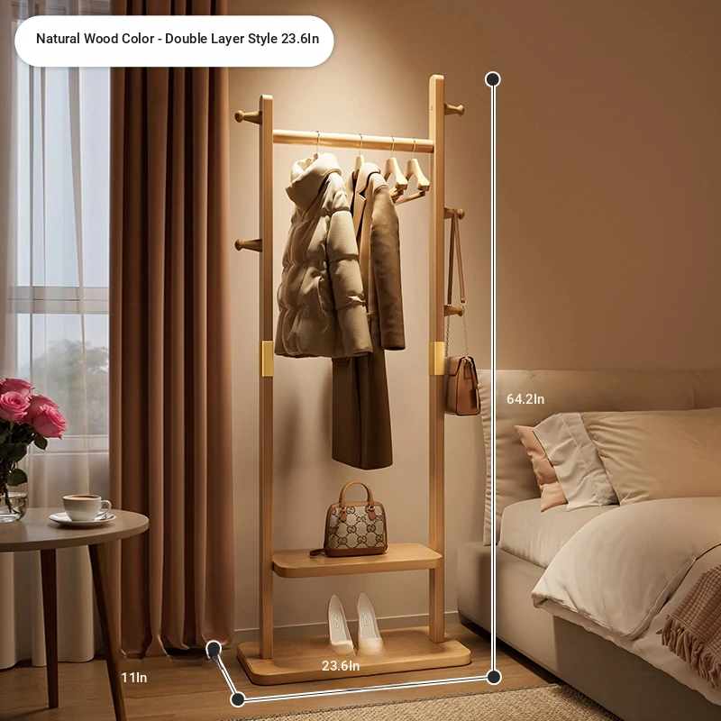 Compact Solid Wood Coat Rack - Space-Saving Freestanding Hanger for Bedroom and Entryway, Perfect for Organizing Coats and Hats