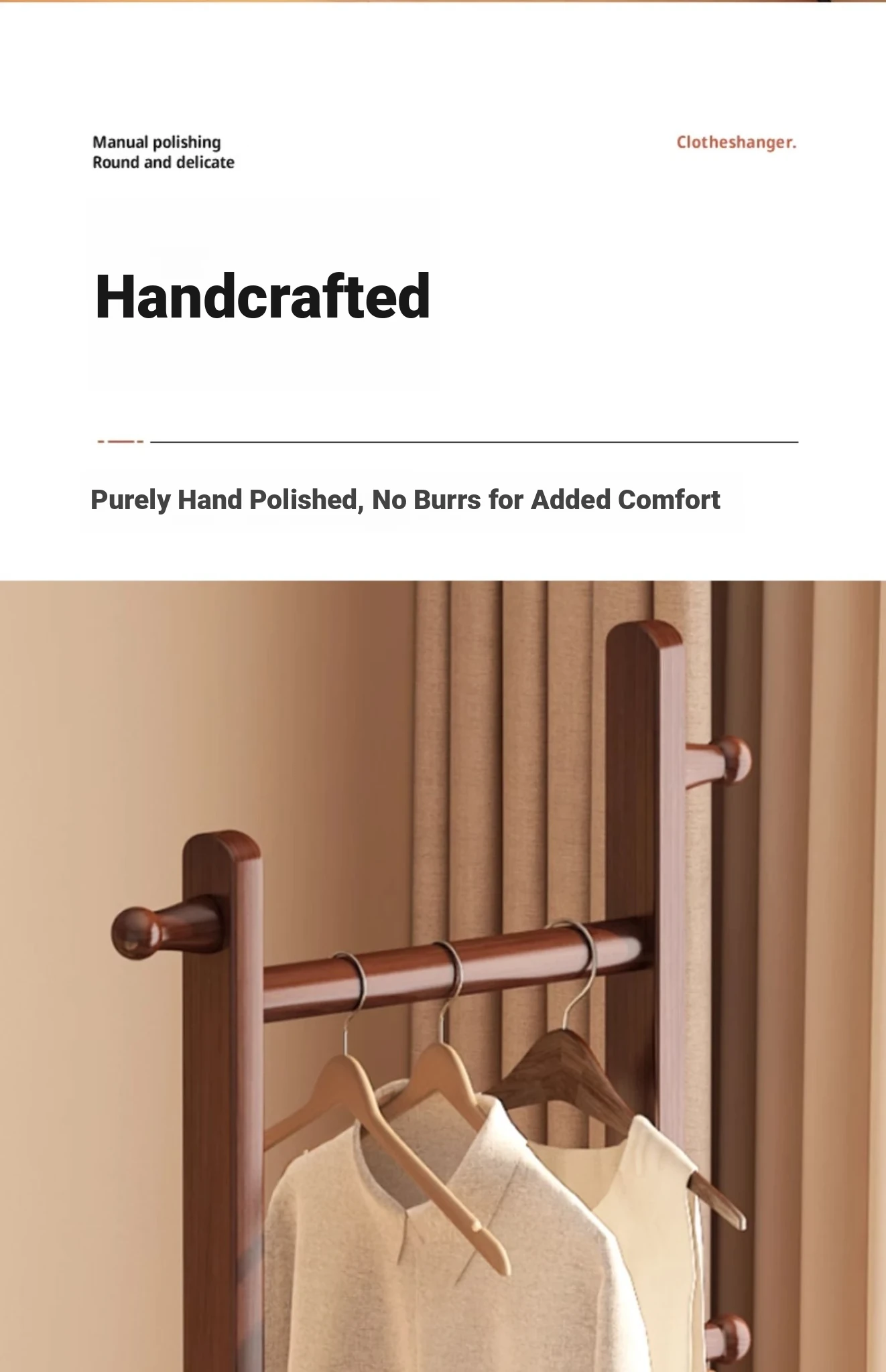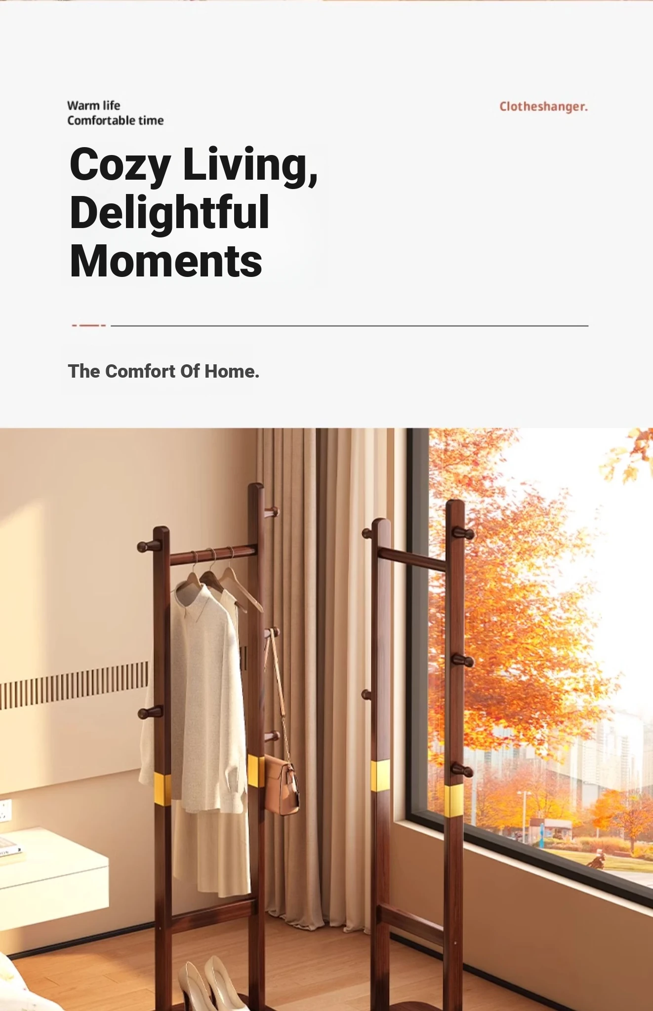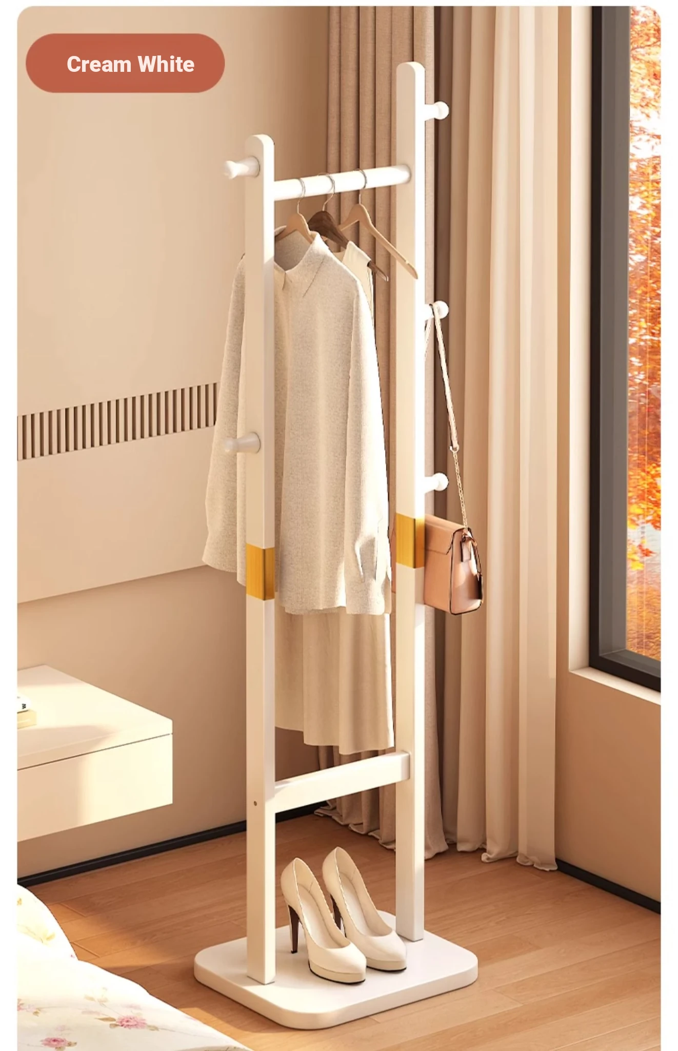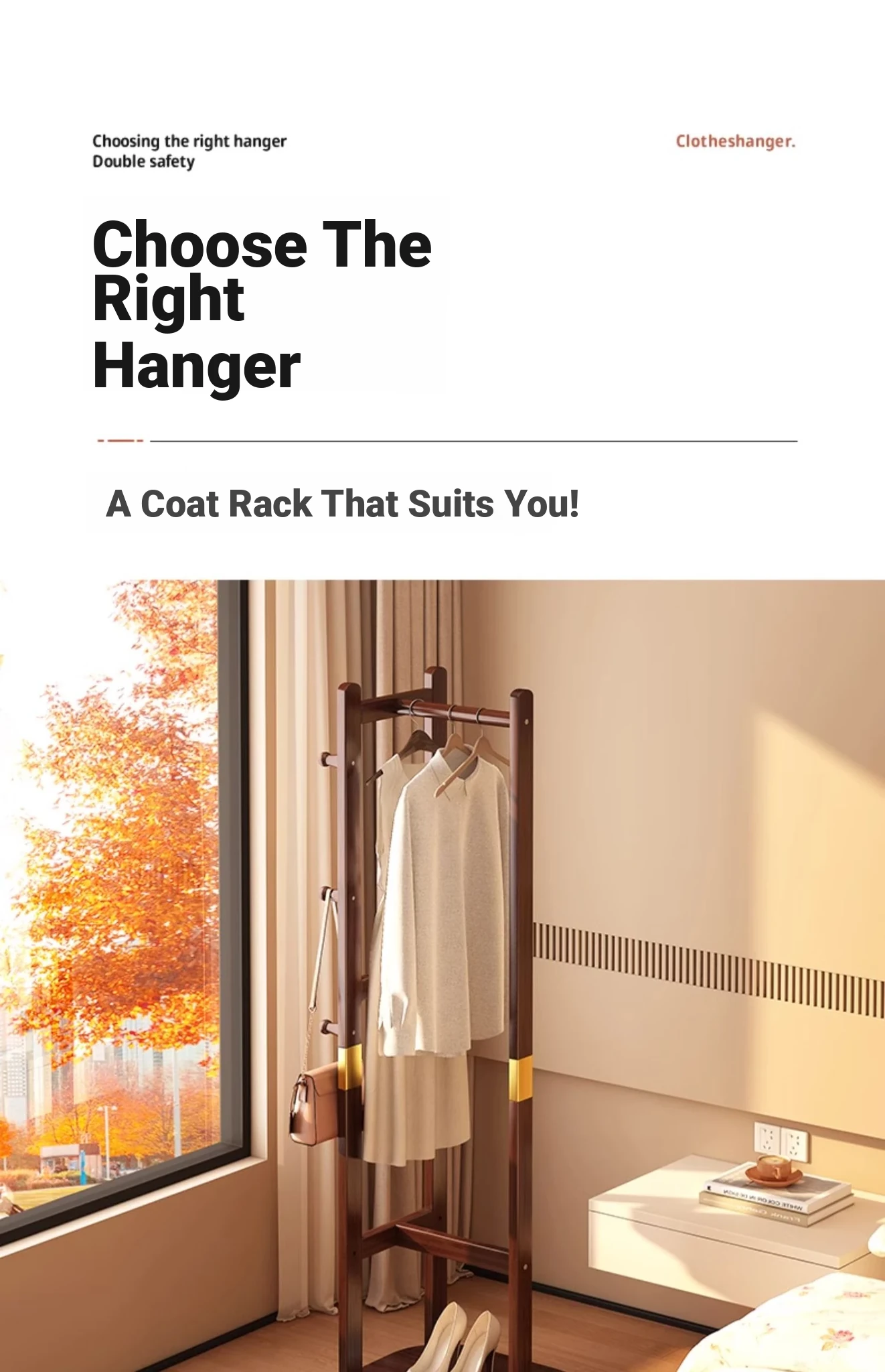 Compact Solid Wood Coat Rack - Space-Saving Freestanding Hanger for Bedroom and Entryway, Perfect for Organizing Coats and Hats