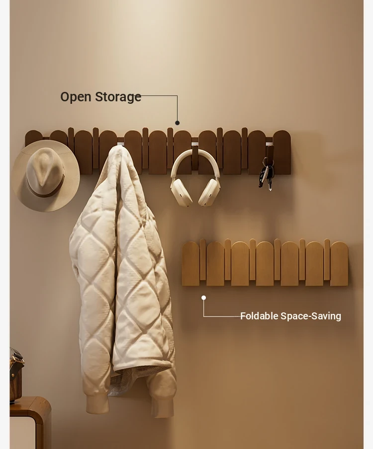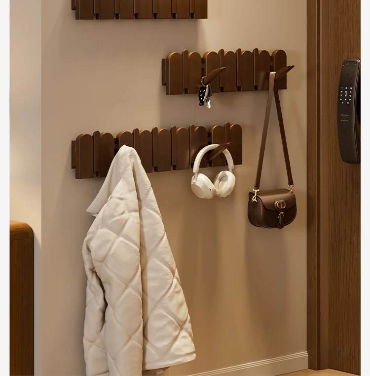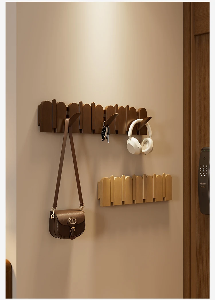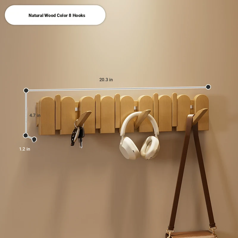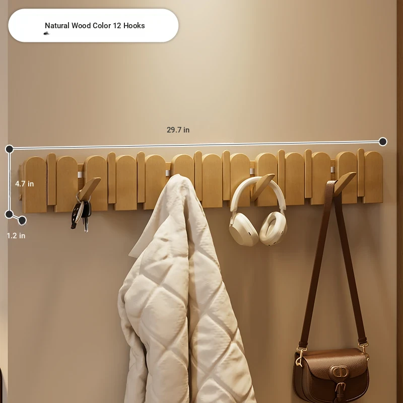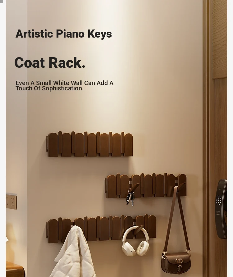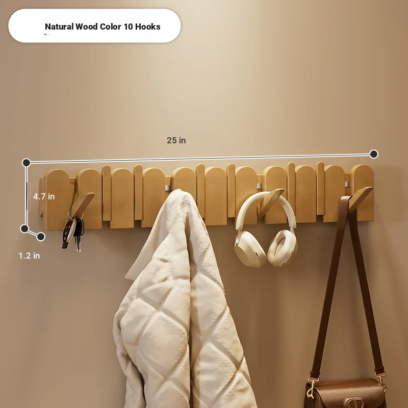 Compact Wooden Piano Key Coat Rack - No Drill Entryway Hanger for Home, Space-Saving Wall-Mounted Bag Hook, Perfect for Organizing Coats and Accessories