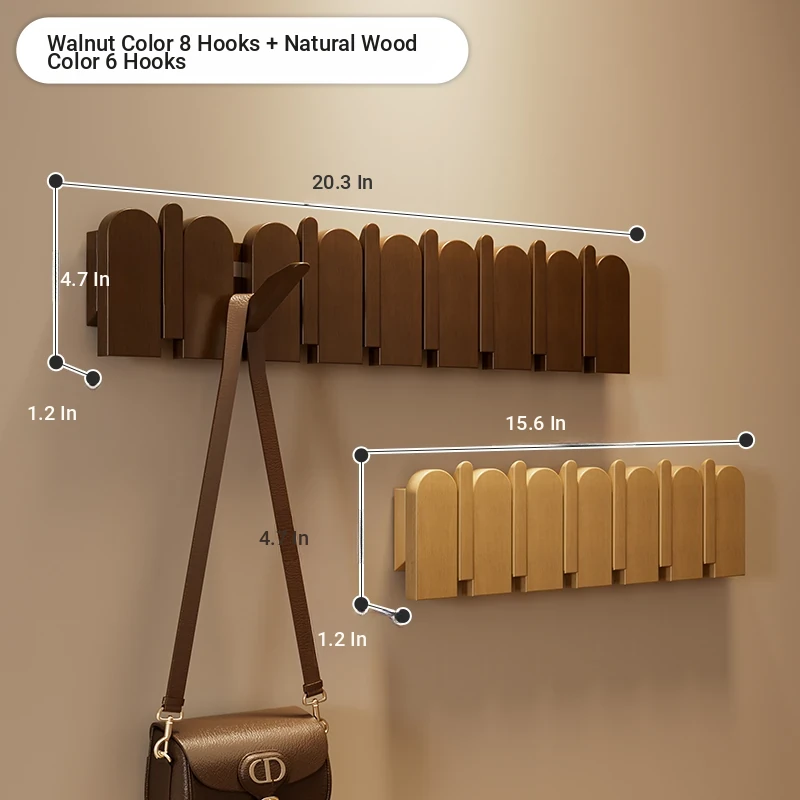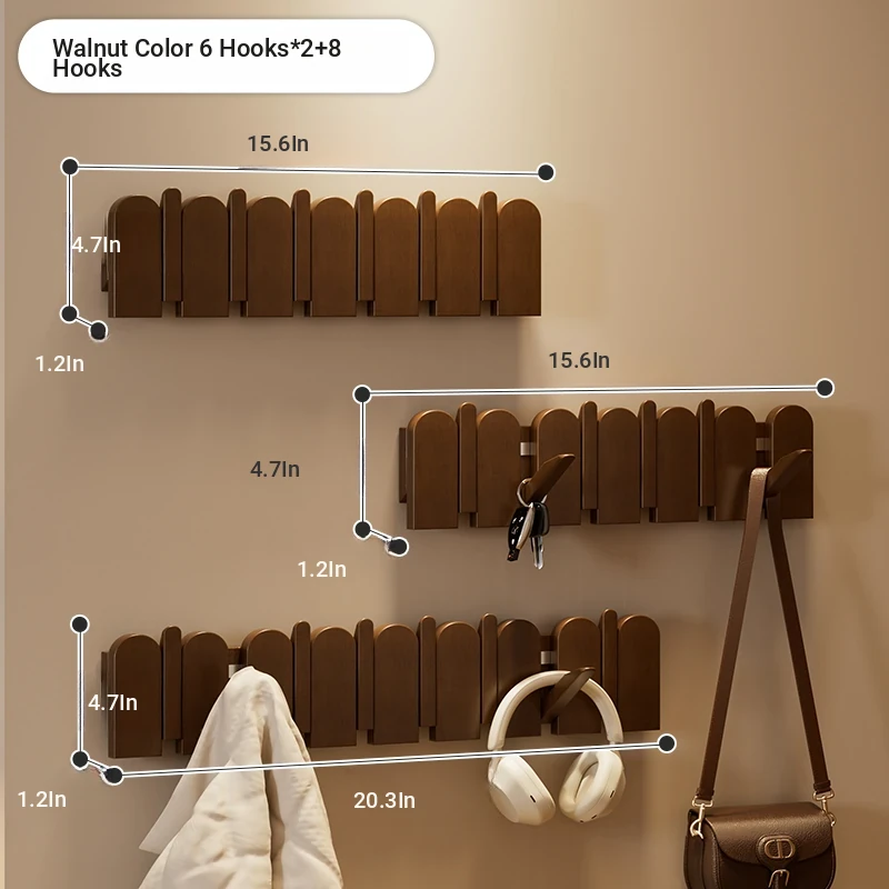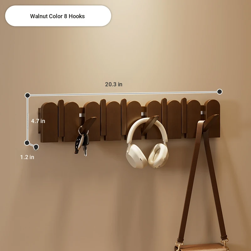 ⭐Hot sale⭐Walnut color 8 Hook [Import solid wood] [send nail-free stickers/punch accessories]]