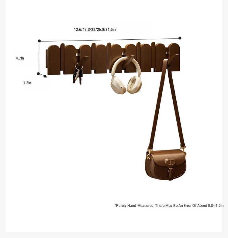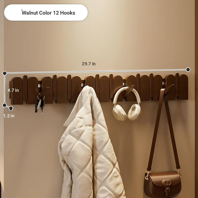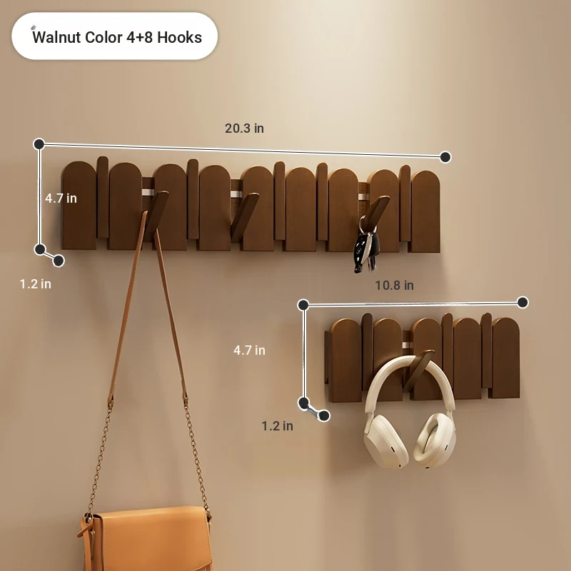 Combination⭐Walnut color 4 hooks +8 hooks [Import solid wood] [send nail-free stickers/punch accessories]]
