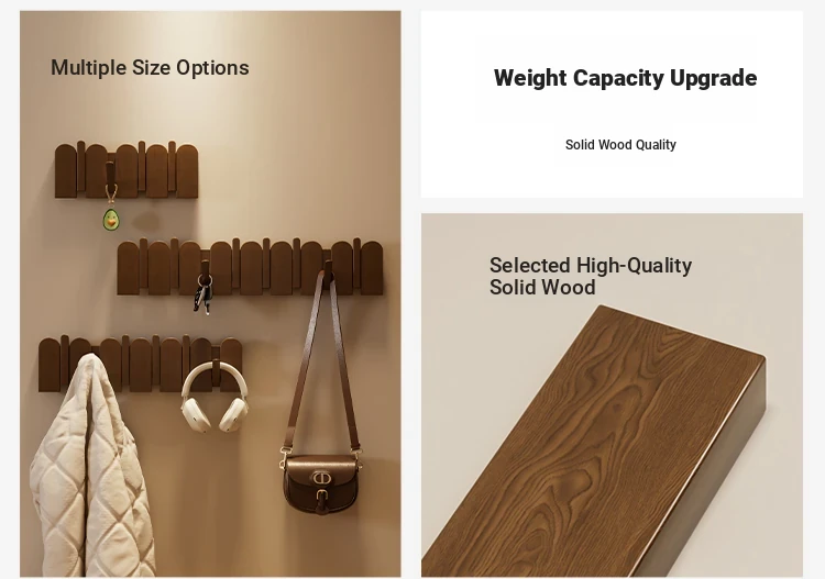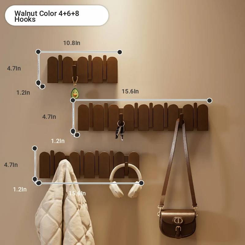 Combination⭐Walnut color 4 hooks +6 hooks +8 hooks [Import solid wood] [send nail-free stickers/punch accessories]]