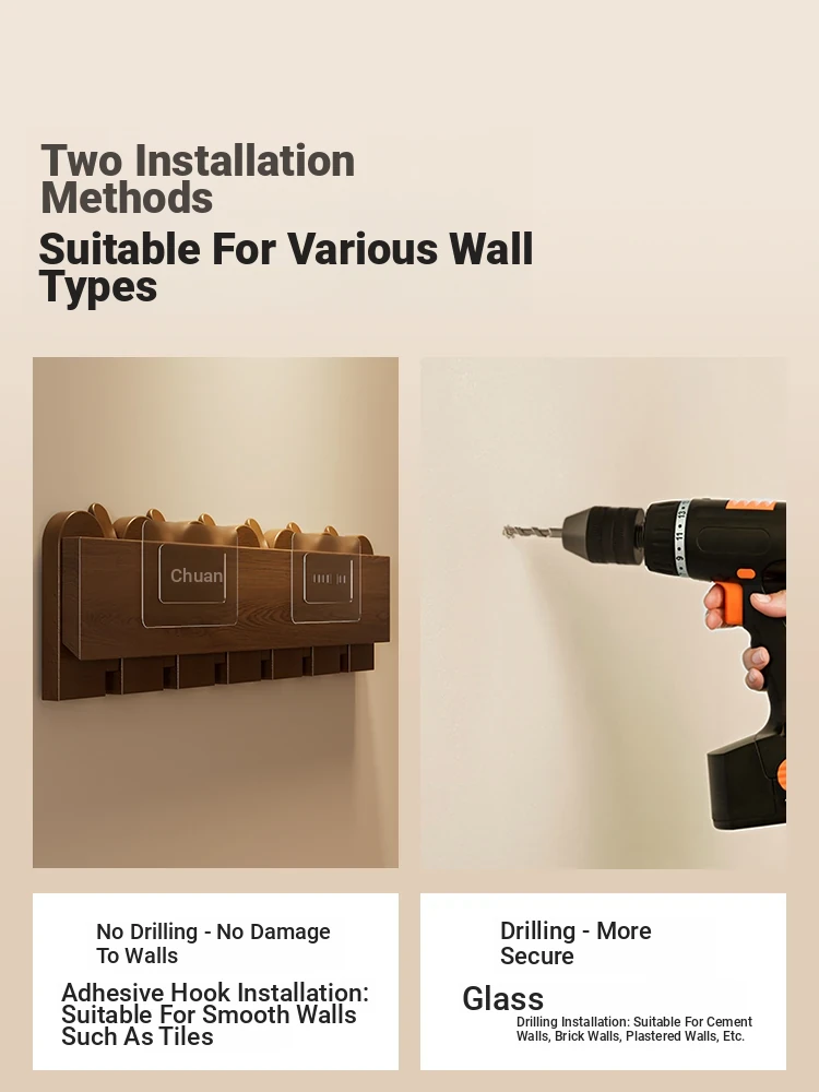 Combination⭐Walnut color 8 hook + log color 6 Hook [Import solid wood] [send nail-free stickers/punch accessories]]