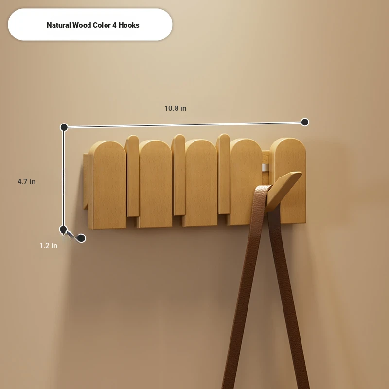 Log color 4 hooks [Import solid wood] [send nail-free stickers/punch accessories]]