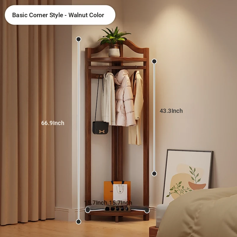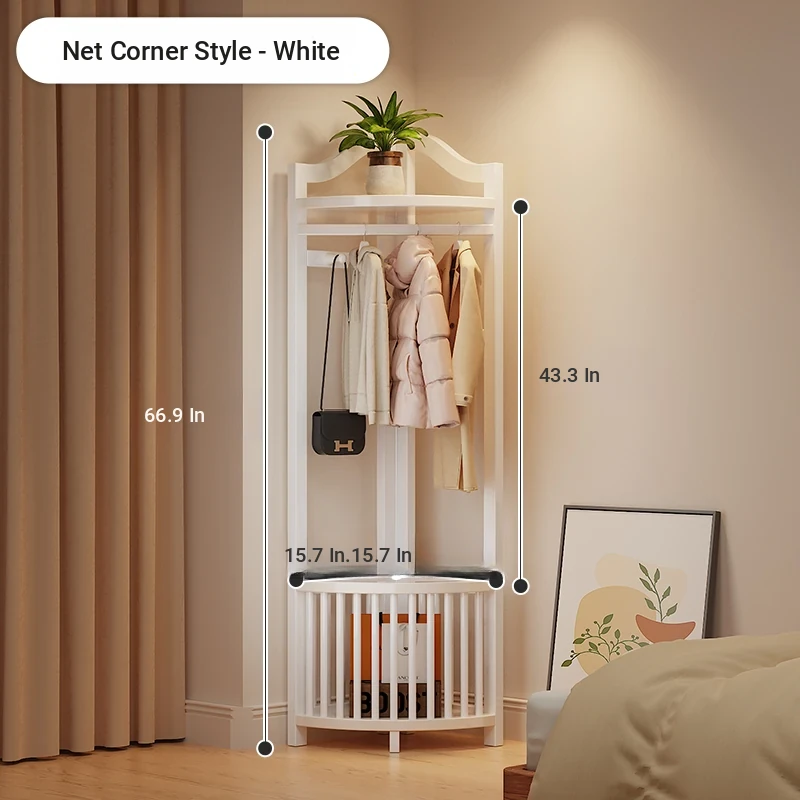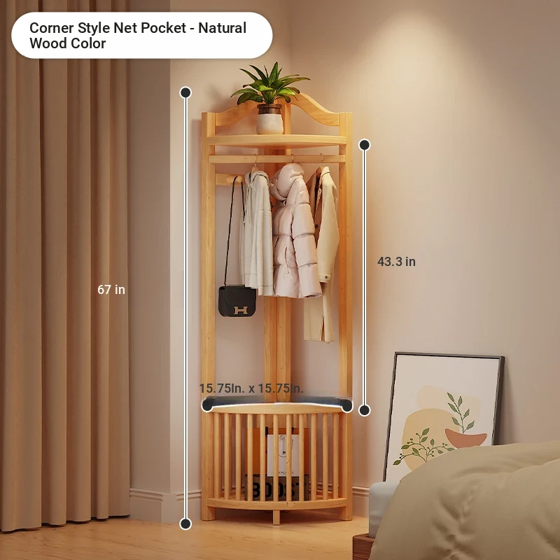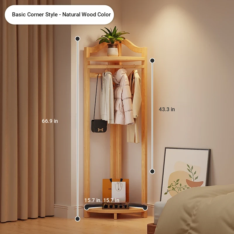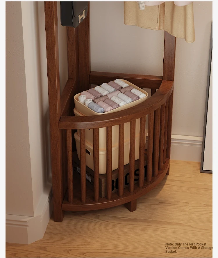 Corner Coat Rack with Laundry Basket - Stylish Wooden Clothing Stand for Bedroom, Perfect for Small Spaces, Keeps Your Corner Tidy and Organized!