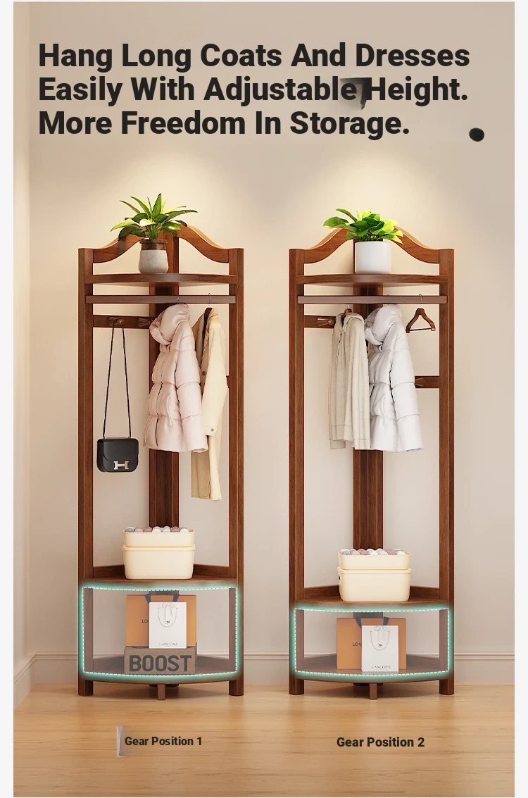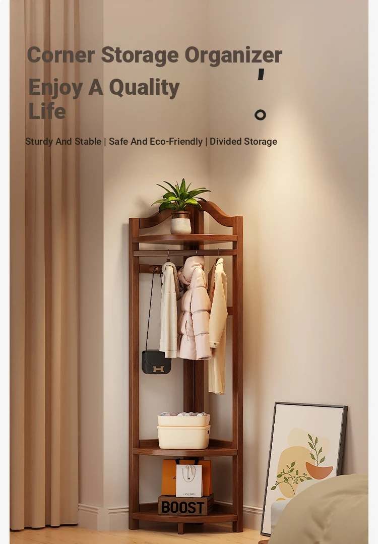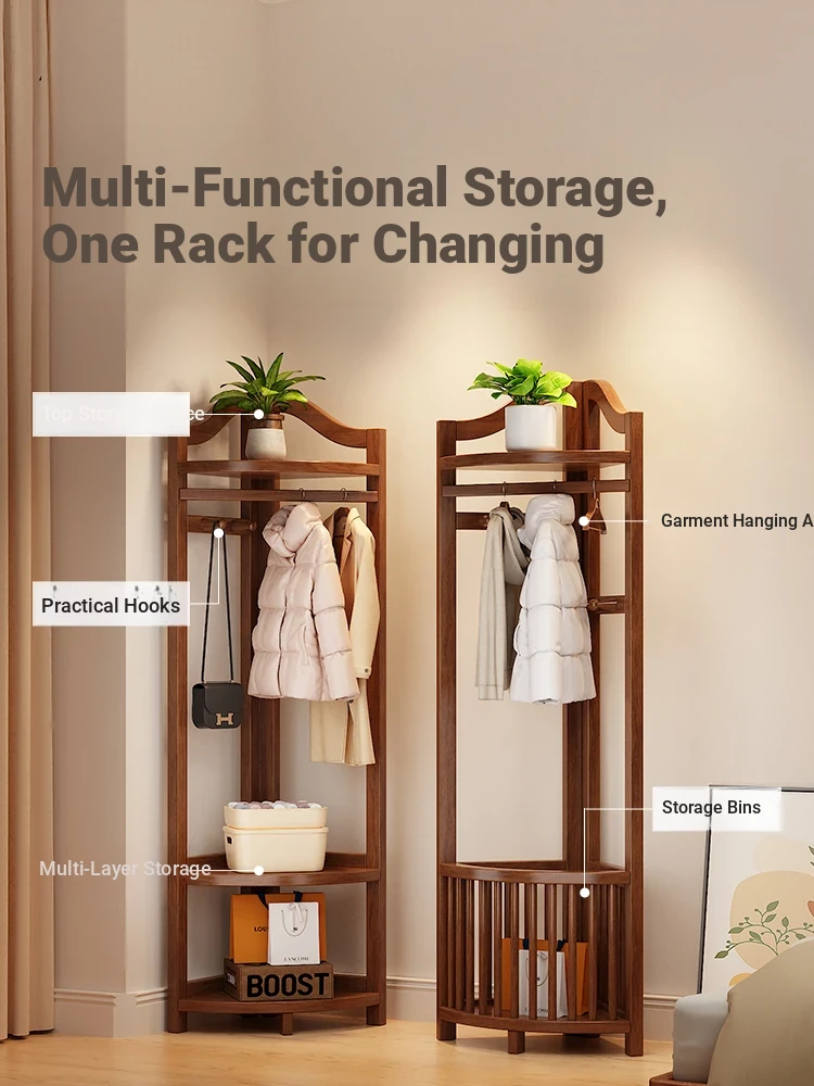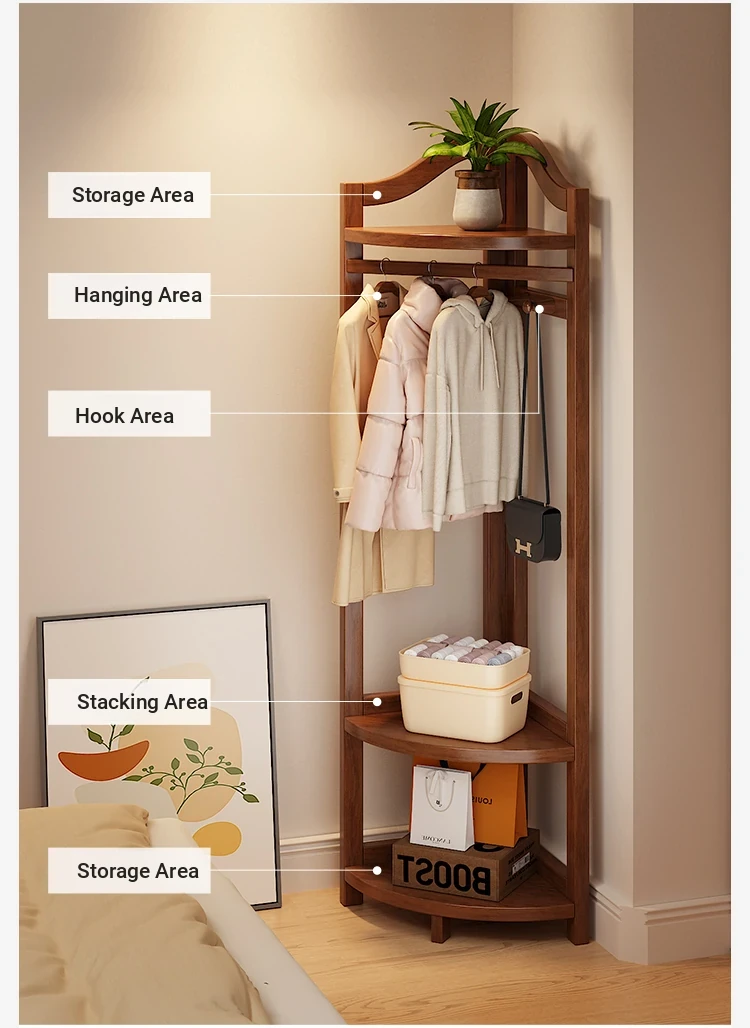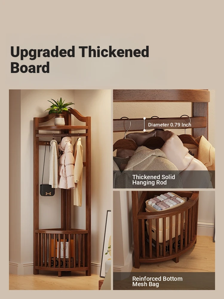Corner Coat Rack with Laundry Basket - Stylish Wooden Clothing Stand for Bedroom, Perfect for Small Spaces, Keeps Your Corner Tidy and Organized!