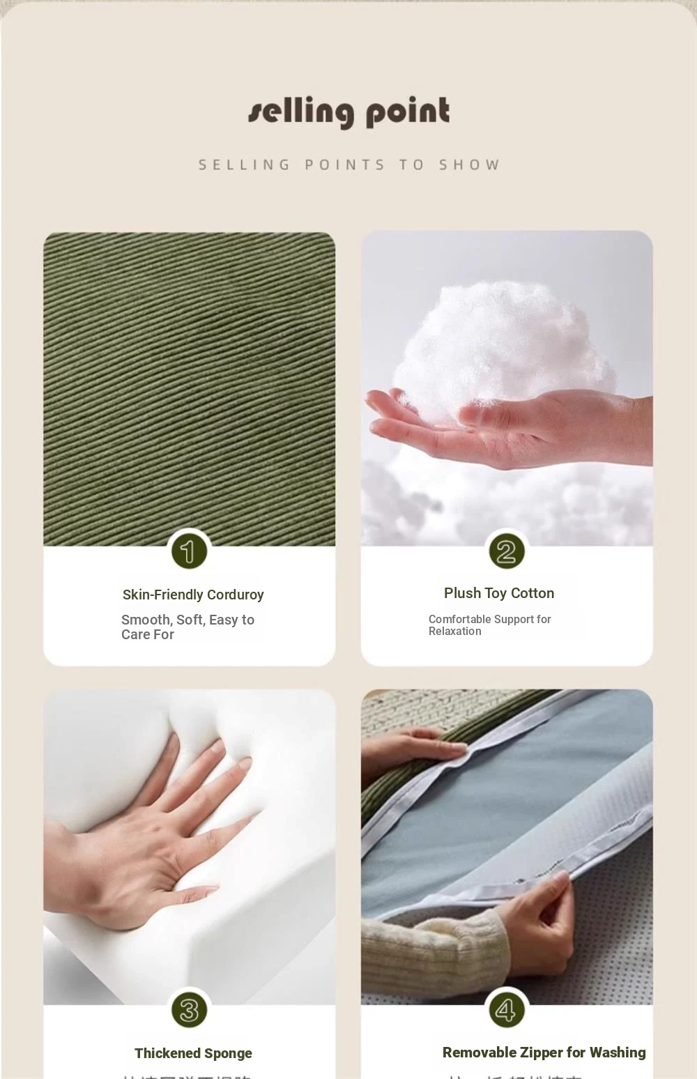 Cream White Corduroy Medium [Unfold 90*140] Gives Two Pillows
