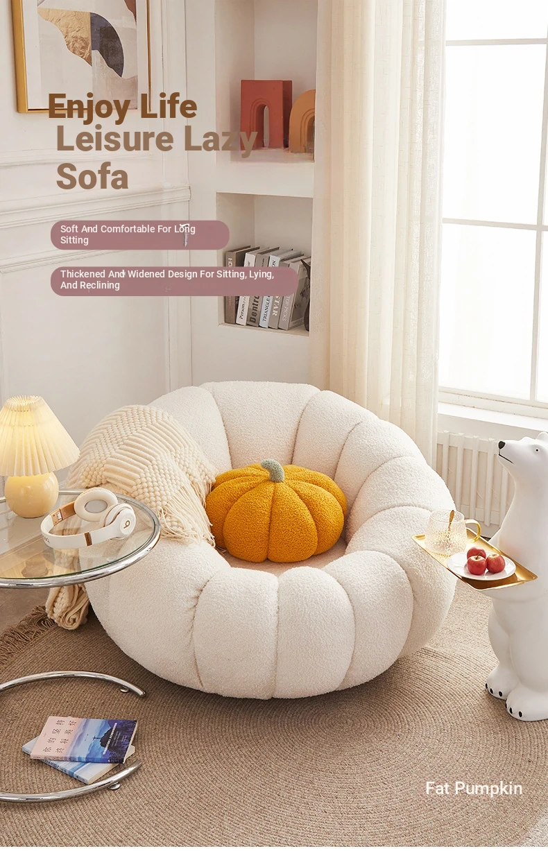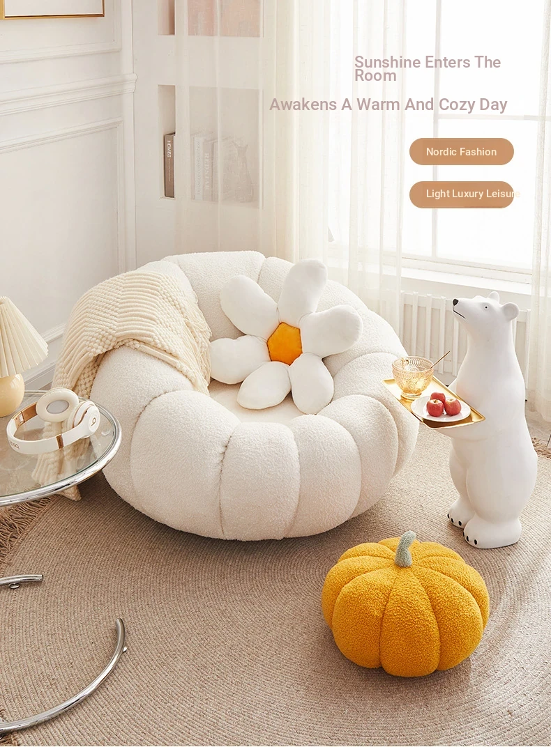 Cozy Pumpkin Bean Bag Chair - Plush Lamb Fleece, Dual-Purpose for Lounging & Sleeping, Cloud-Style Rotating Chair, Perfect for Tatami Living Spaces - Trendy & Comfortable!